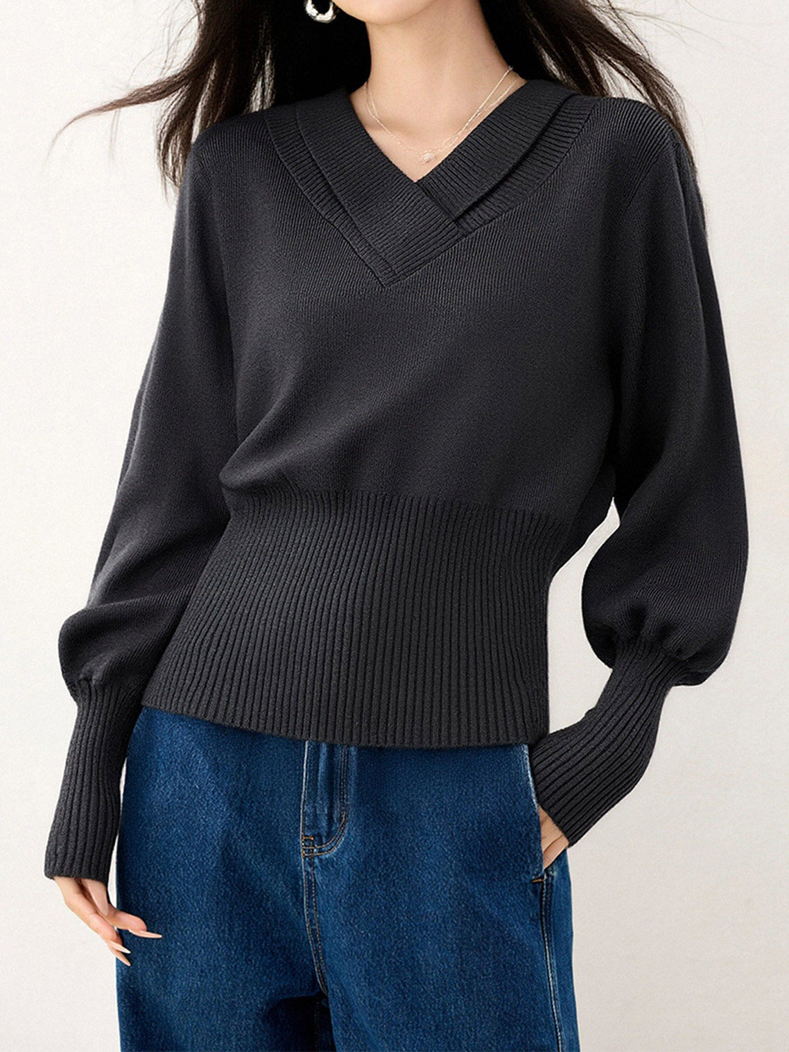 クロスネックボリュームニット 2色入