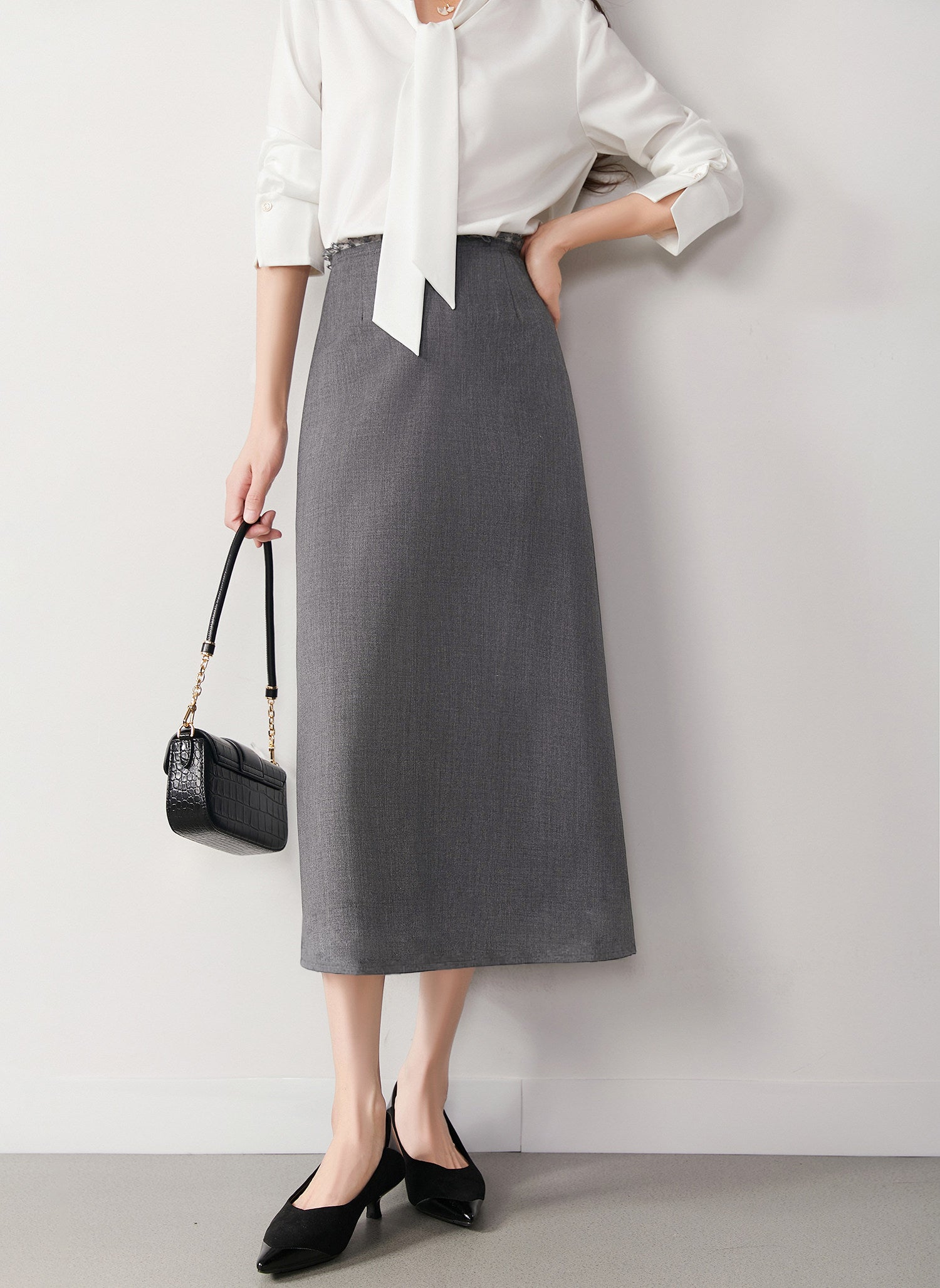 レースウエストバックスリットナロースカート 2色入