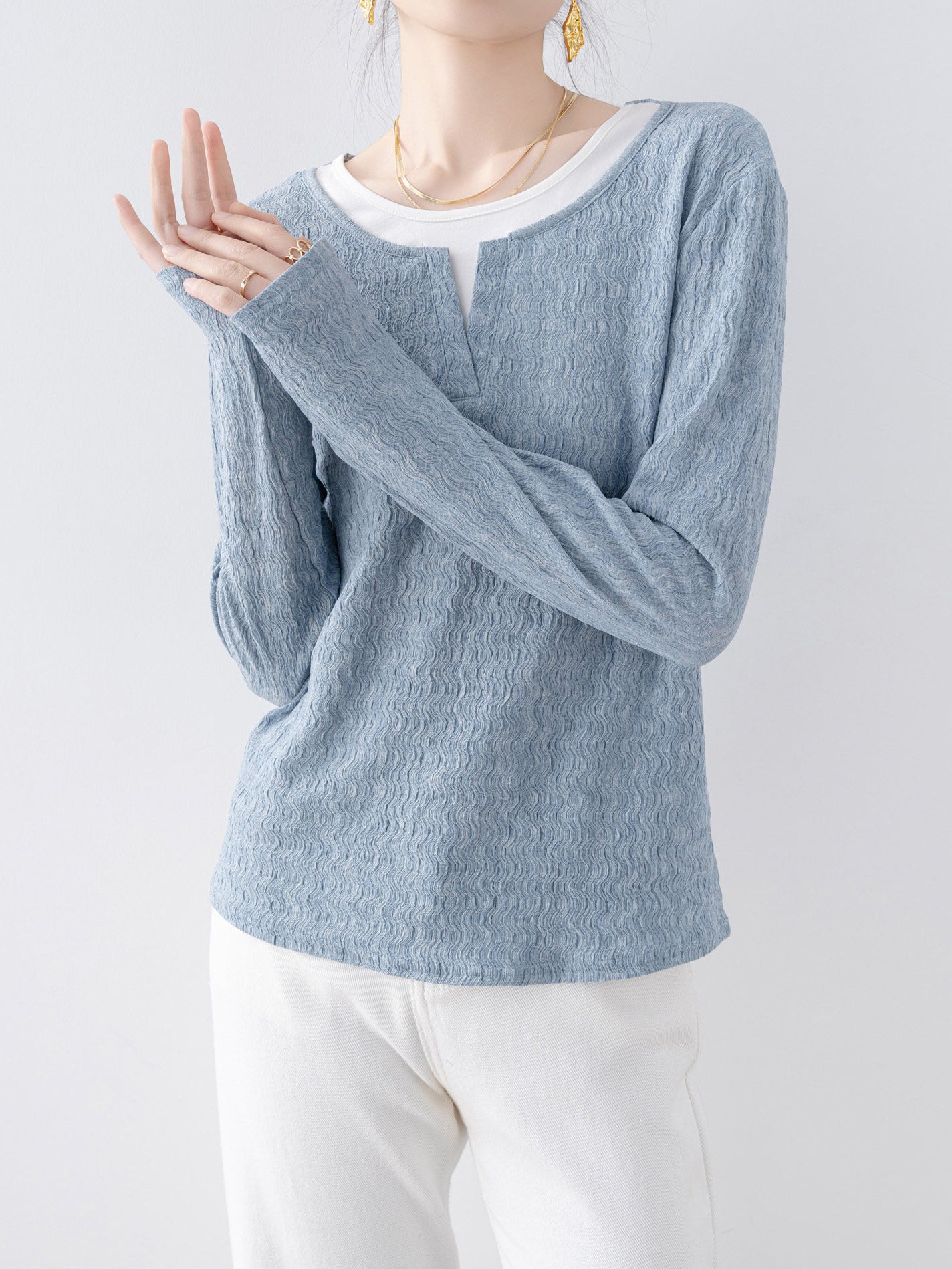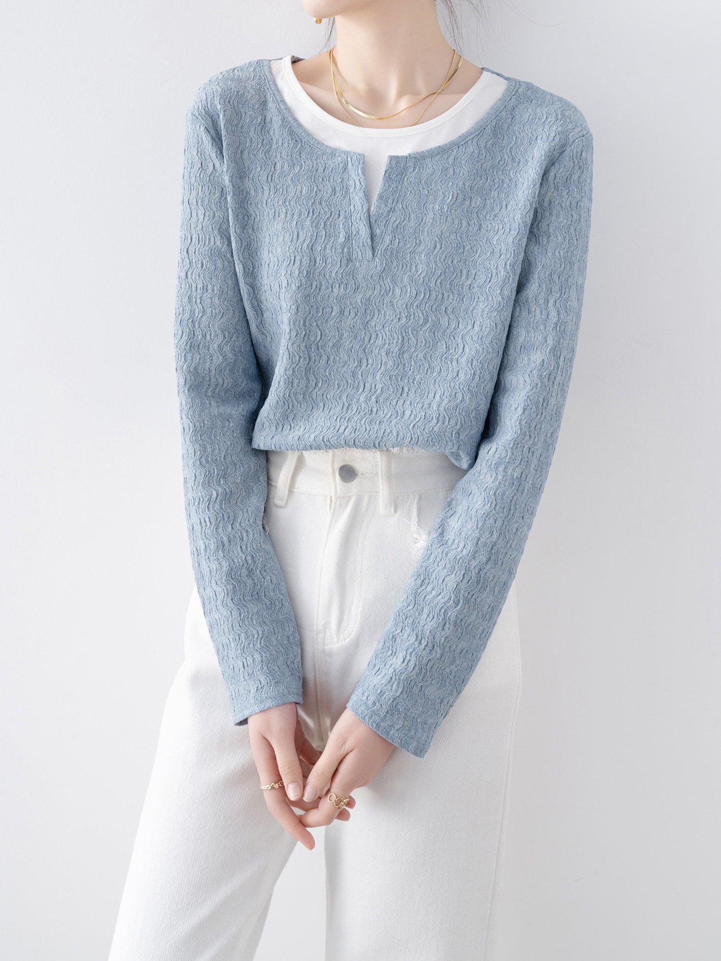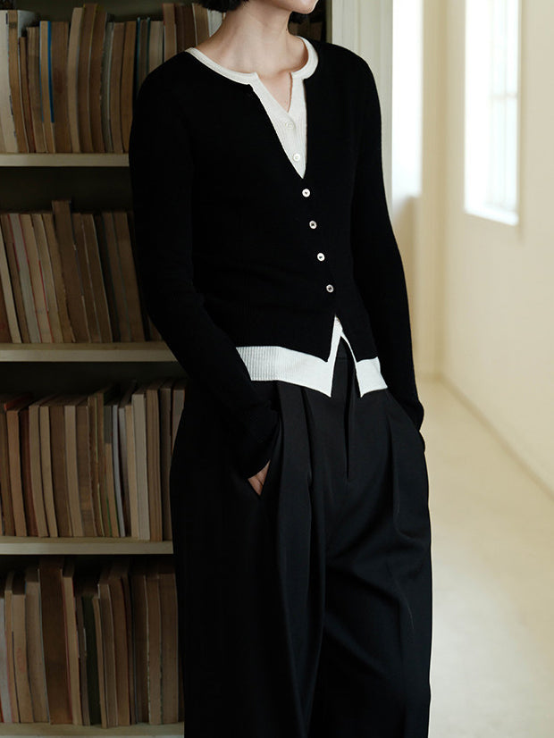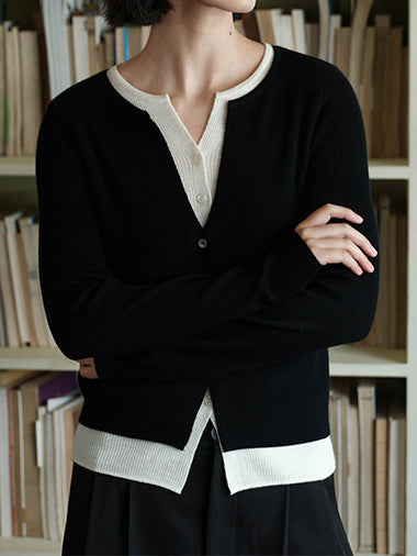 キーネックレイヤードデザインニット 2色入