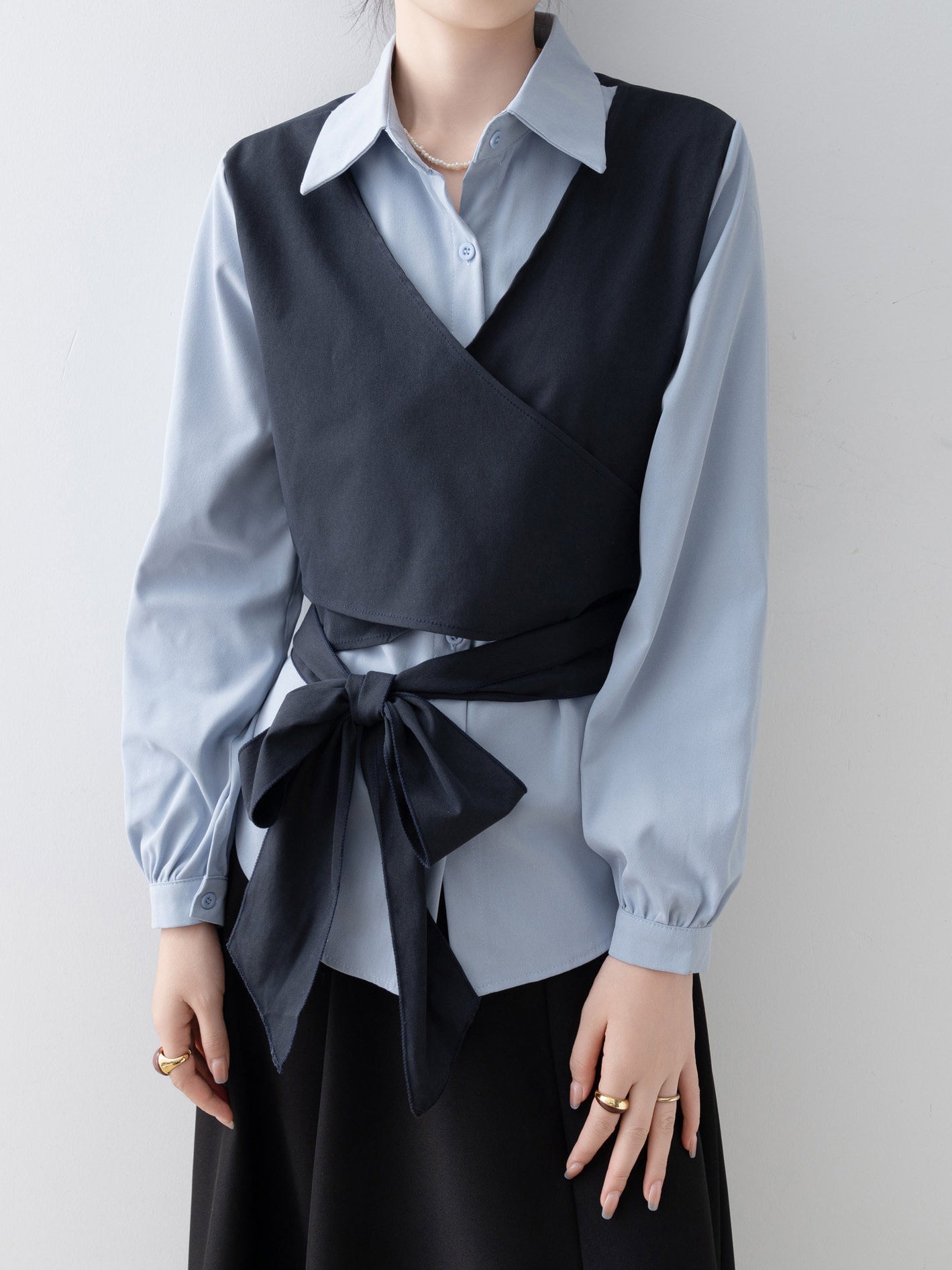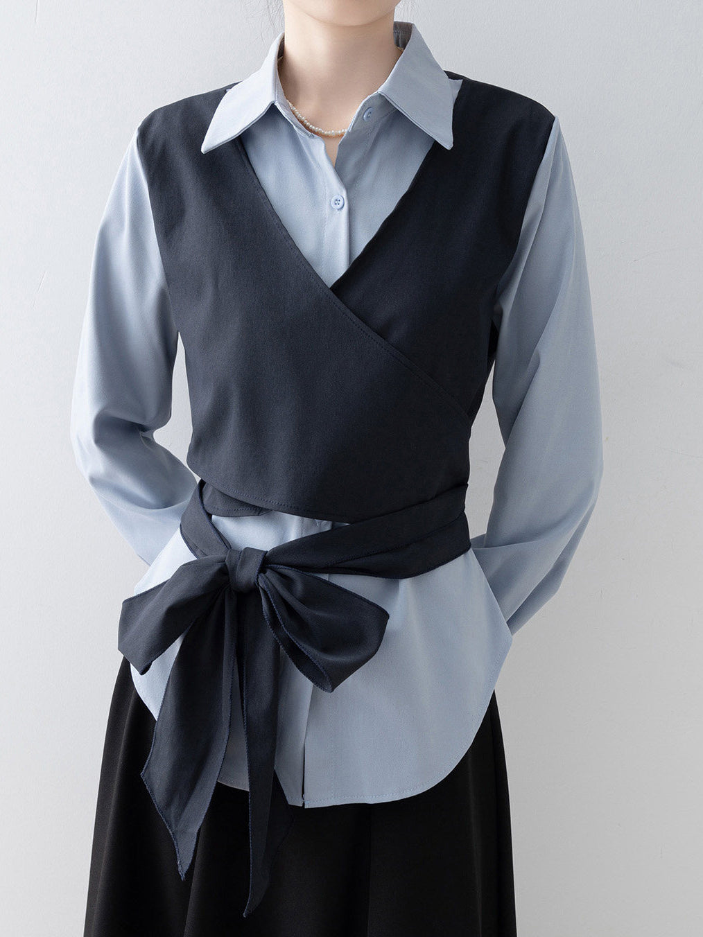 バイカラーカシュクールリボンレイヤードシャツ