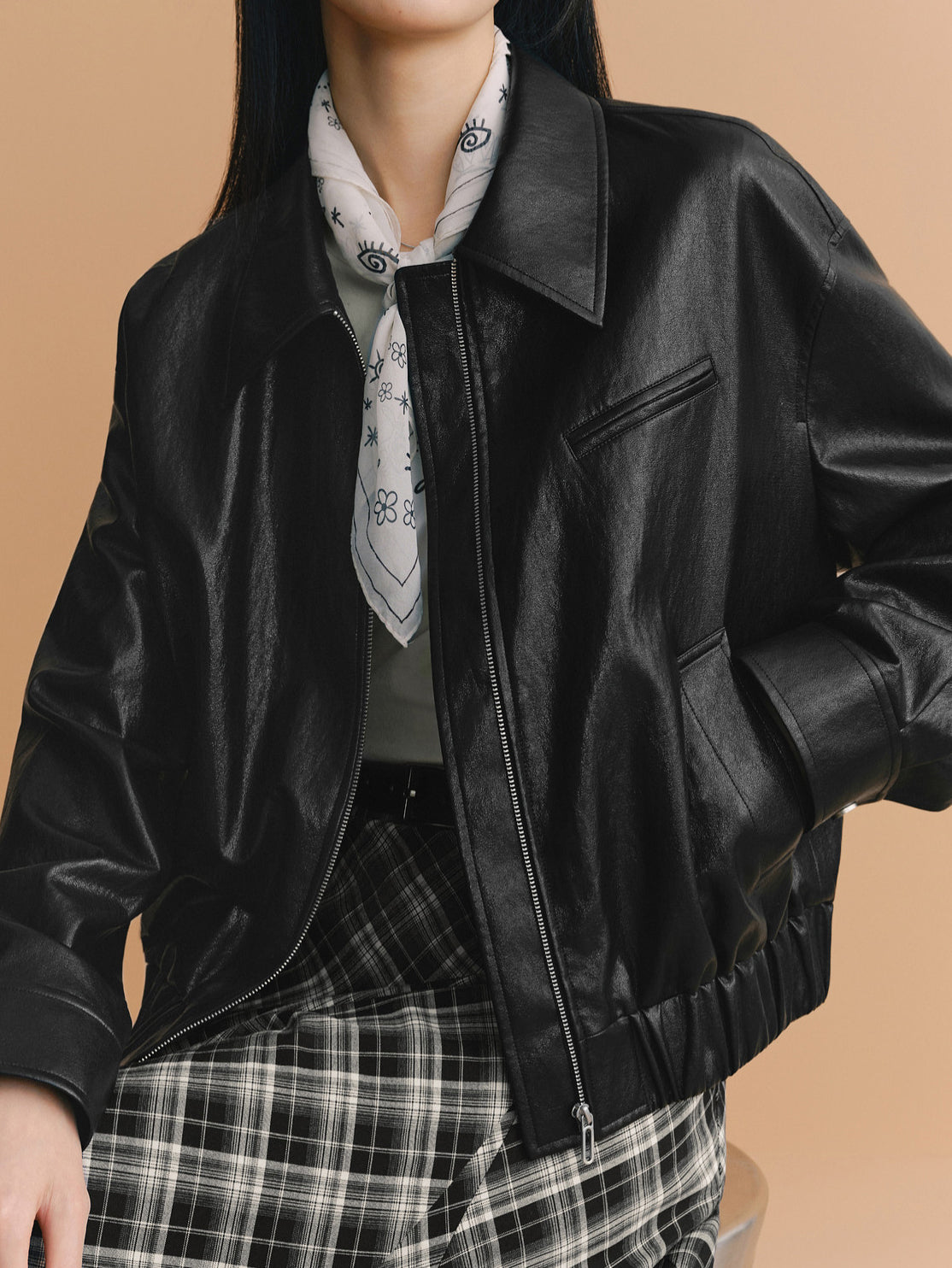 襟付きジップアップエコレザージャケット