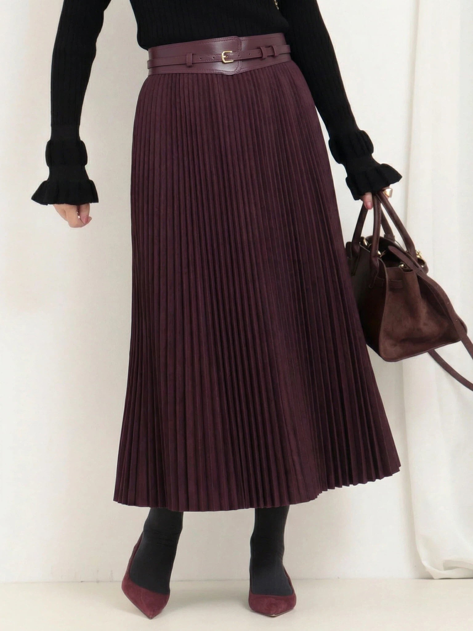 ベルト付きプリーツスカート