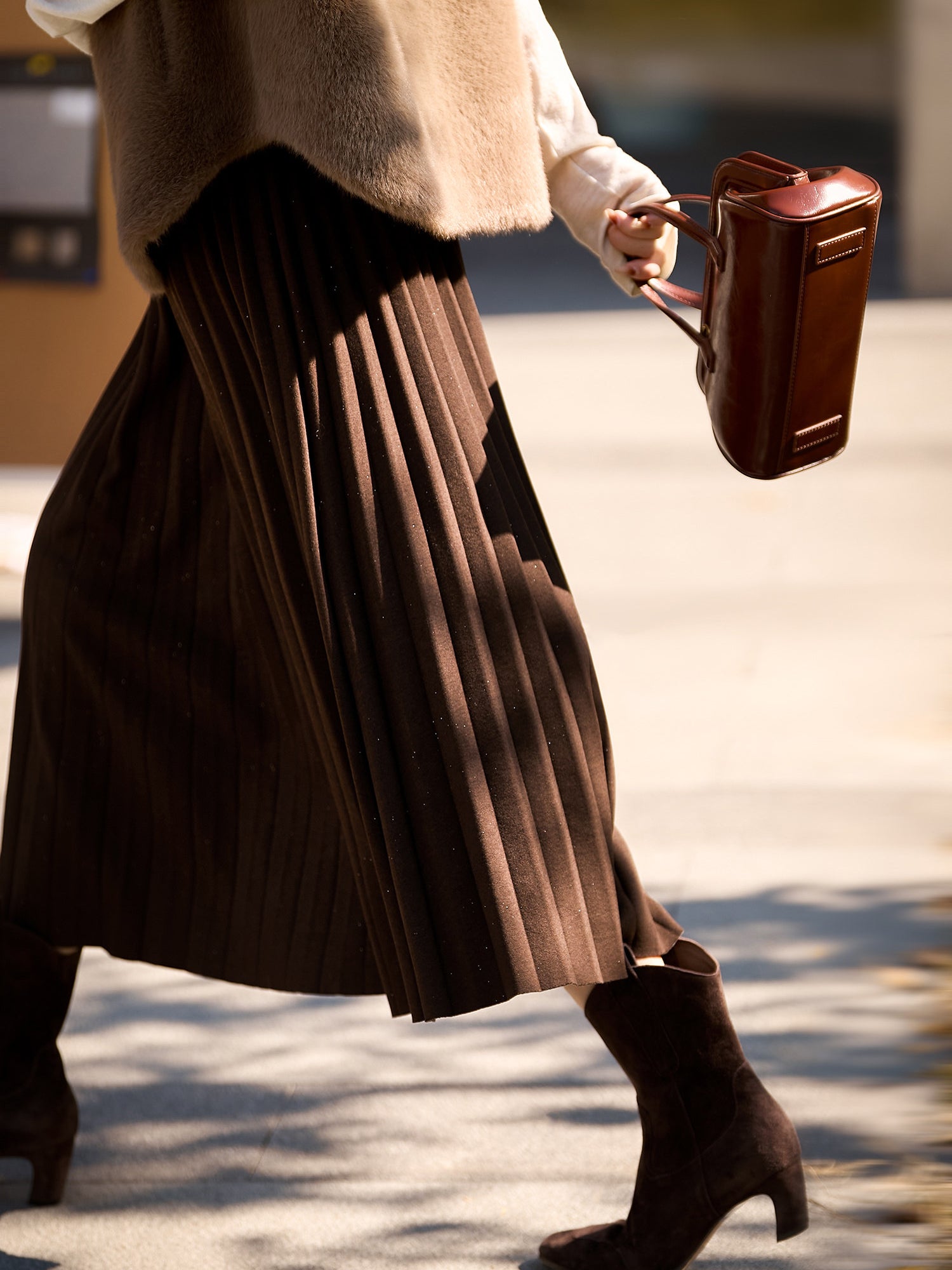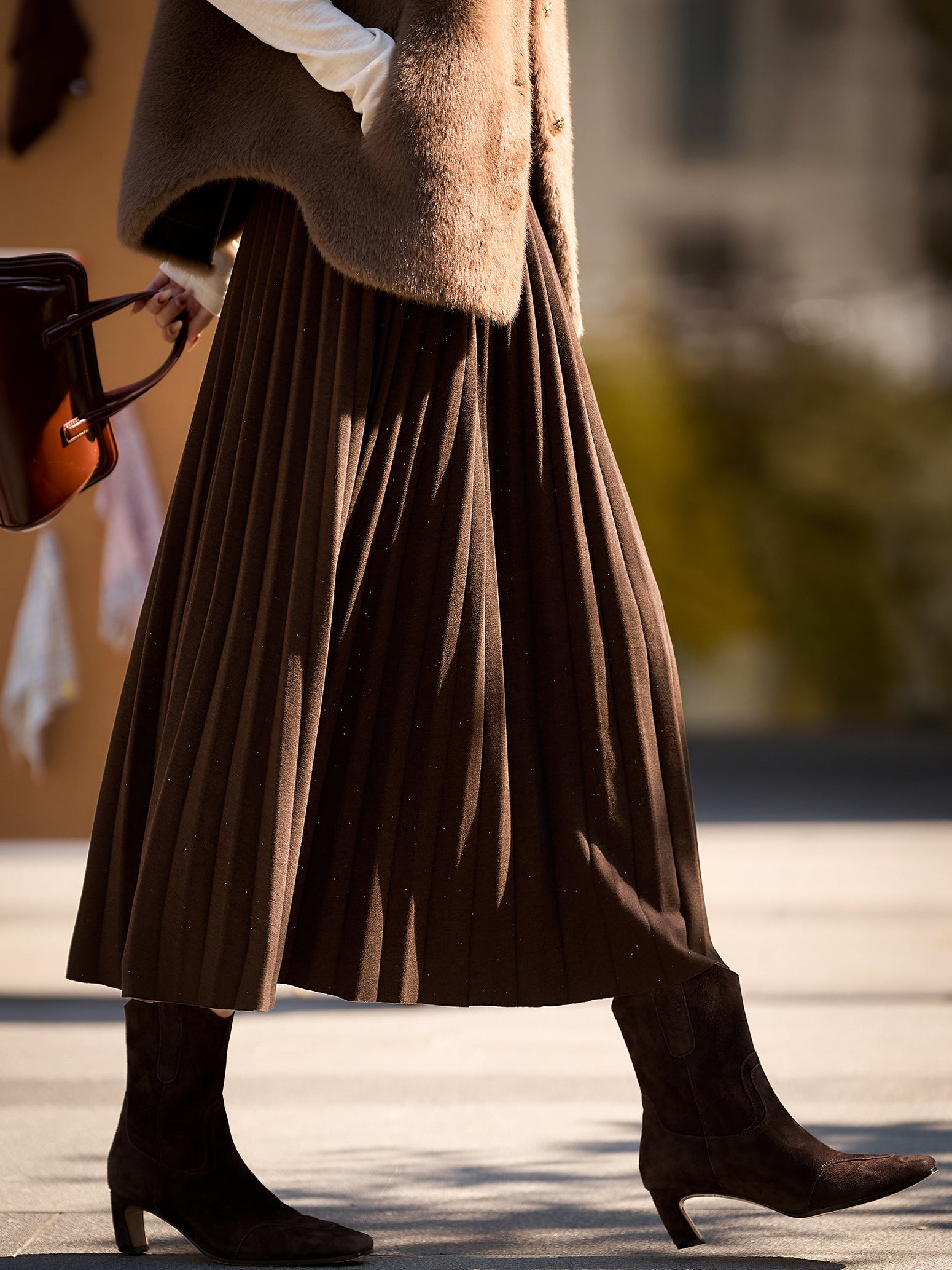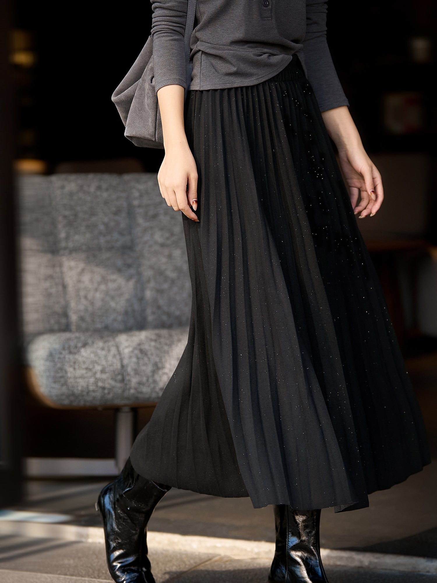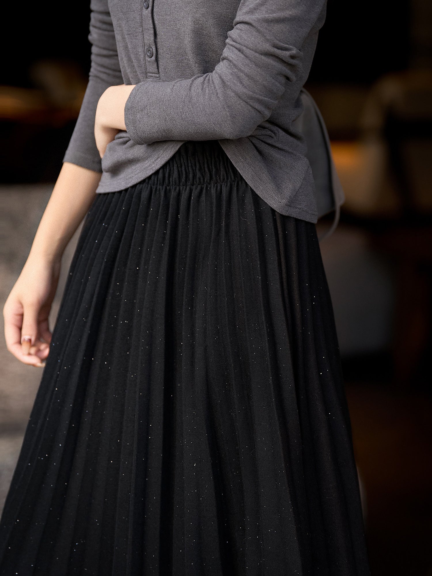 【ラメが入っているプリーツデザインも華やかな一枚】