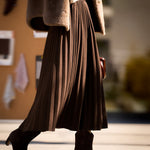 きらっと光輝くラメとプリーツ加工を施したニットスカート。