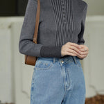 ☆身頃は程よくゆとりを持たせつつも、縦リブ編みの効果でボディラインをすっきりと見せてくれ、細見え効果のあるシルエットです。
