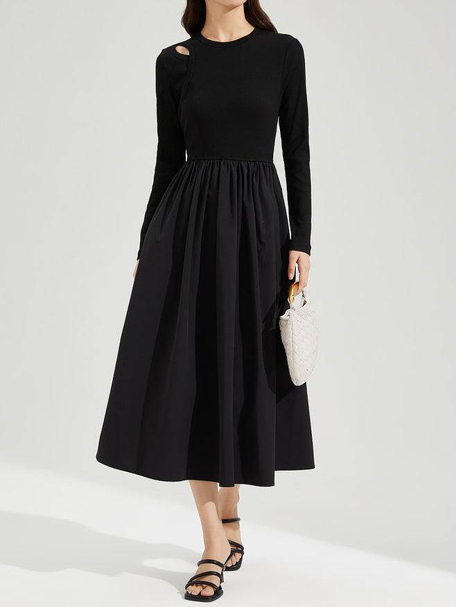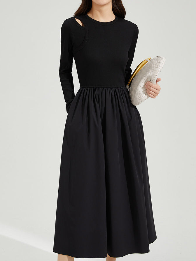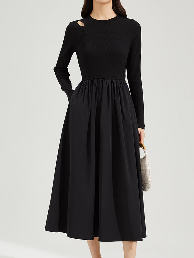 Aラインのフレアスカートと肩の肌見せが大人可愛いワンピース。