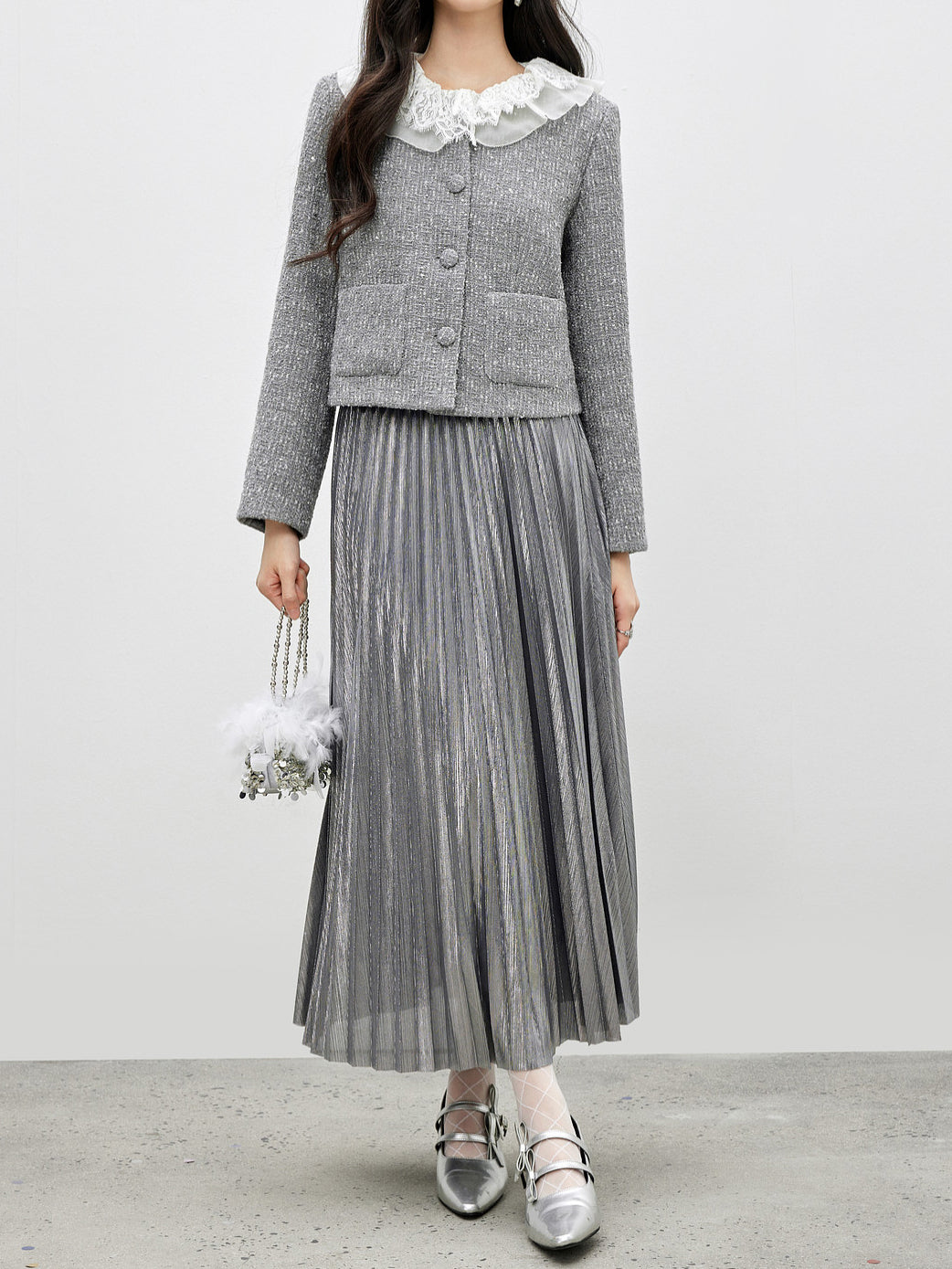 プリーツならではの立体感のある表情が華やかさをプラスしてくれます。