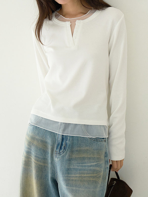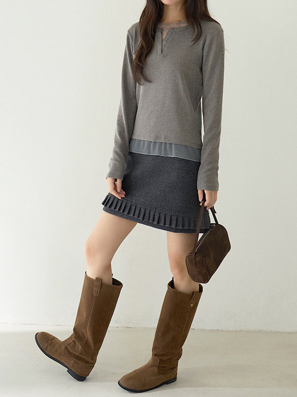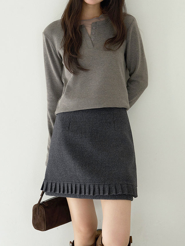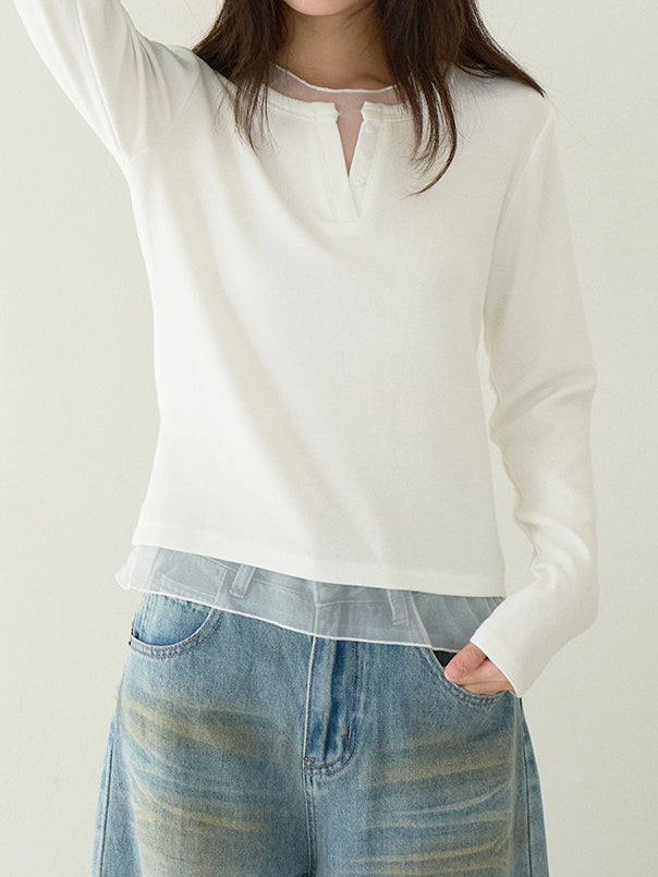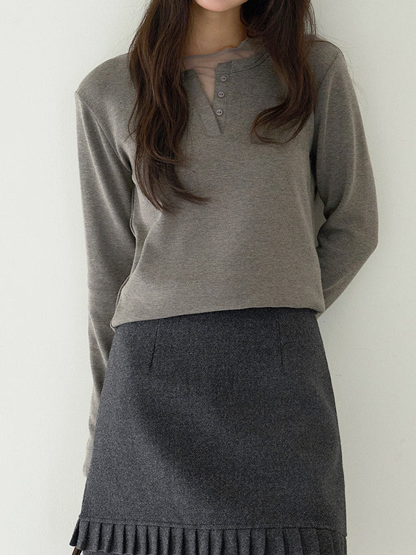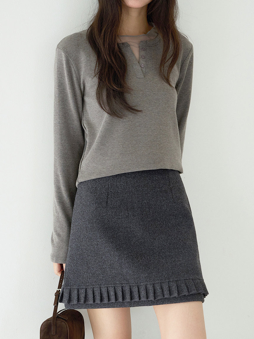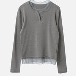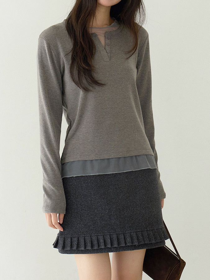 ベーシックなシルエットに、チュールを重ねたようなレイヤード風の切り替えが目を惹く1枚。