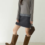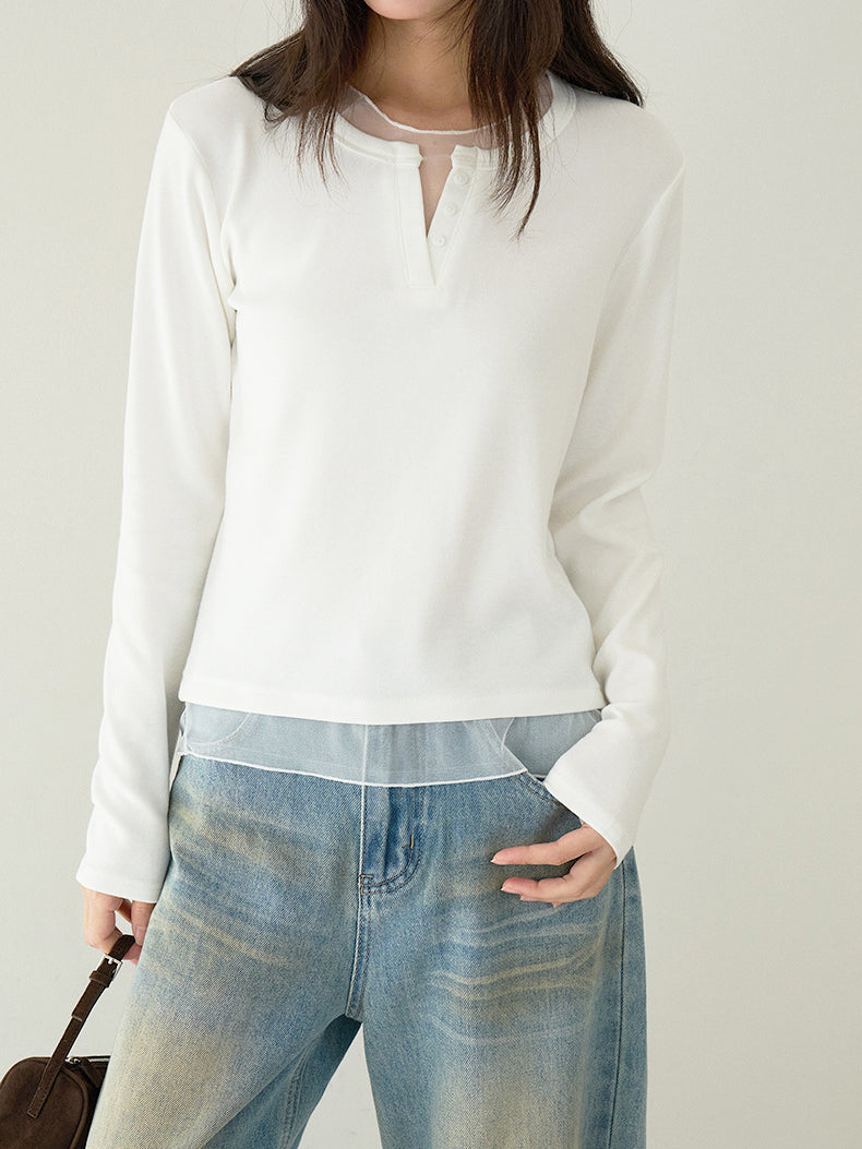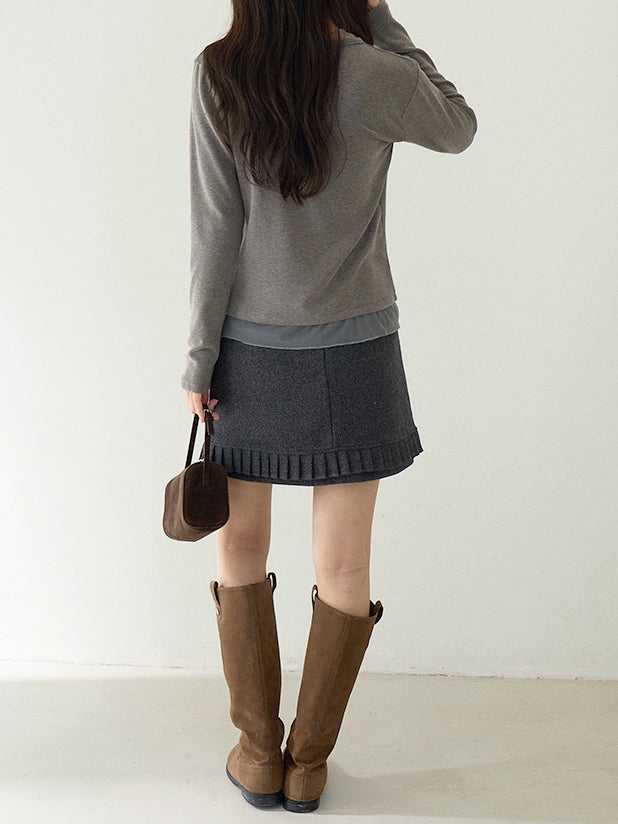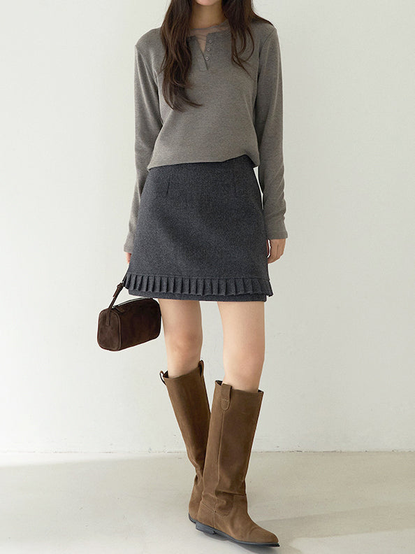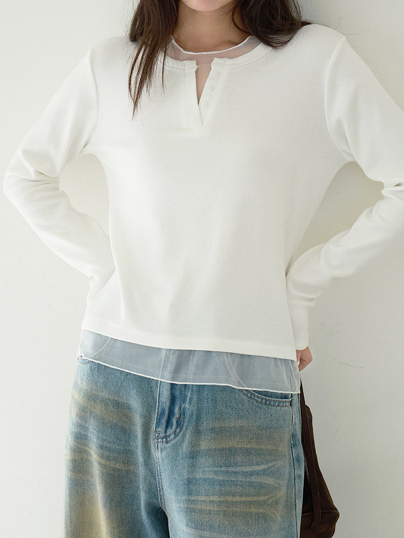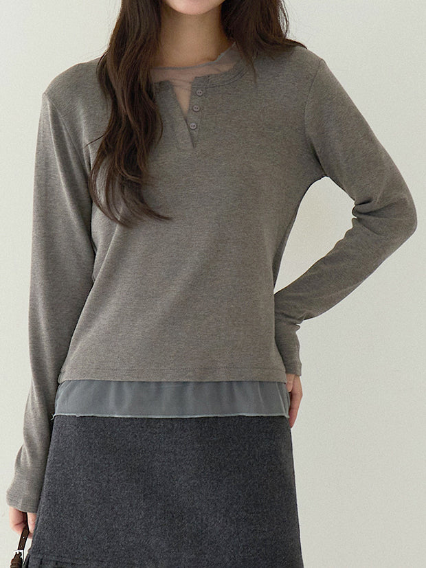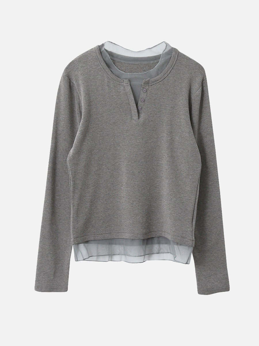 ベーシックなシルエットに、チュールを重ねたようなレイヤード風の切り替えが目を惹く1枚。