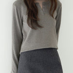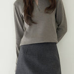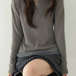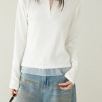 ☆襟にフロントのボタンディテールがアクセントになり、カジュアルながらも女性らしい雰囲気を醸し出します。