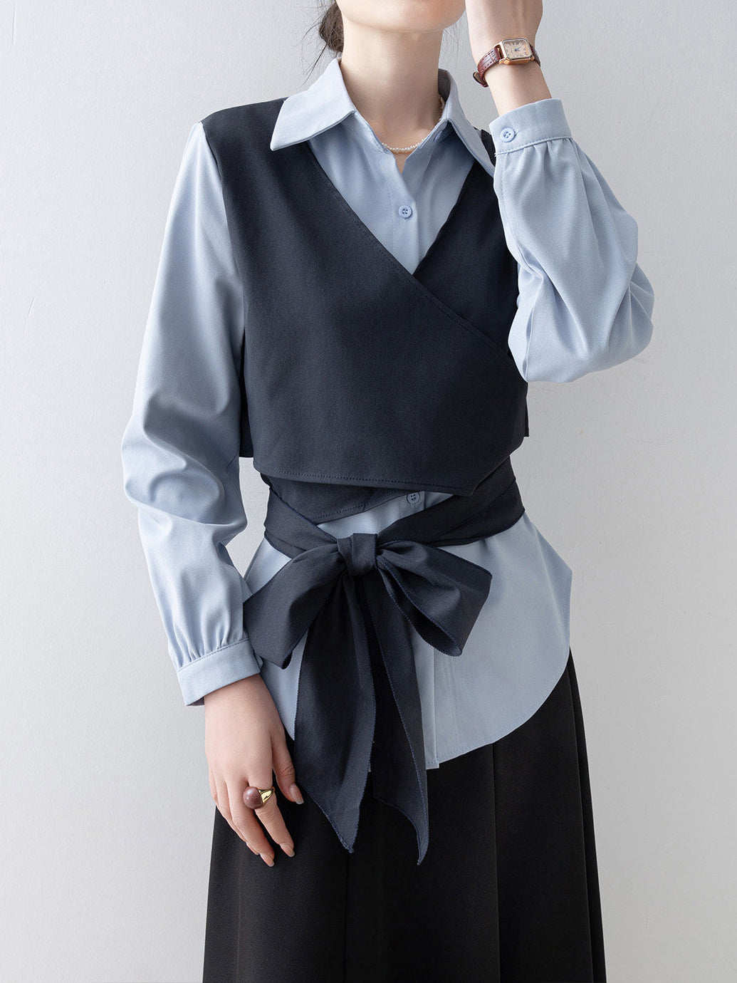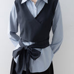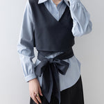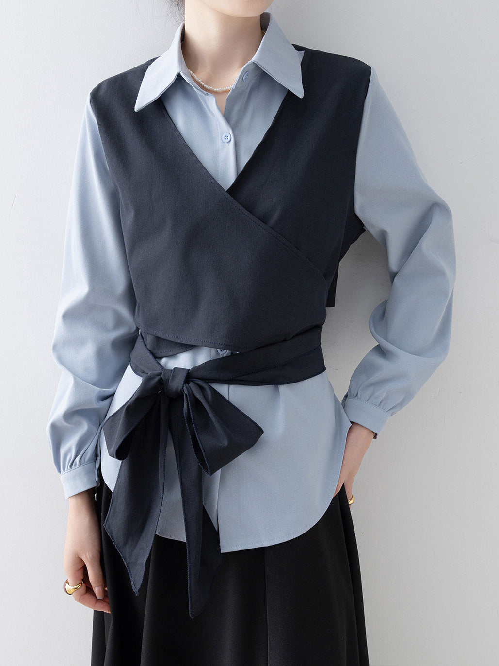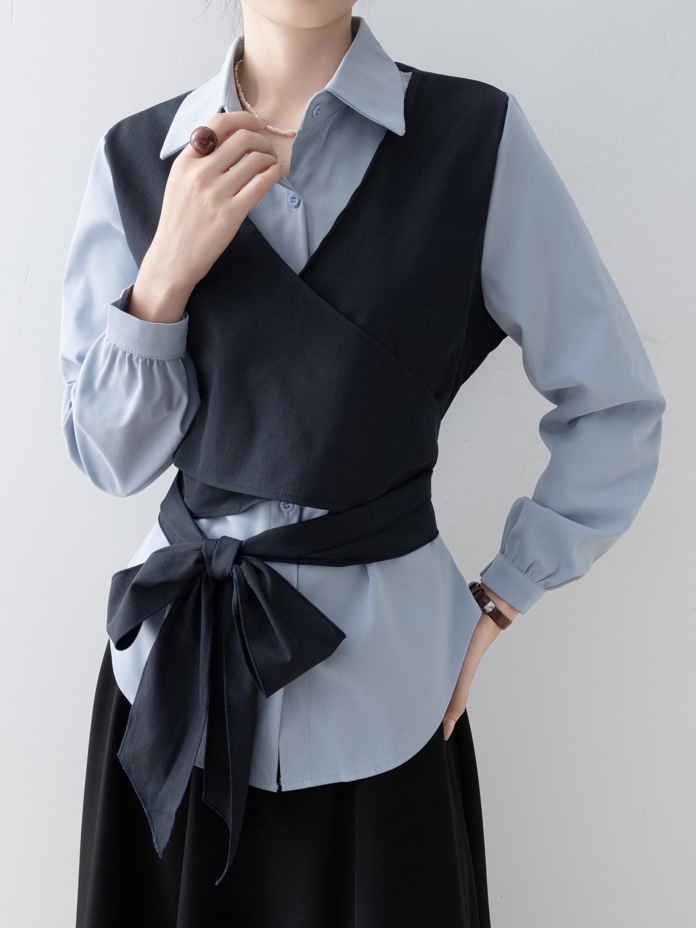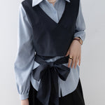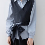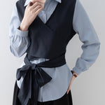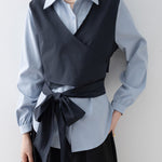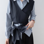 バイカラーカシュクールリボンレイヤードシャツ