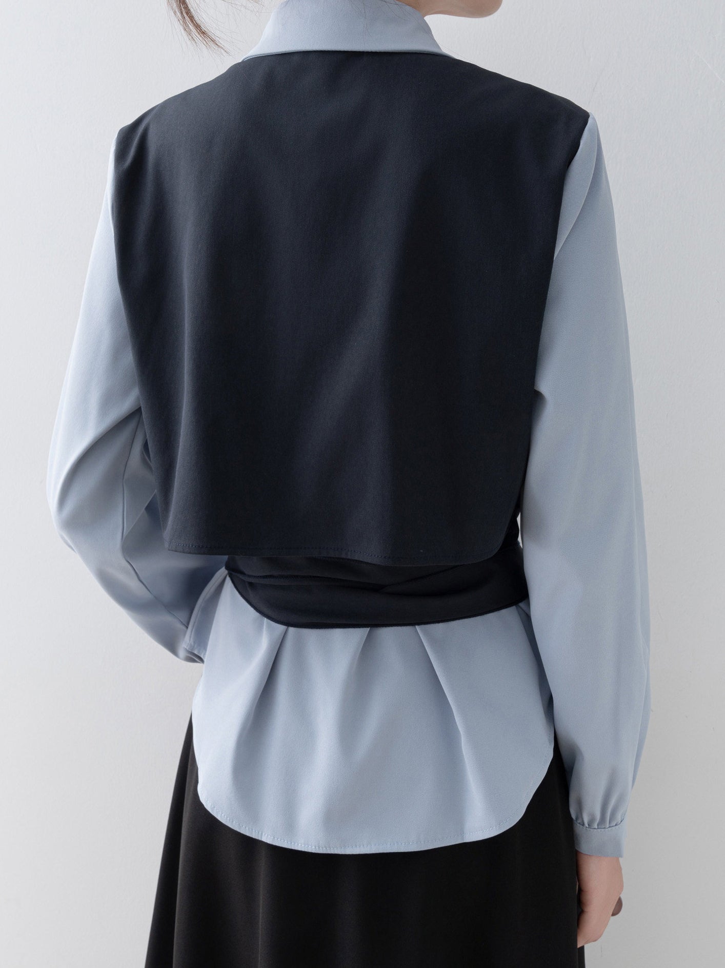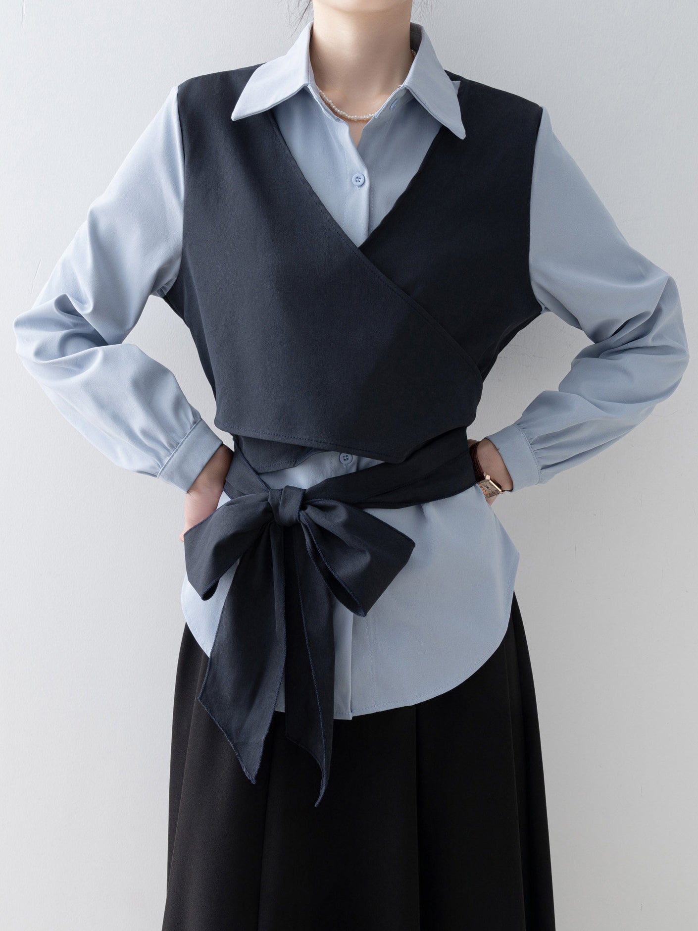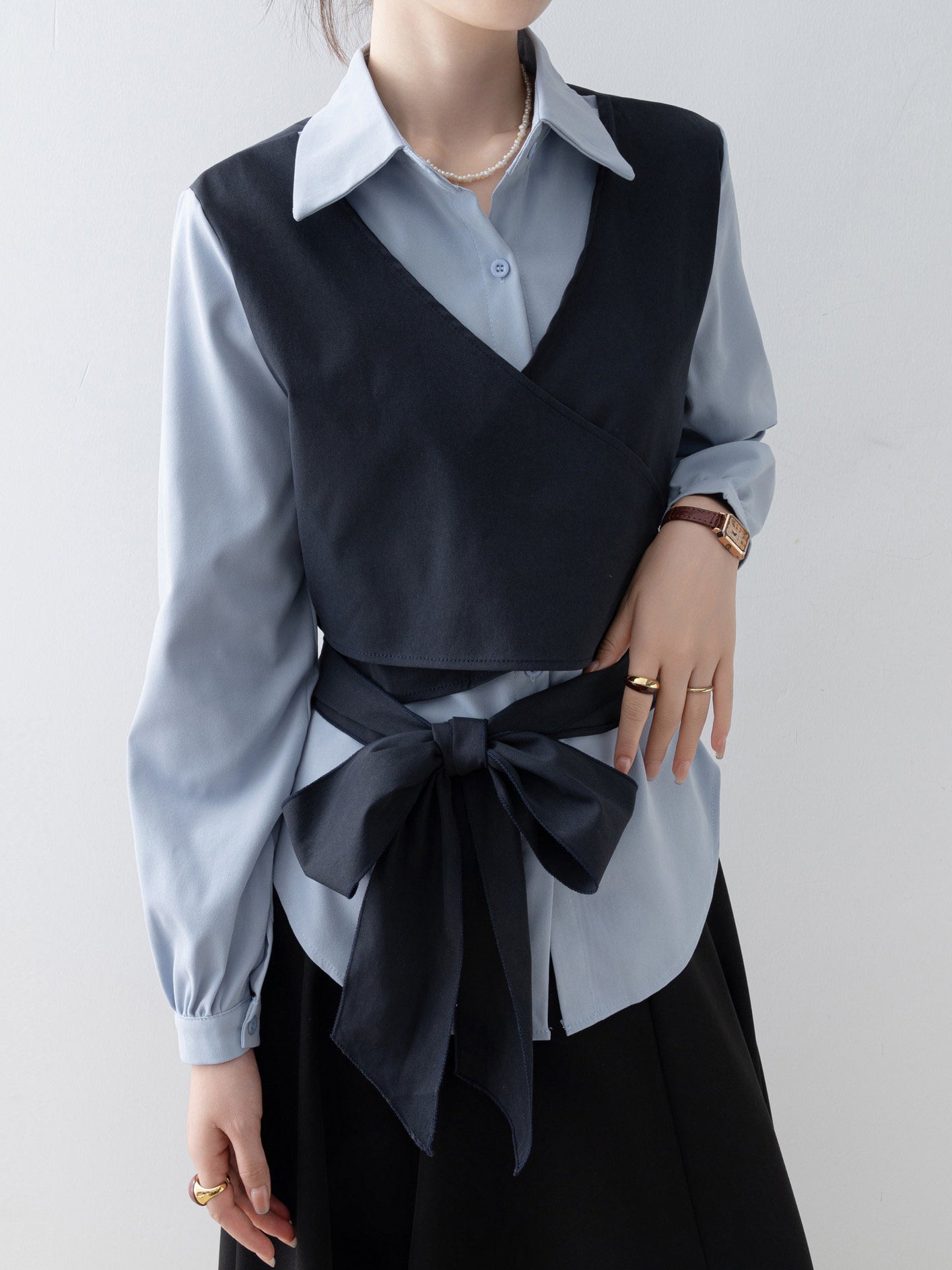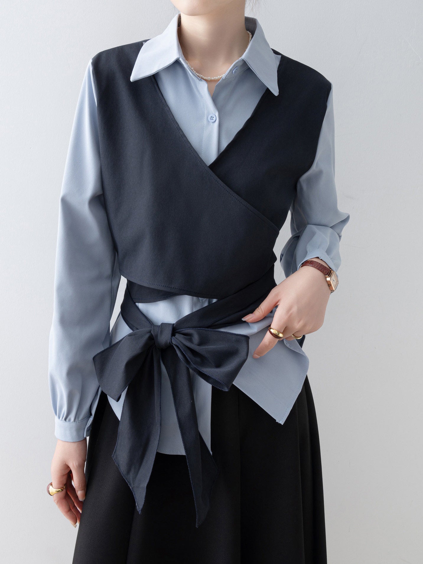 バイカラーカシュクールリボンレイヤードシャツ