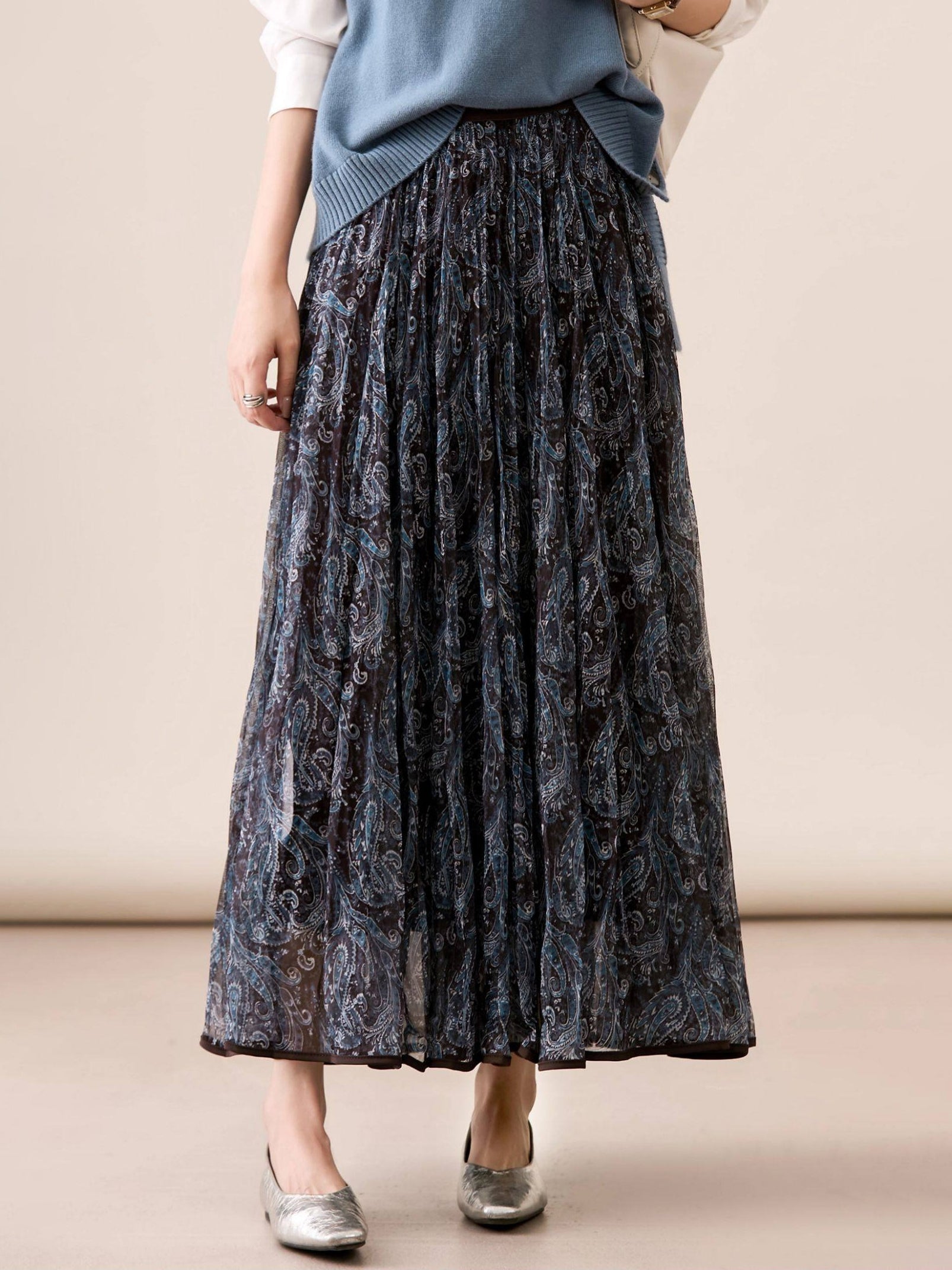 ペイズリー柄シフォンフレアスカート 3色入