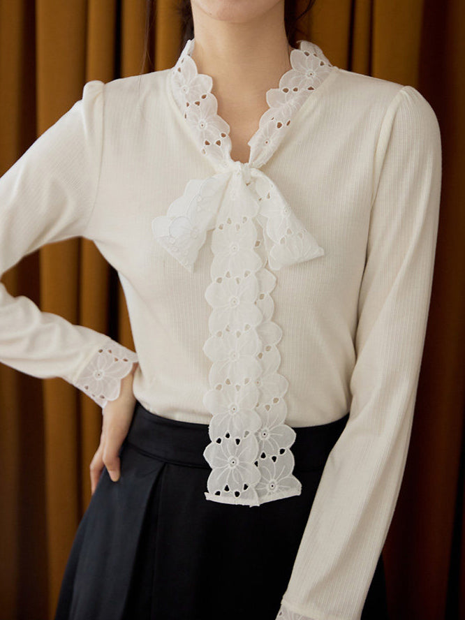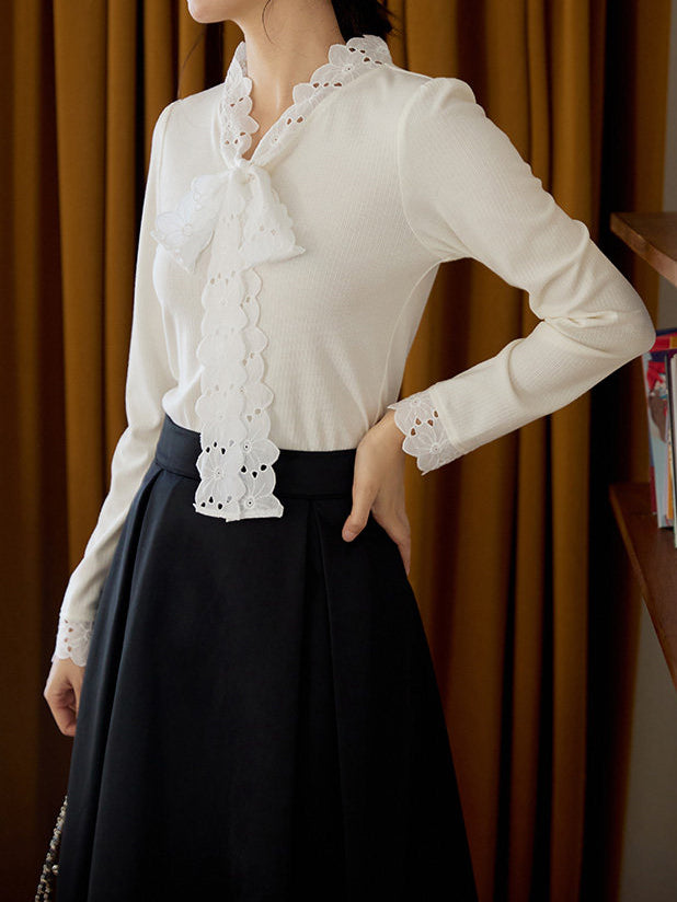 レースボウタイカットソー
