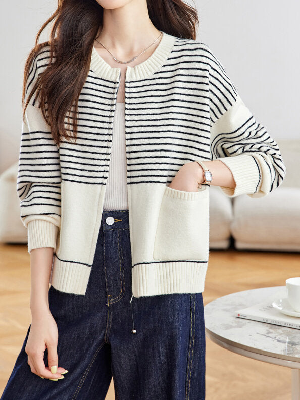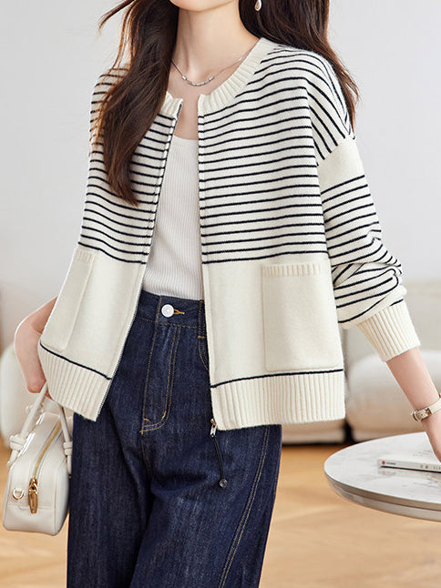 パネルボーダージップアップカーディガン 2色入