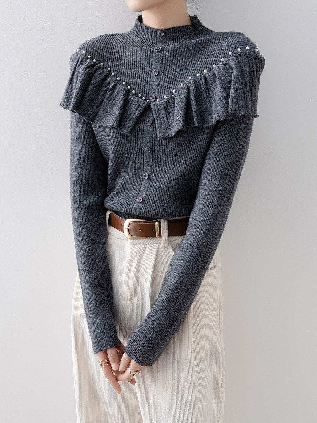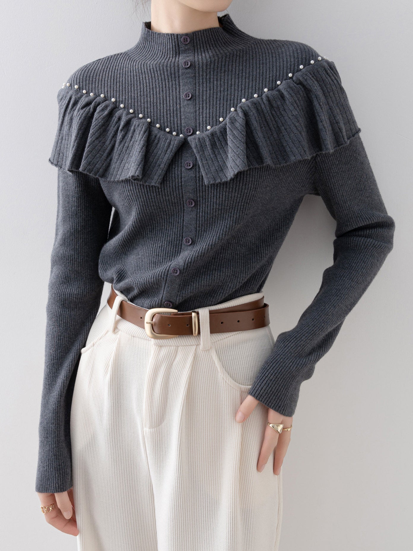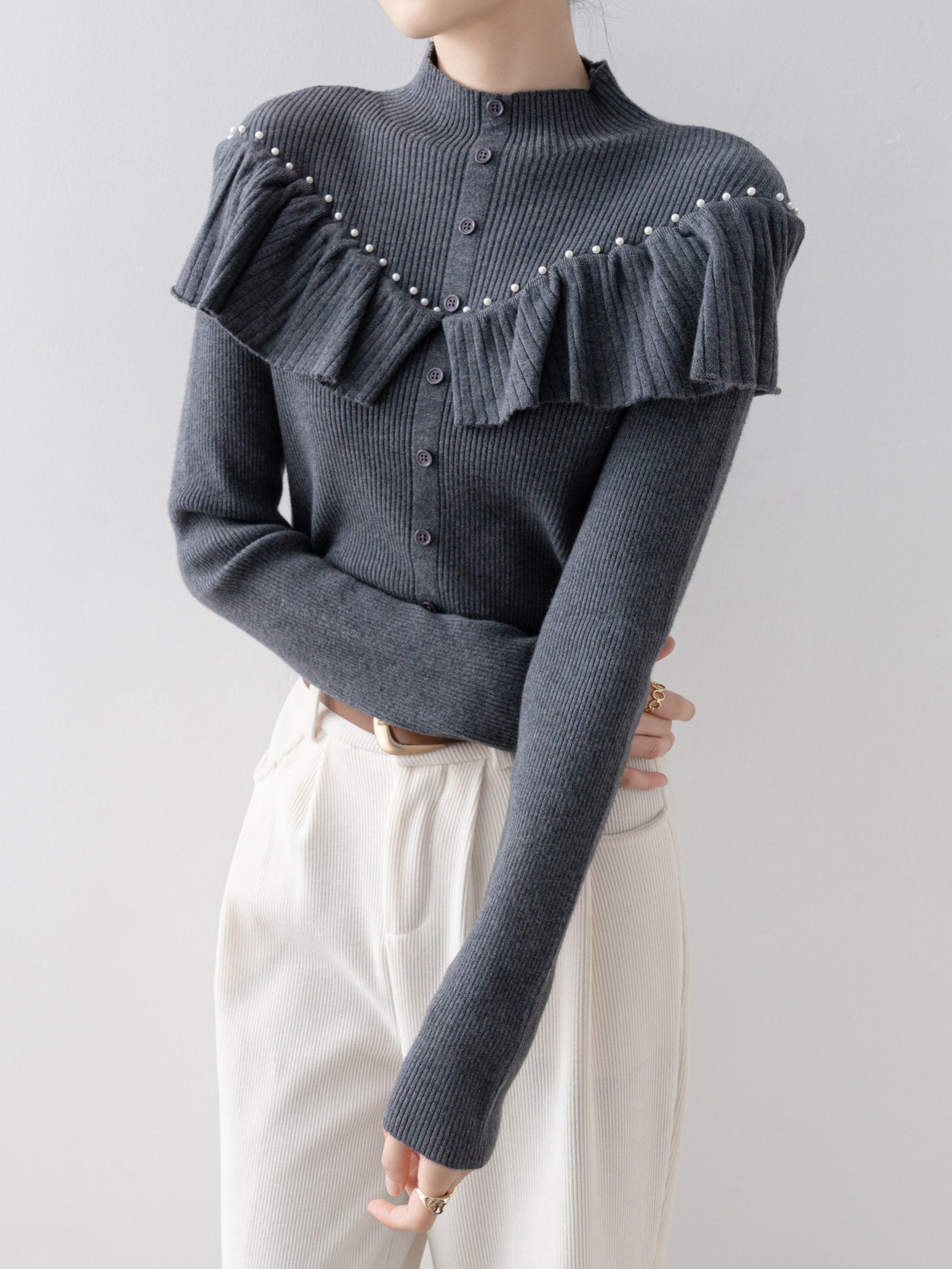 パールフリルリブニット 2色入