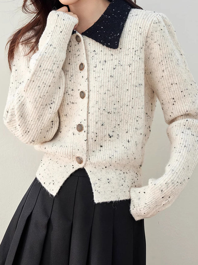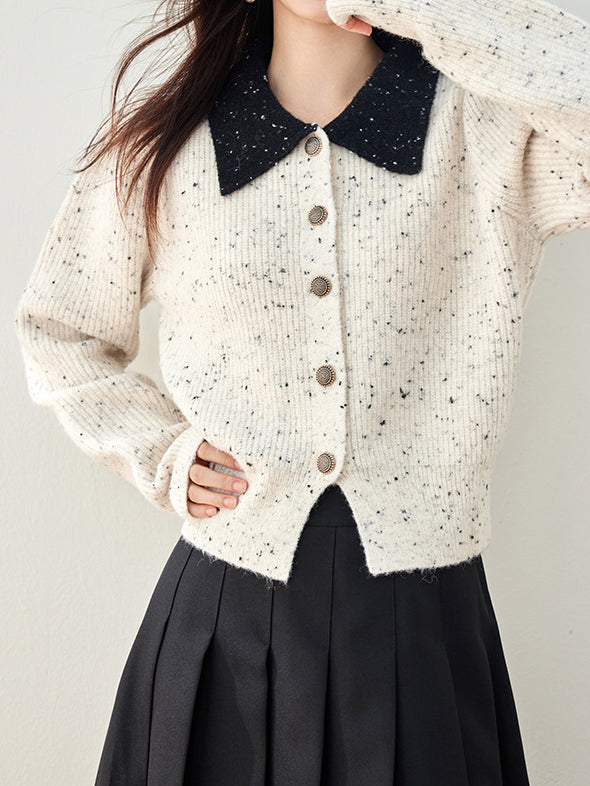 配色ドットデザイン金ボタンカーディガン