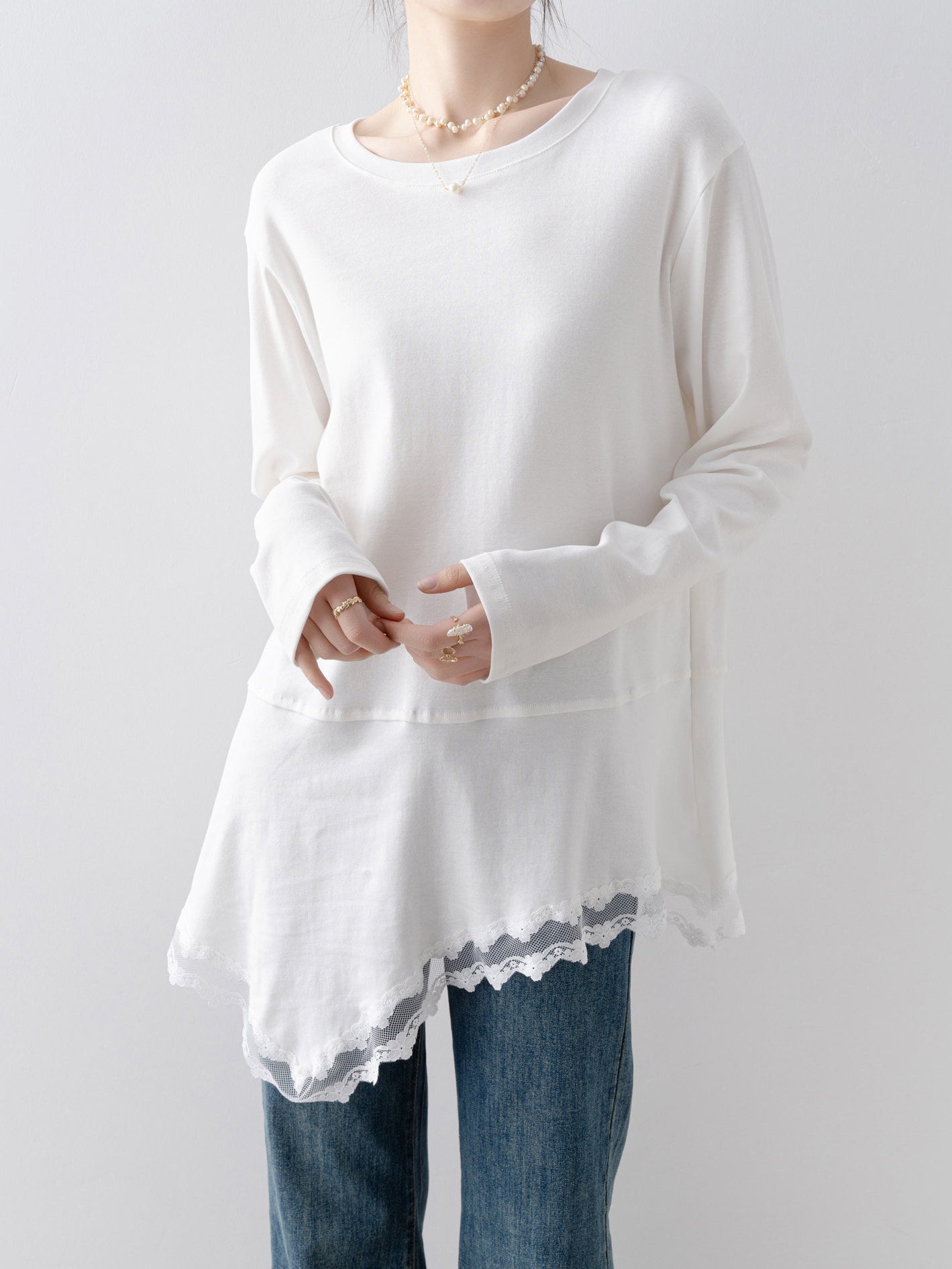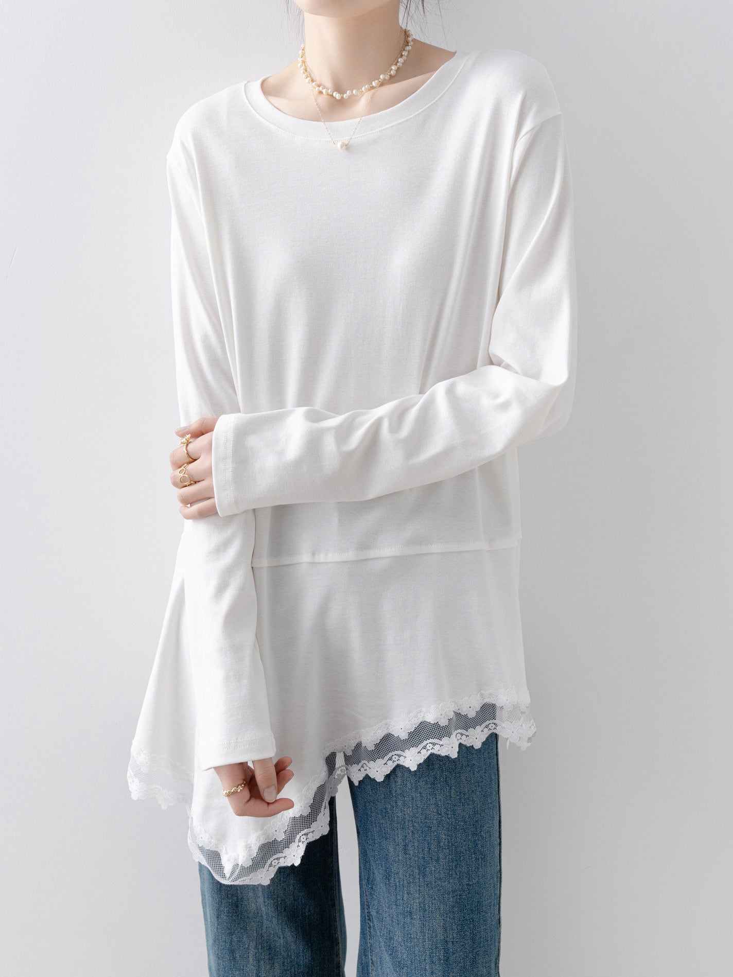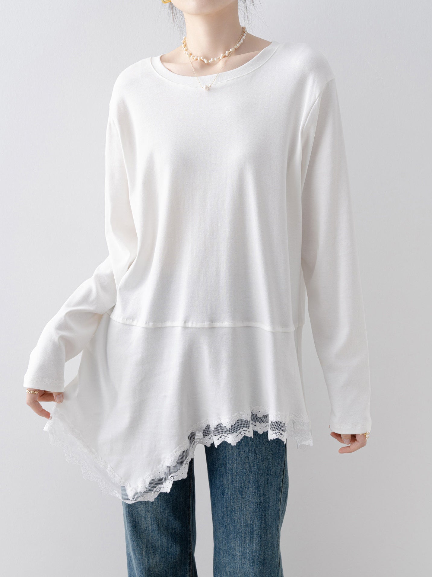 アシメレースヘムカットソー
