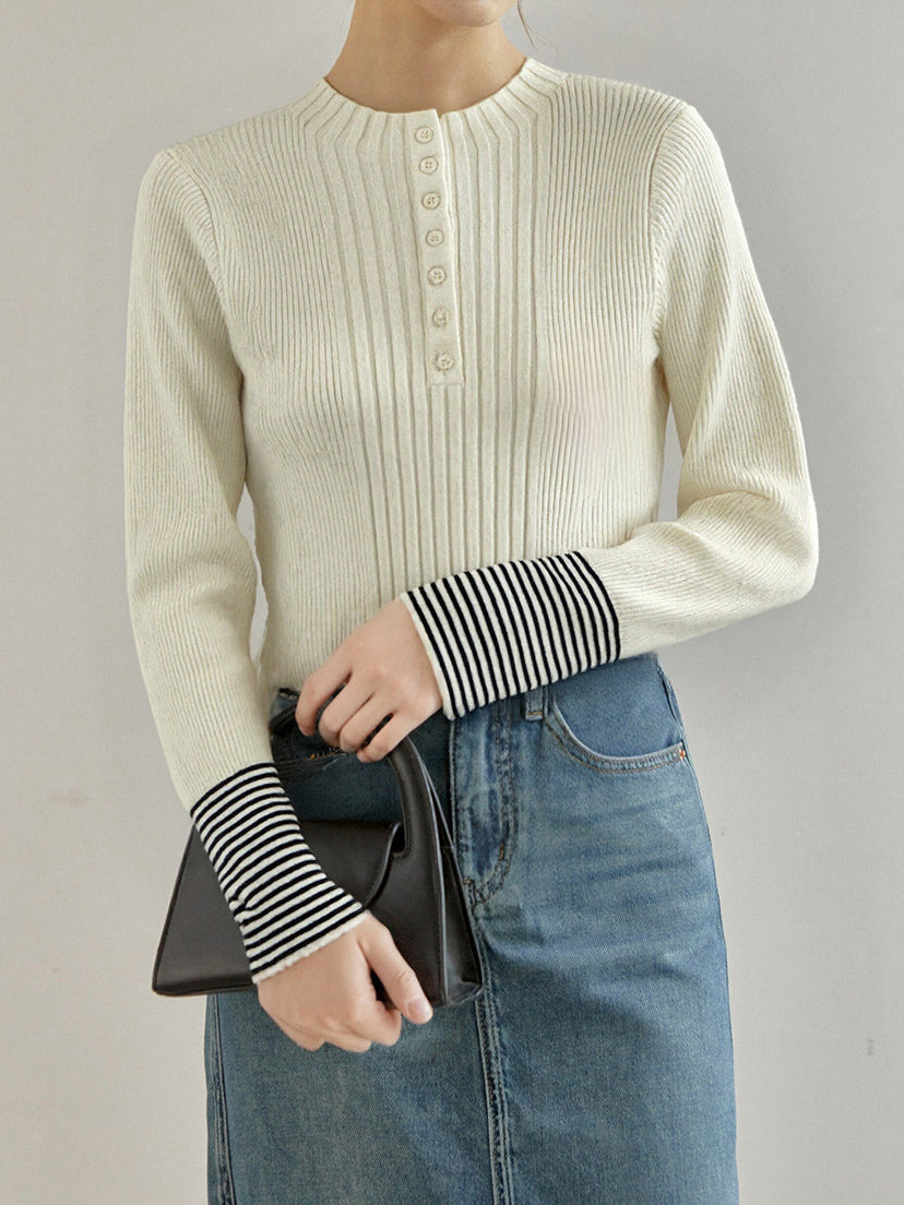 ボーダーカフスボタンニット 3色入