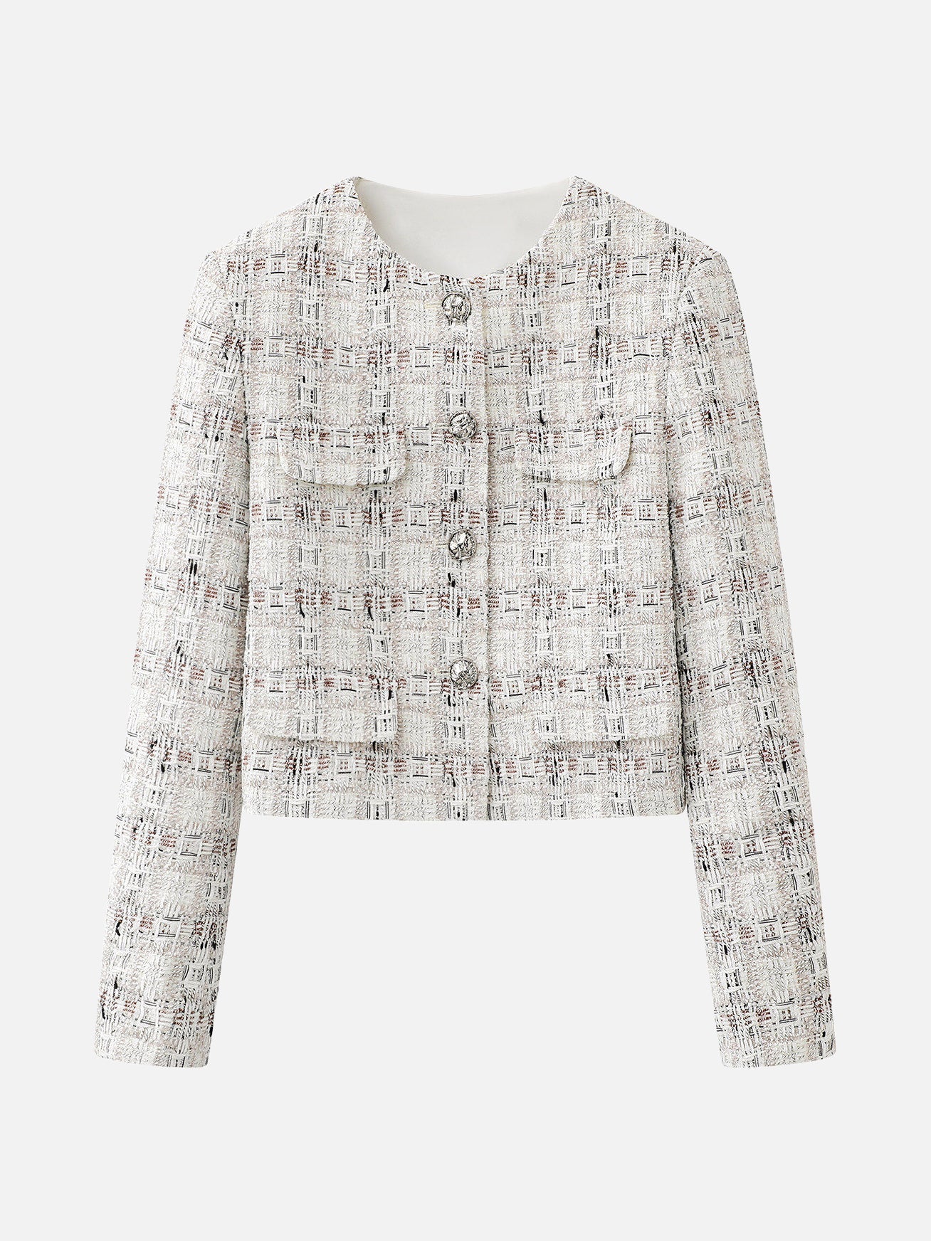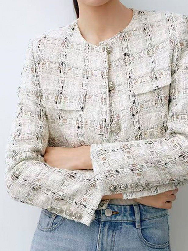 ノーカラーチェックツイードジャケット