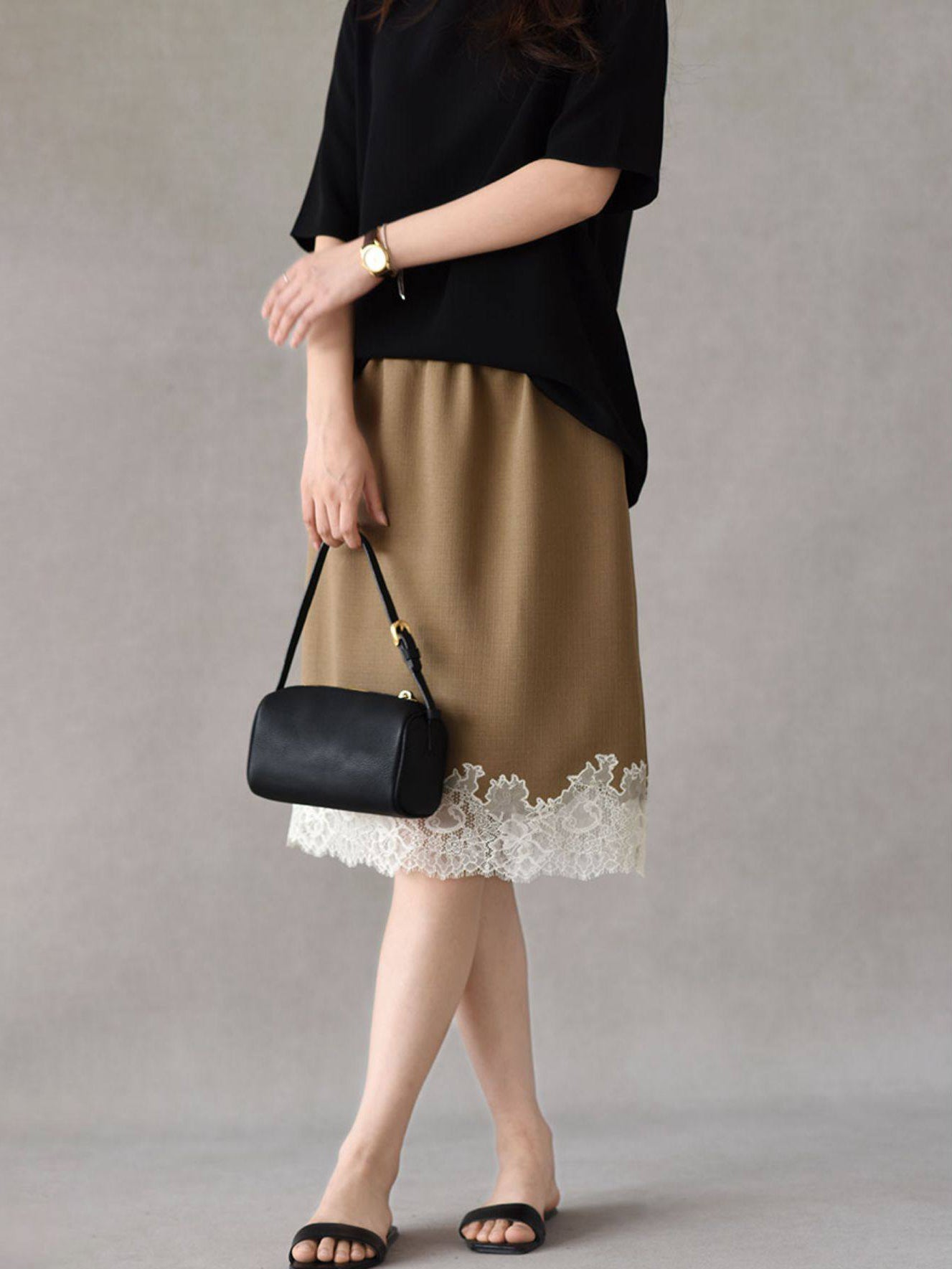 レースドッキングアセテートスカート 3色入