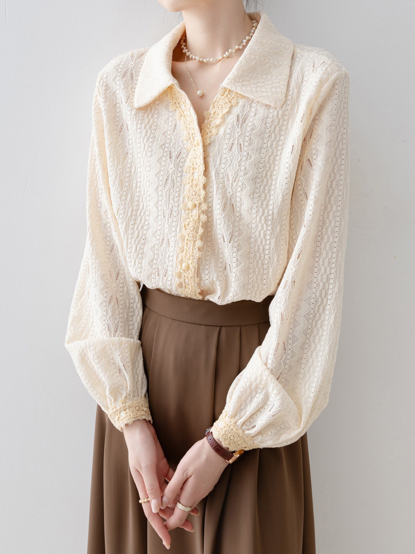 レースドッキングジャガードブラウス 2色入