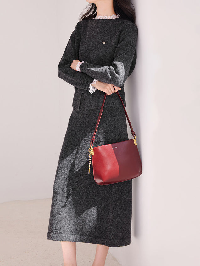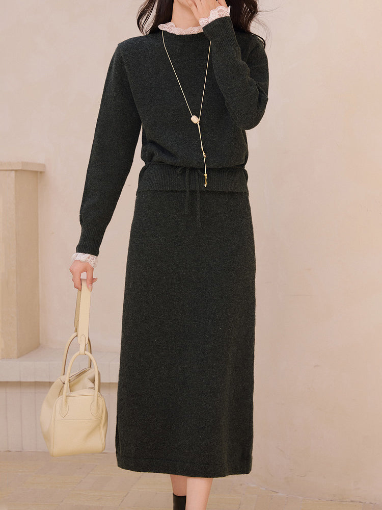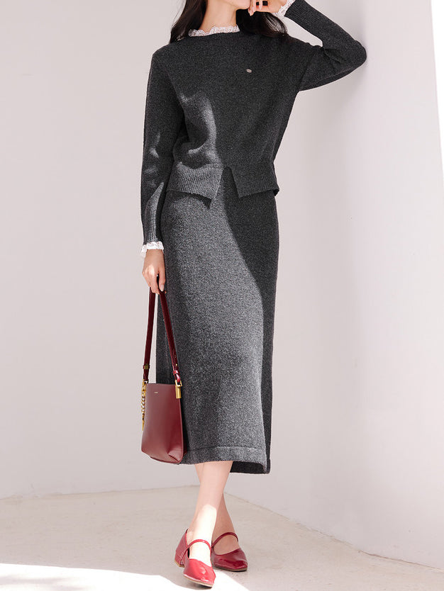 レースドッキングフロントスリットニット<セットアップ可能>