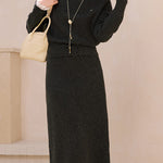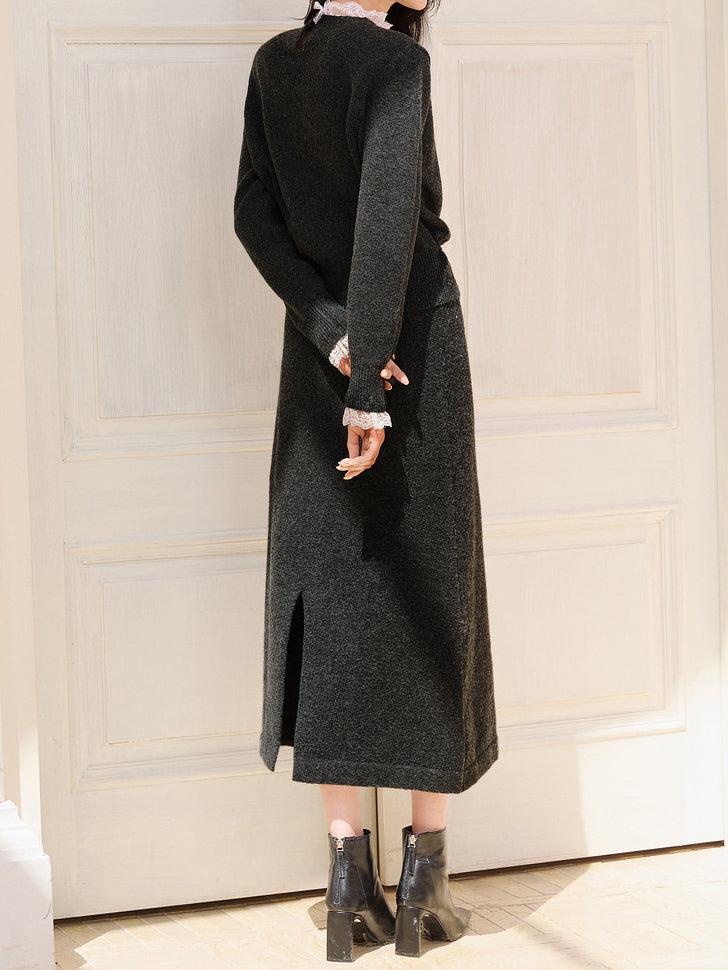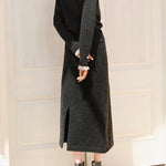 バックスリットニットロングナロースカート<セットアップ可能>