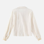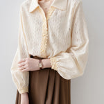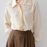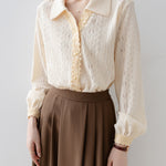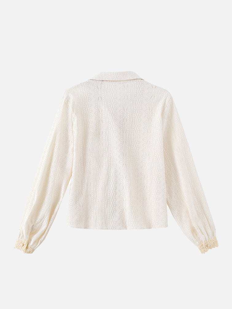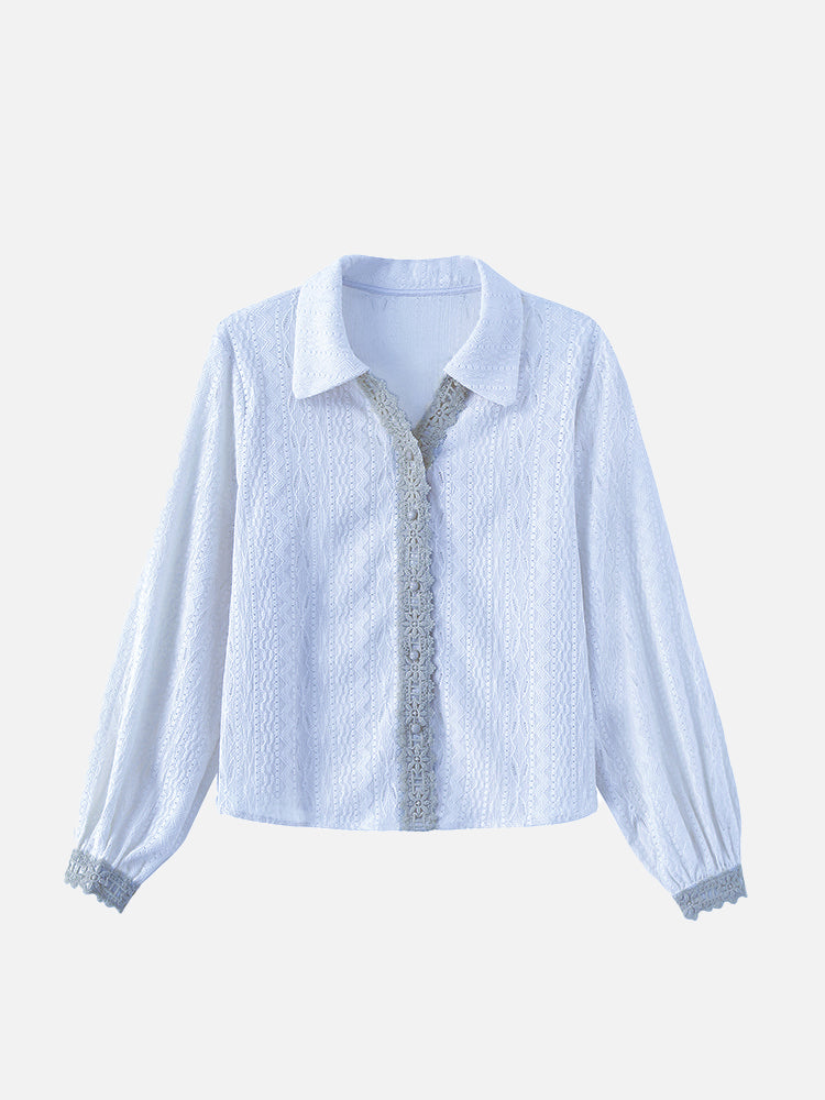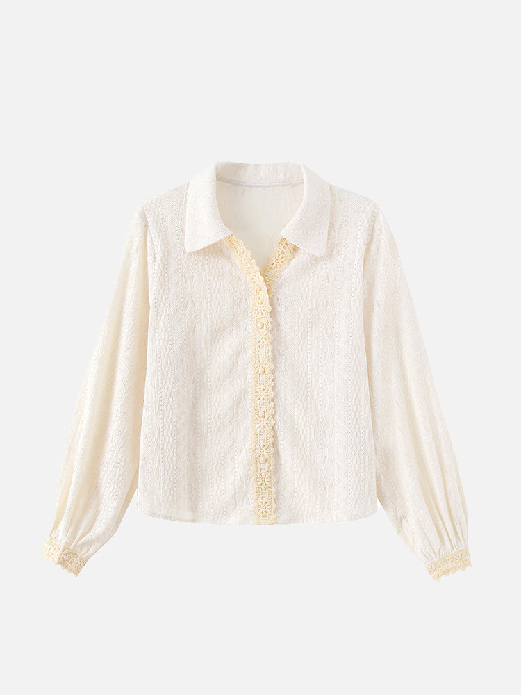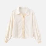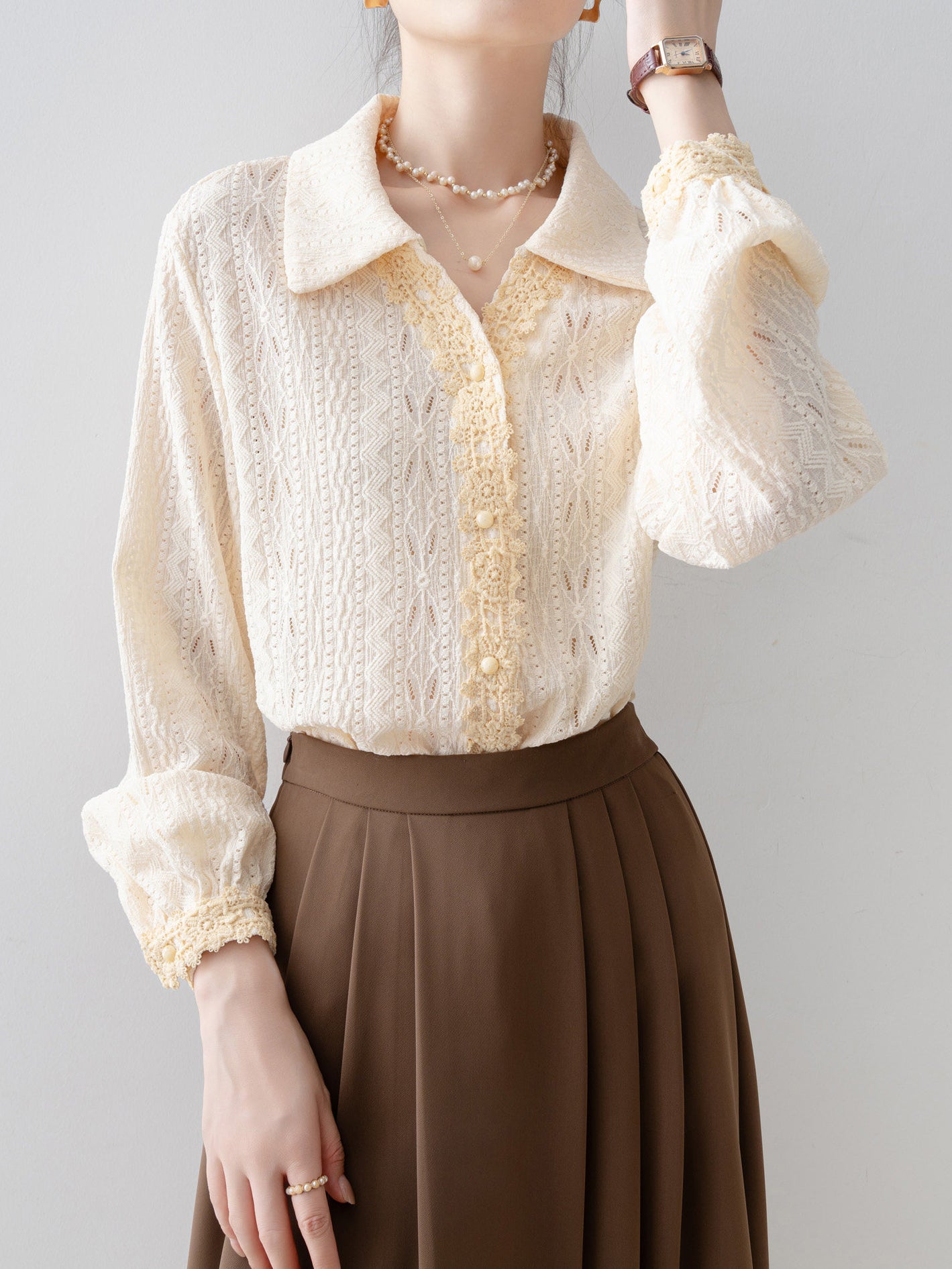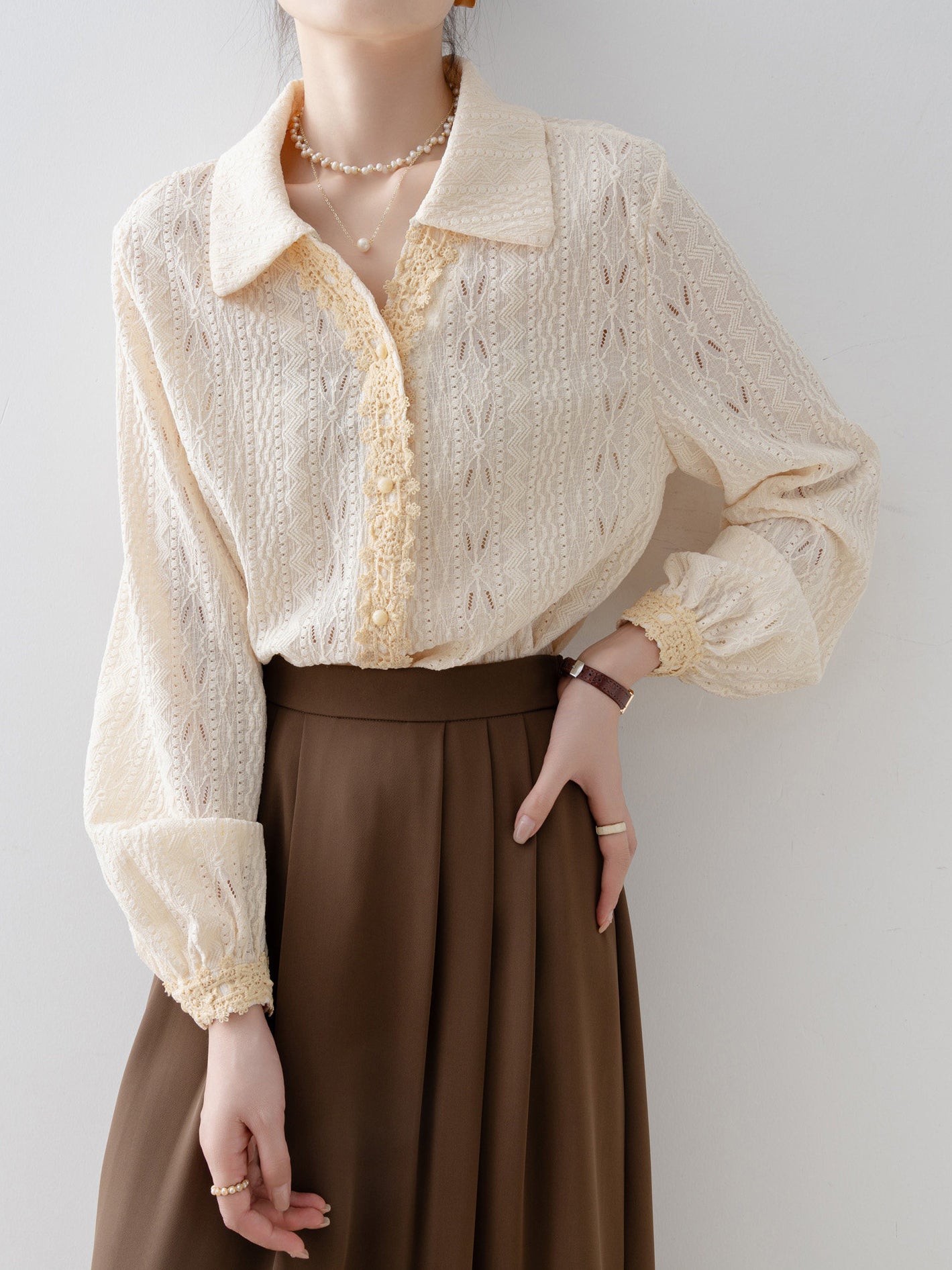 繊細で高級感のあるレースをドッキングされ、レディライクな大人ブラウス。