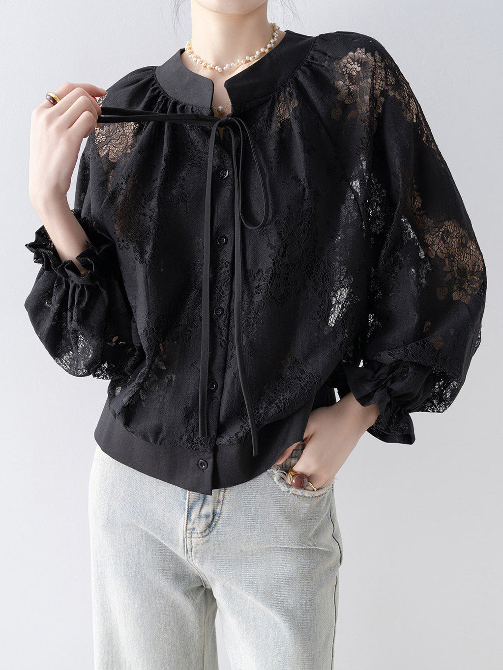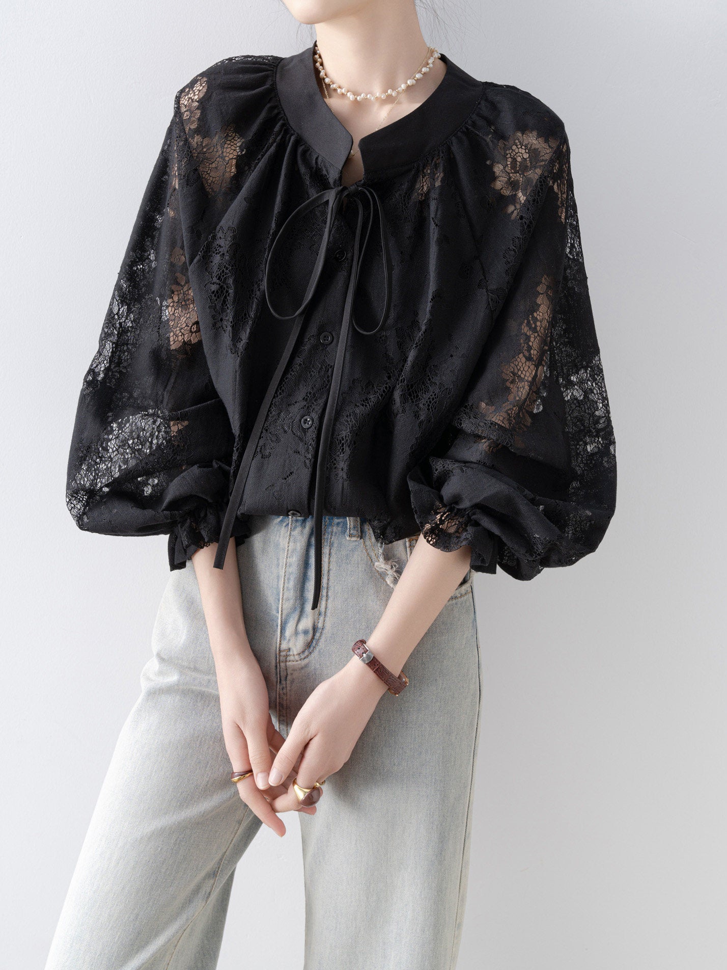 【上品な刺繍レースで透け感と品のある甘さを纏う】