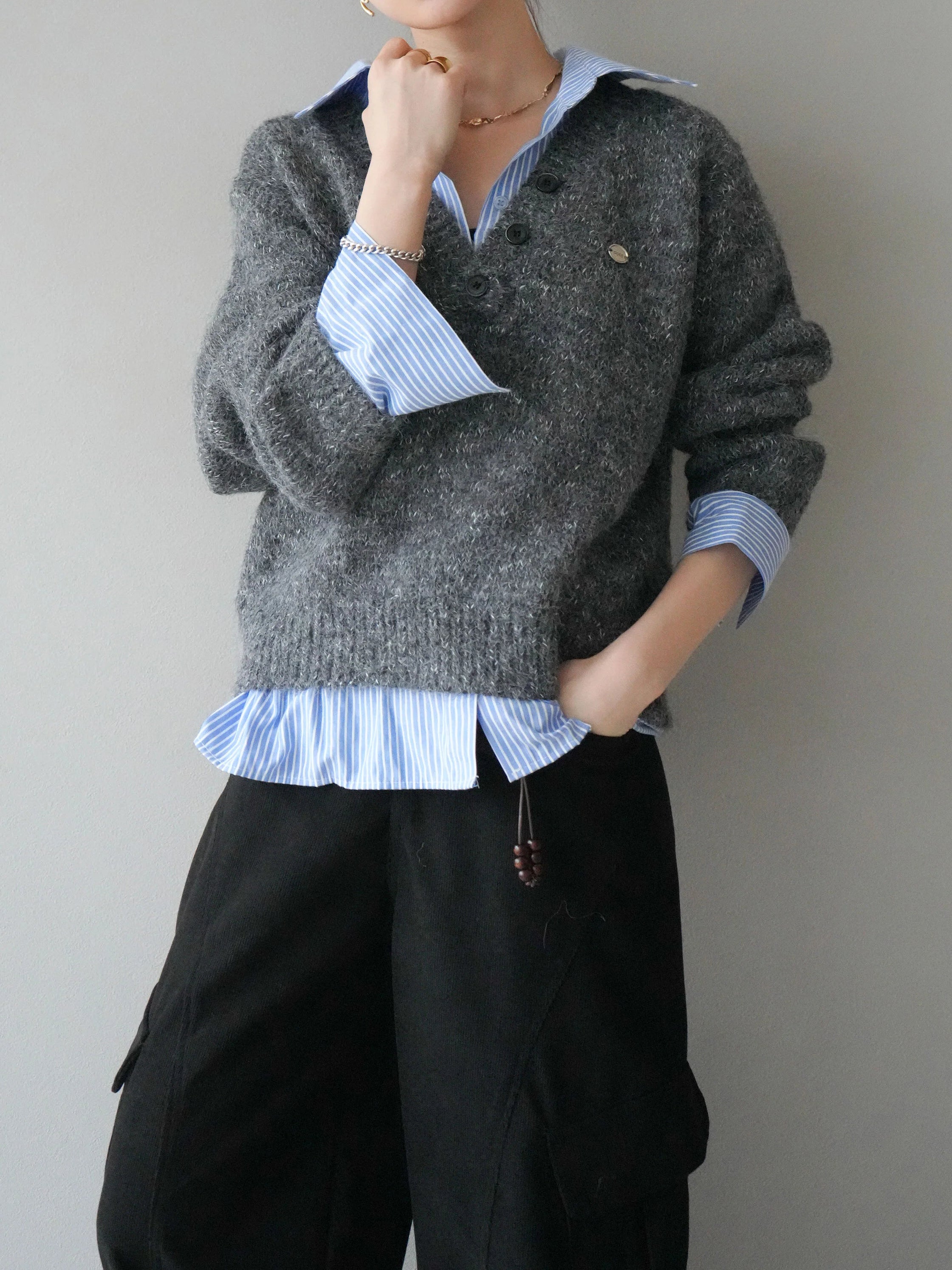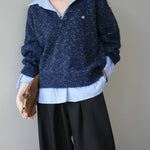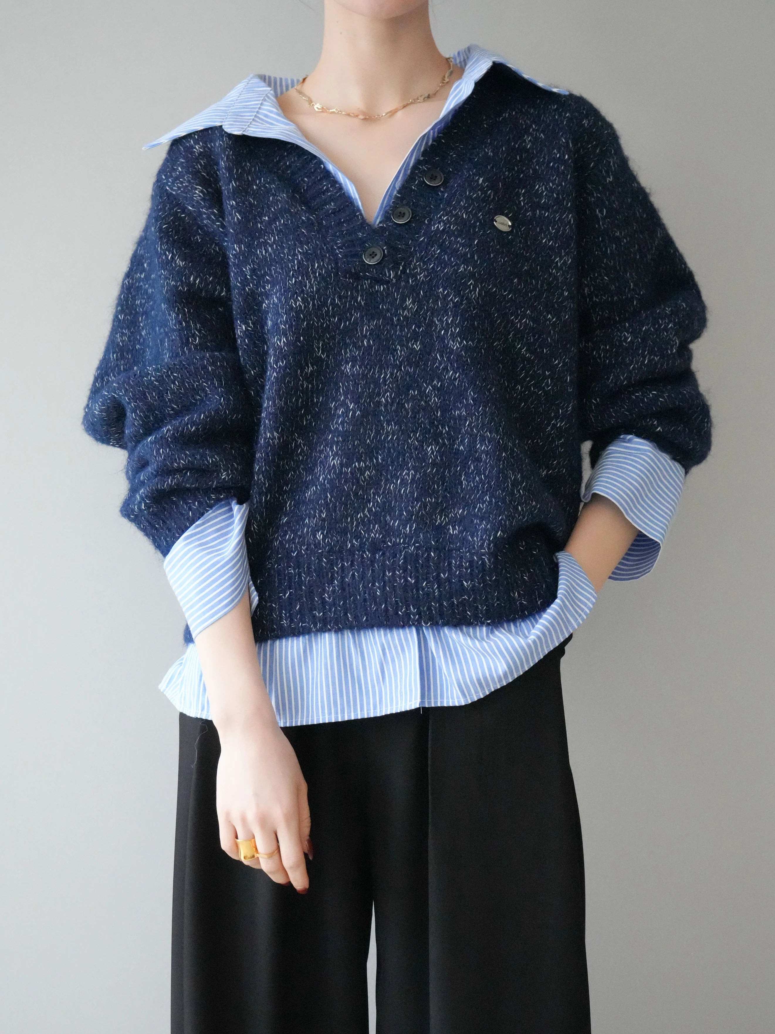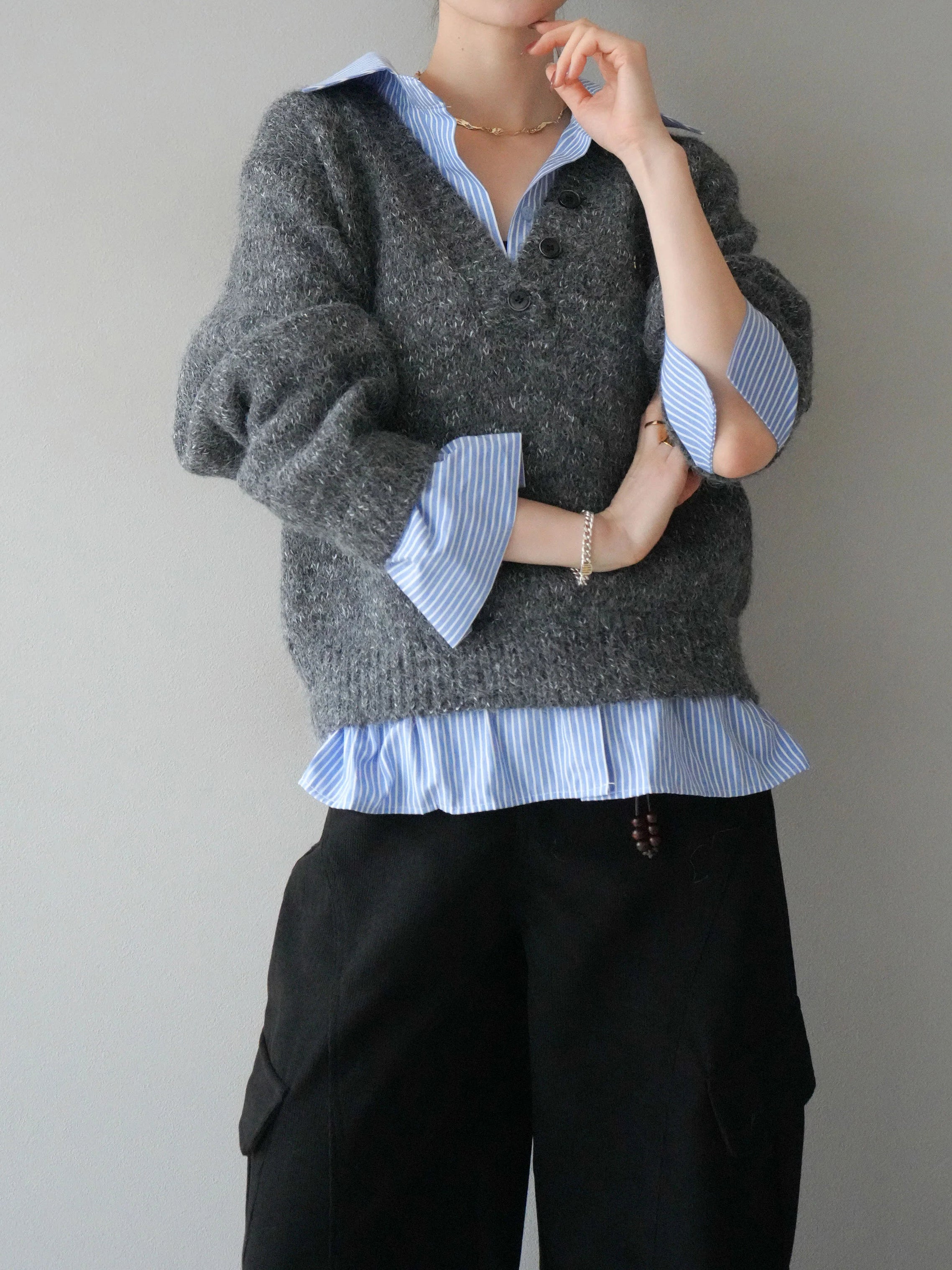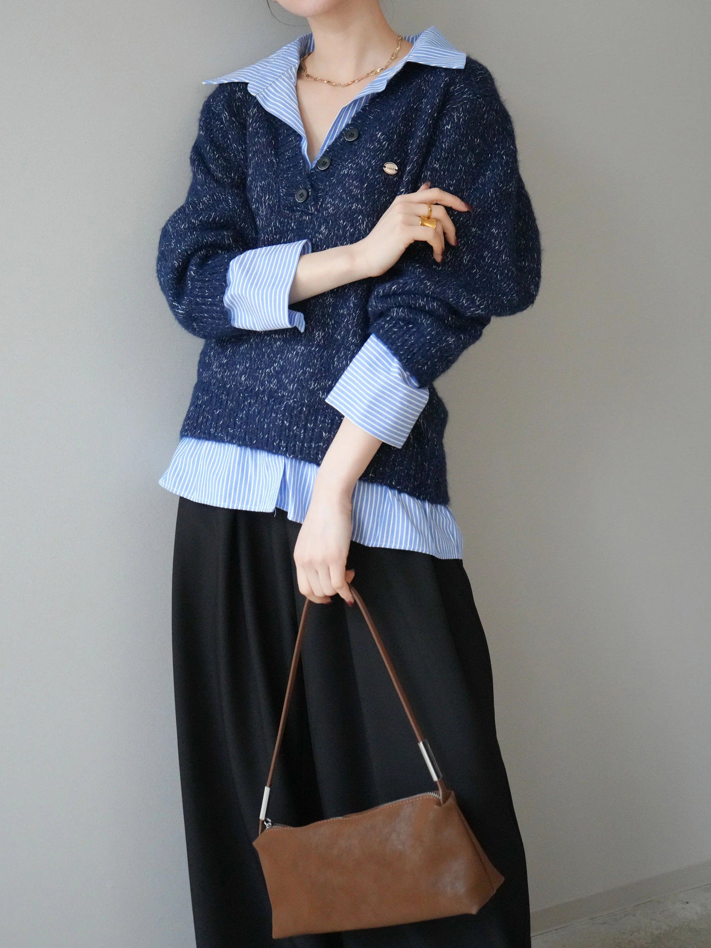 ストライプシャツドッキングMIXヤーンニットプルオーバー 2色入