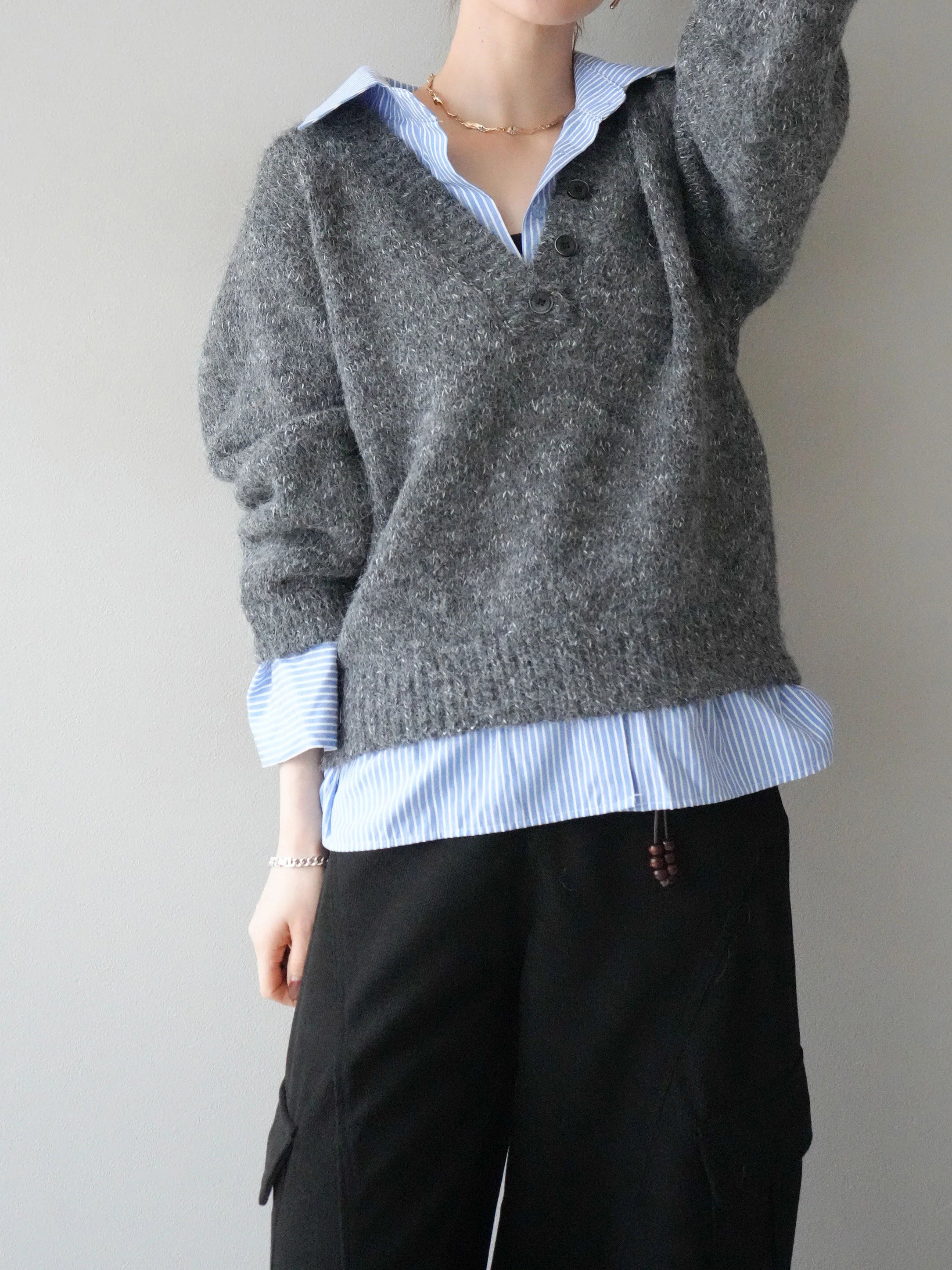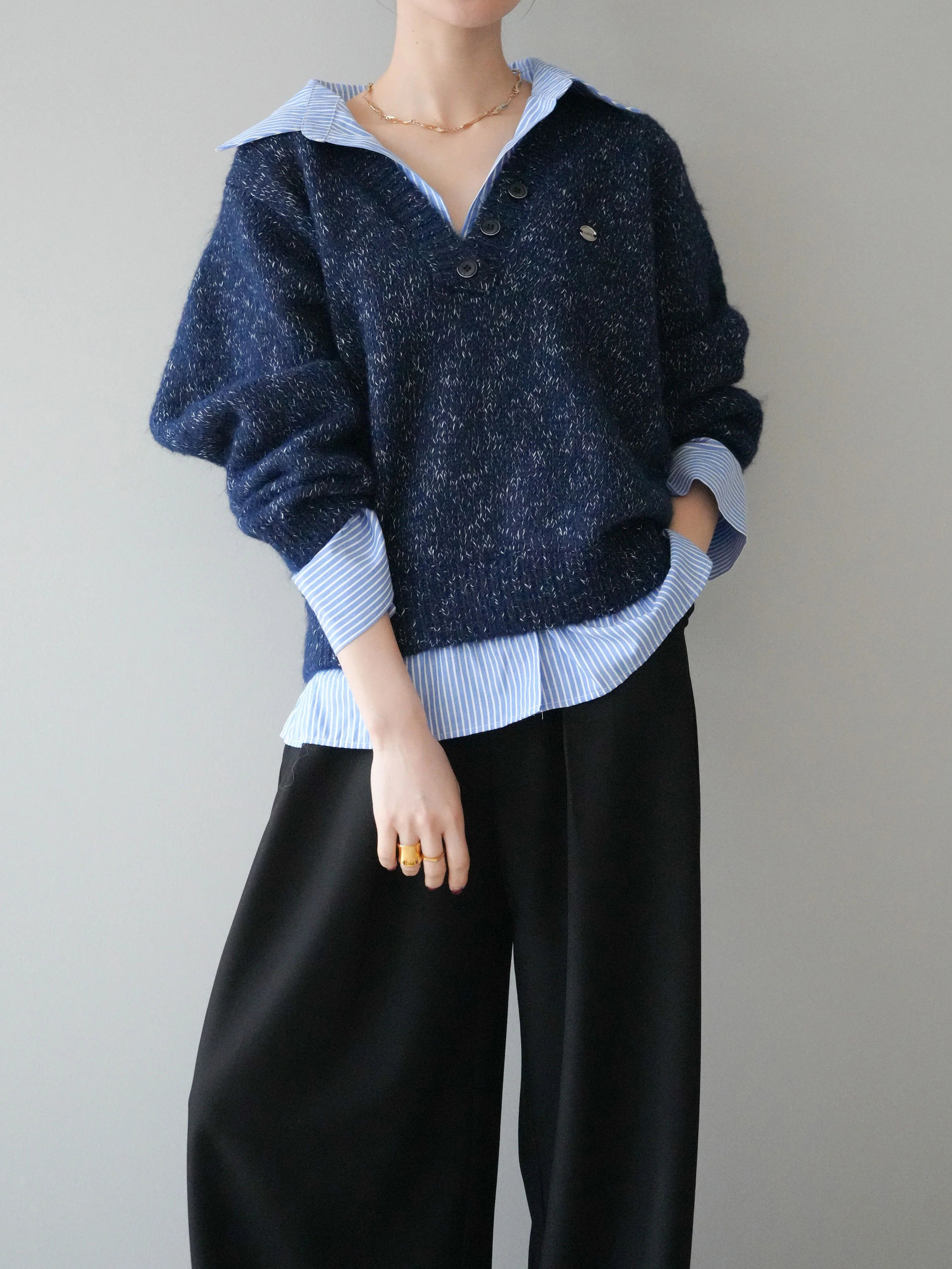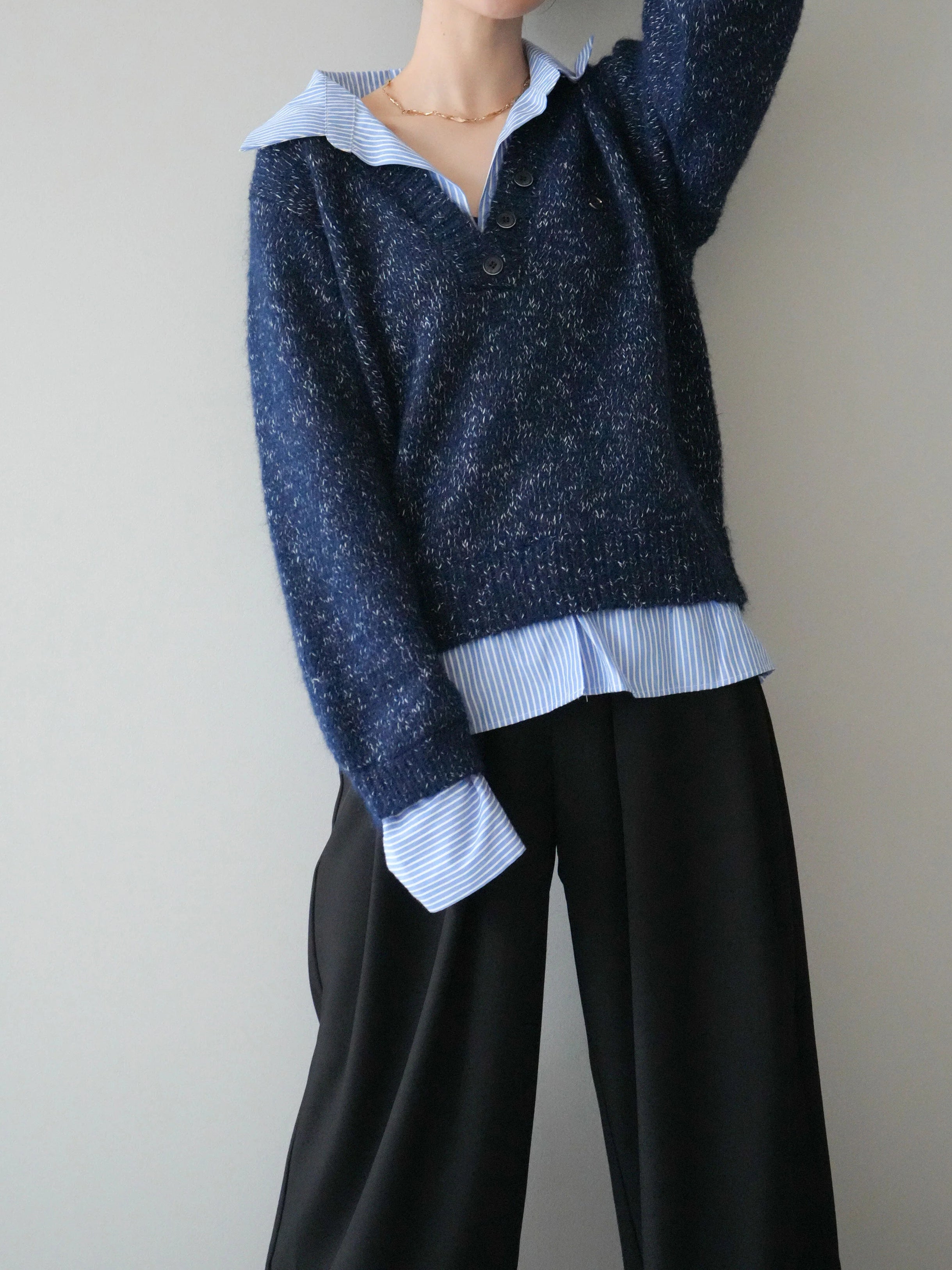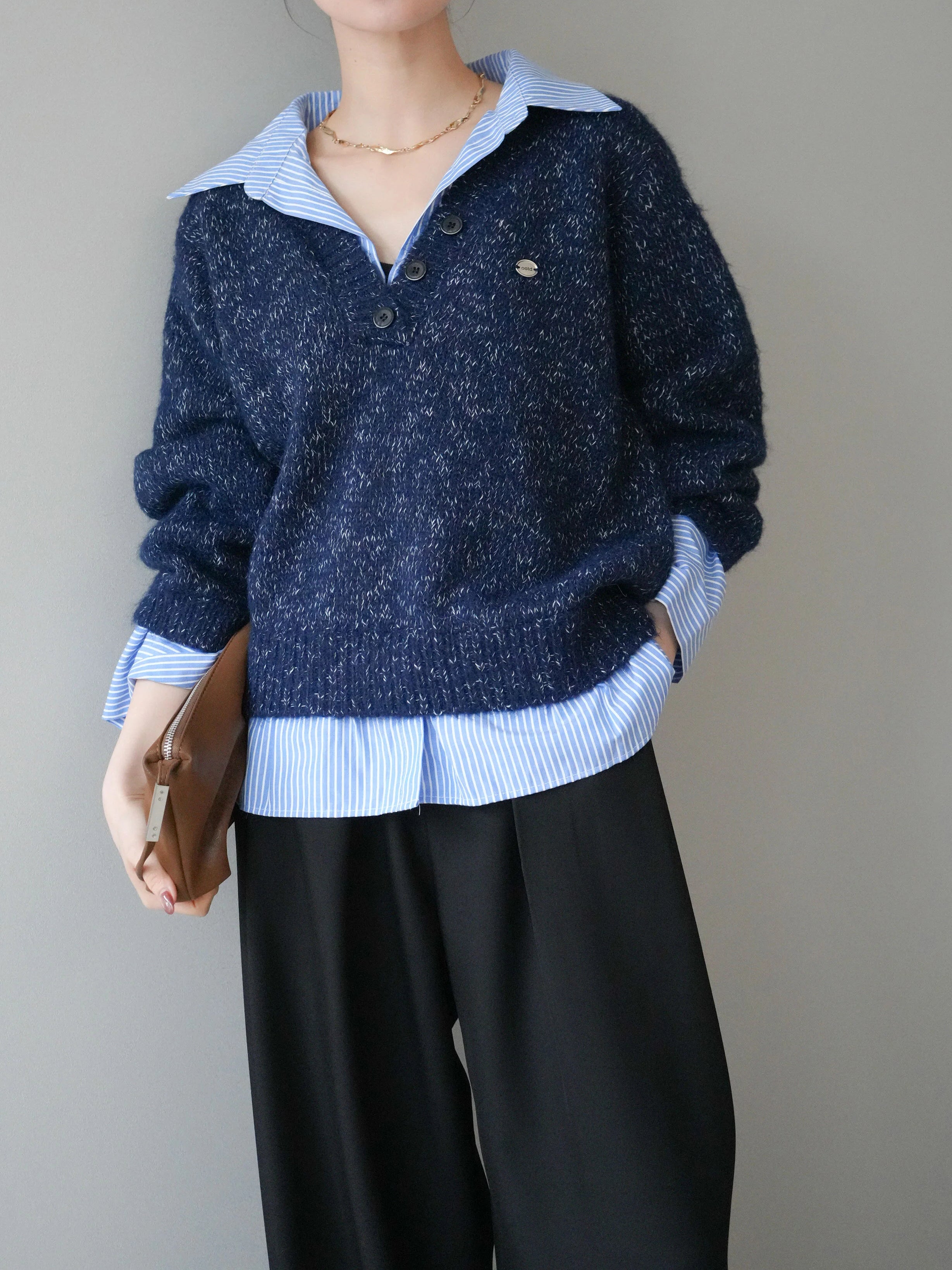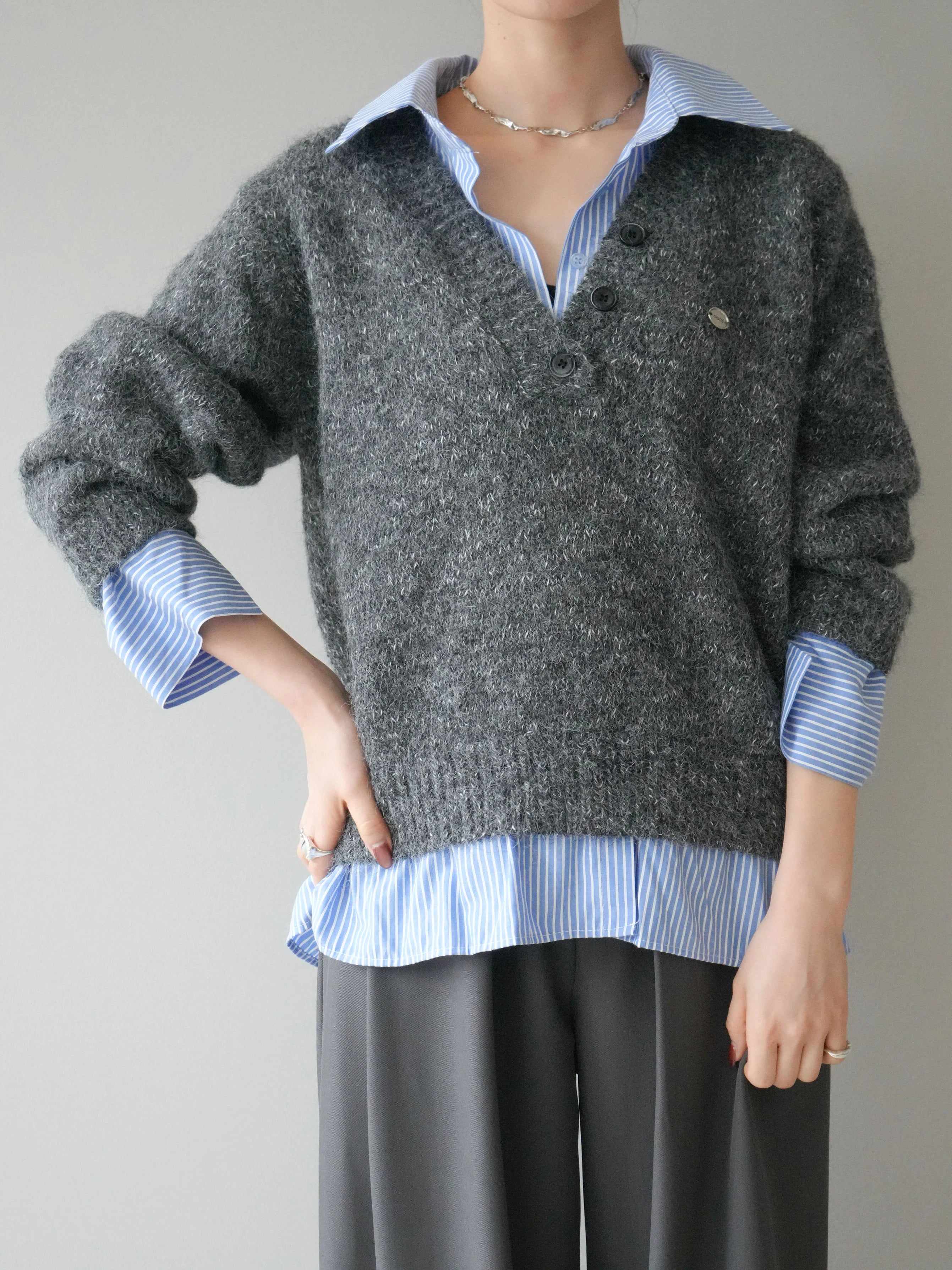 ストライプシャツドッキングMIXヤーンニットプルオーバー 2色入