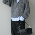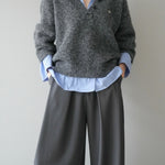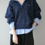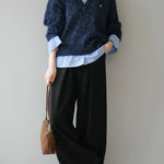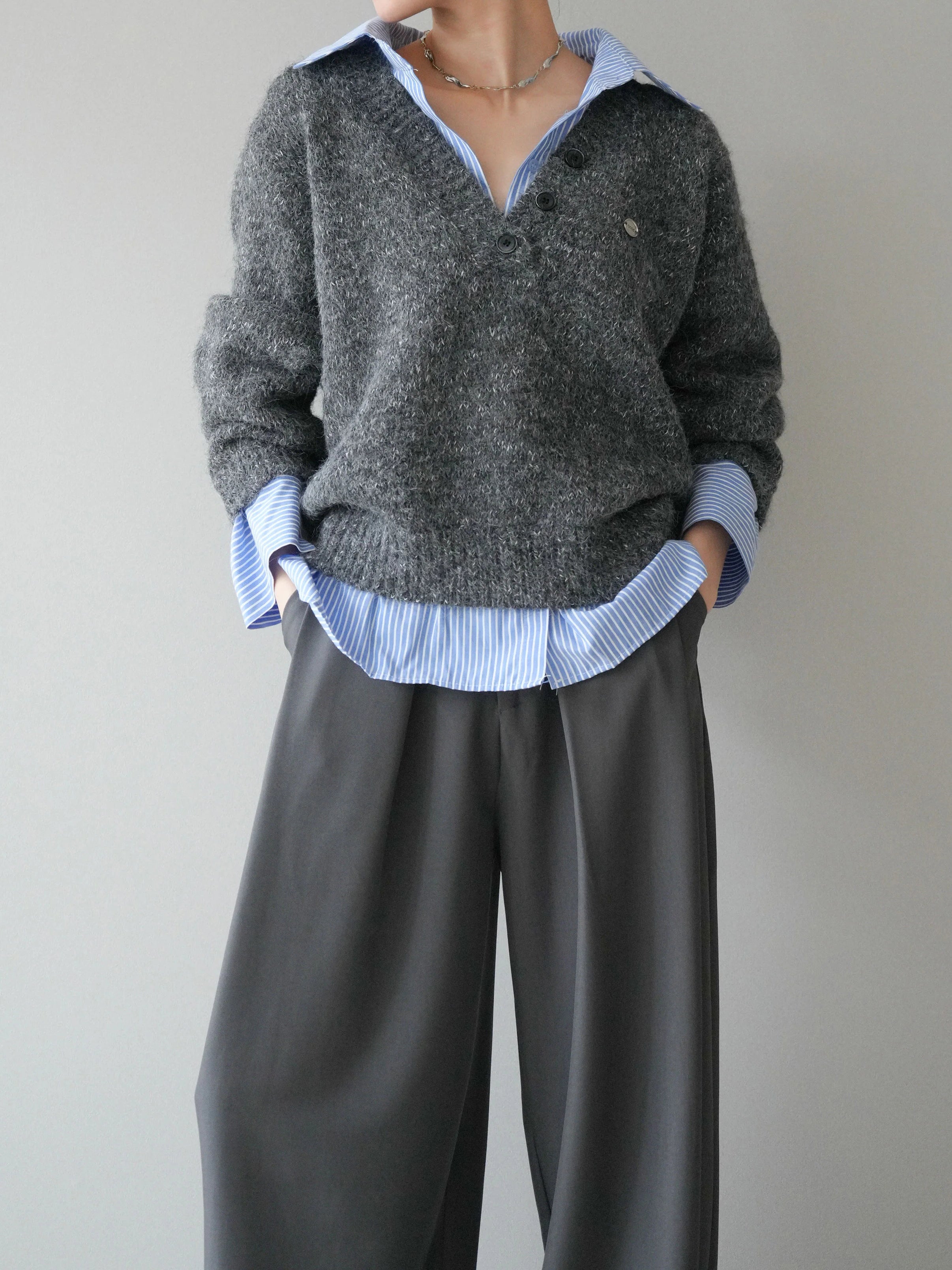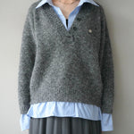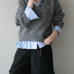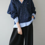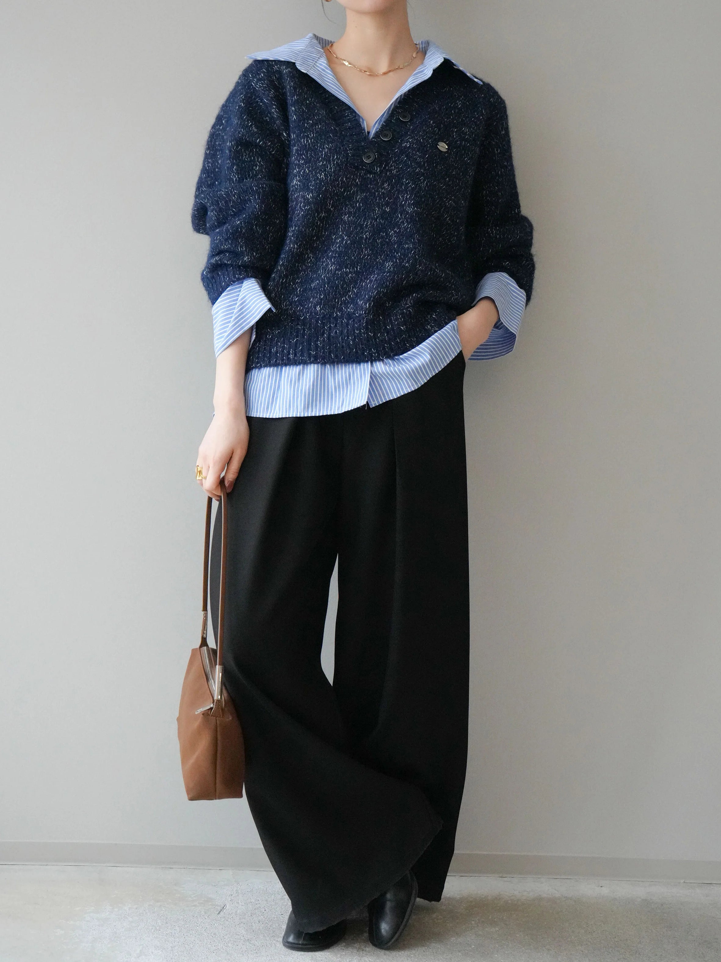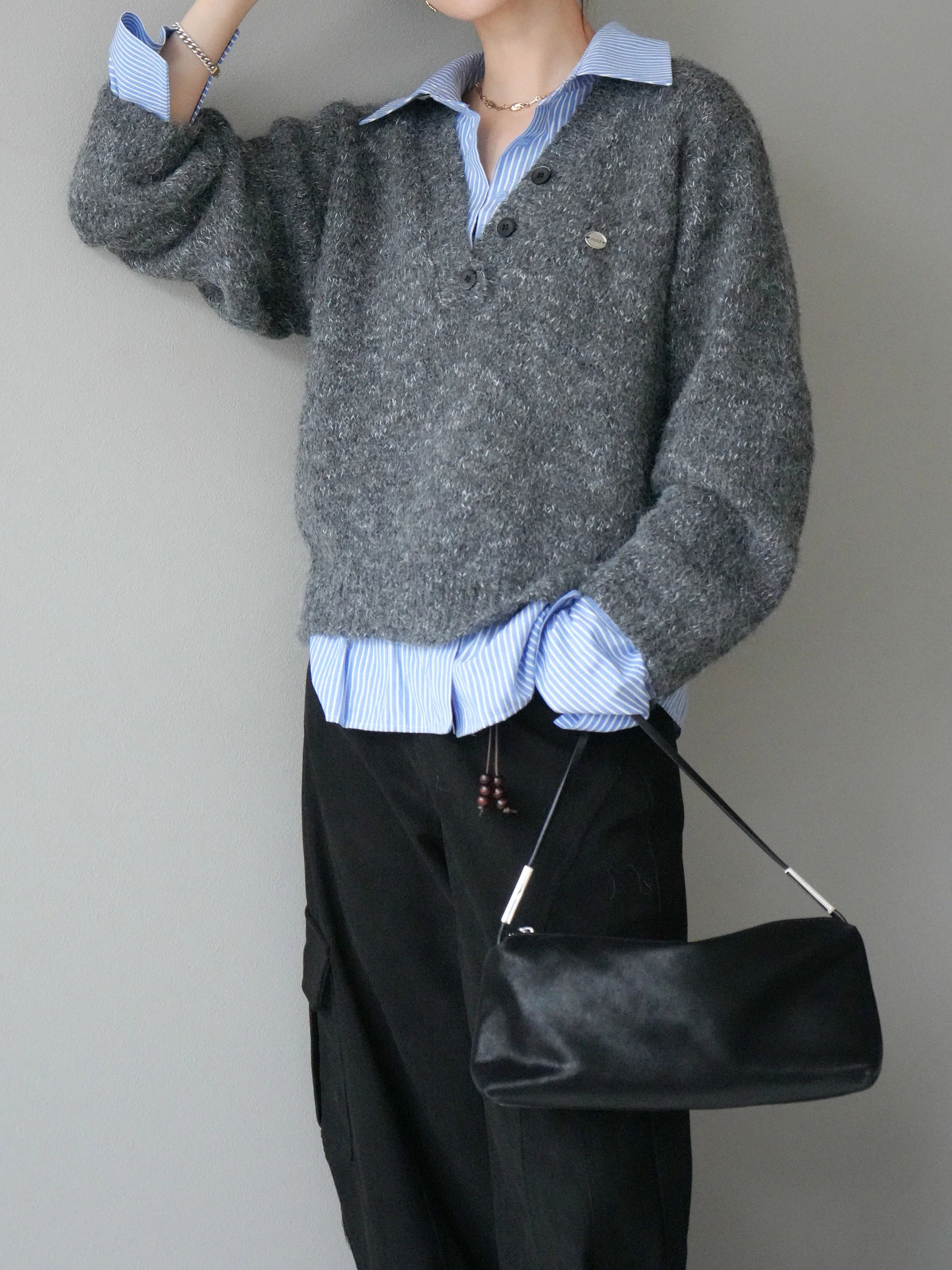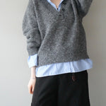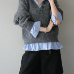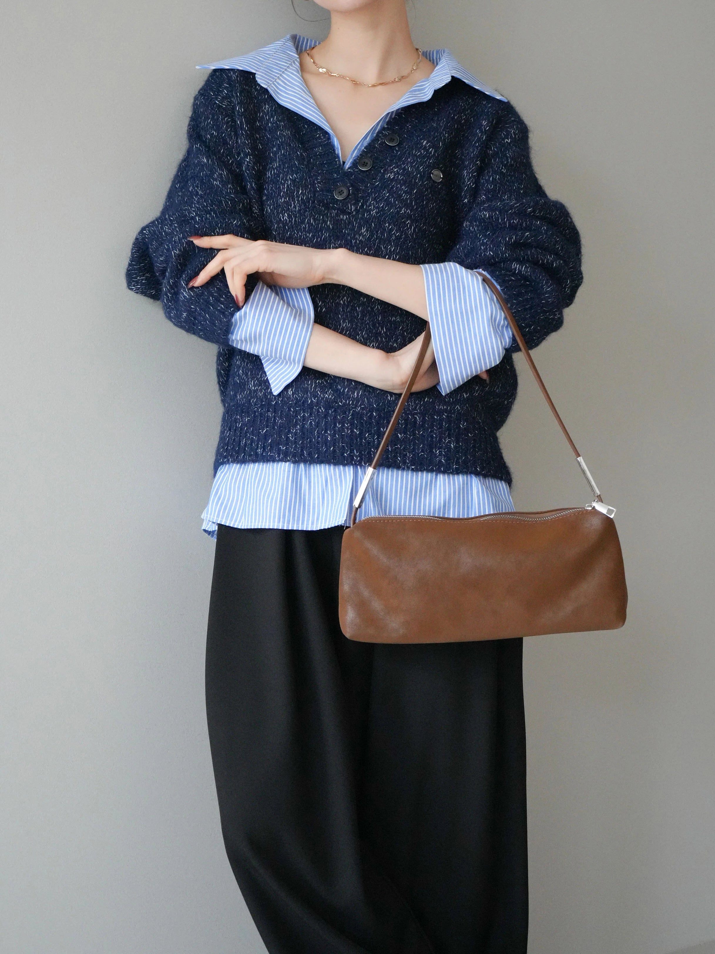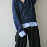 ストライプシャツドッキングMIXヤーンニットプルオーバー 2色入