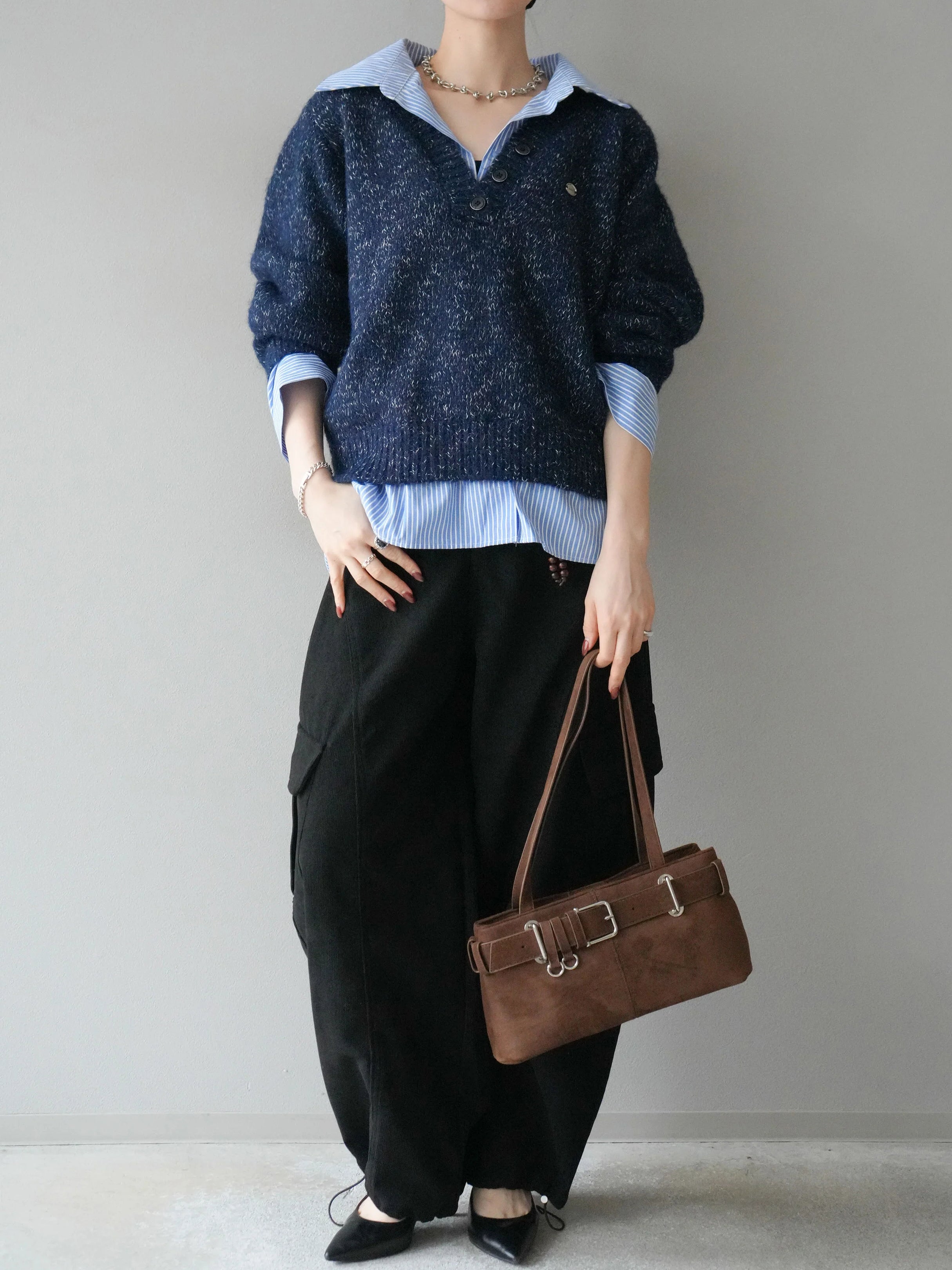 表情豊かなミックスヤーン素材がシーズンムードを高め、着るだけでこなれた印象に仕上がります。