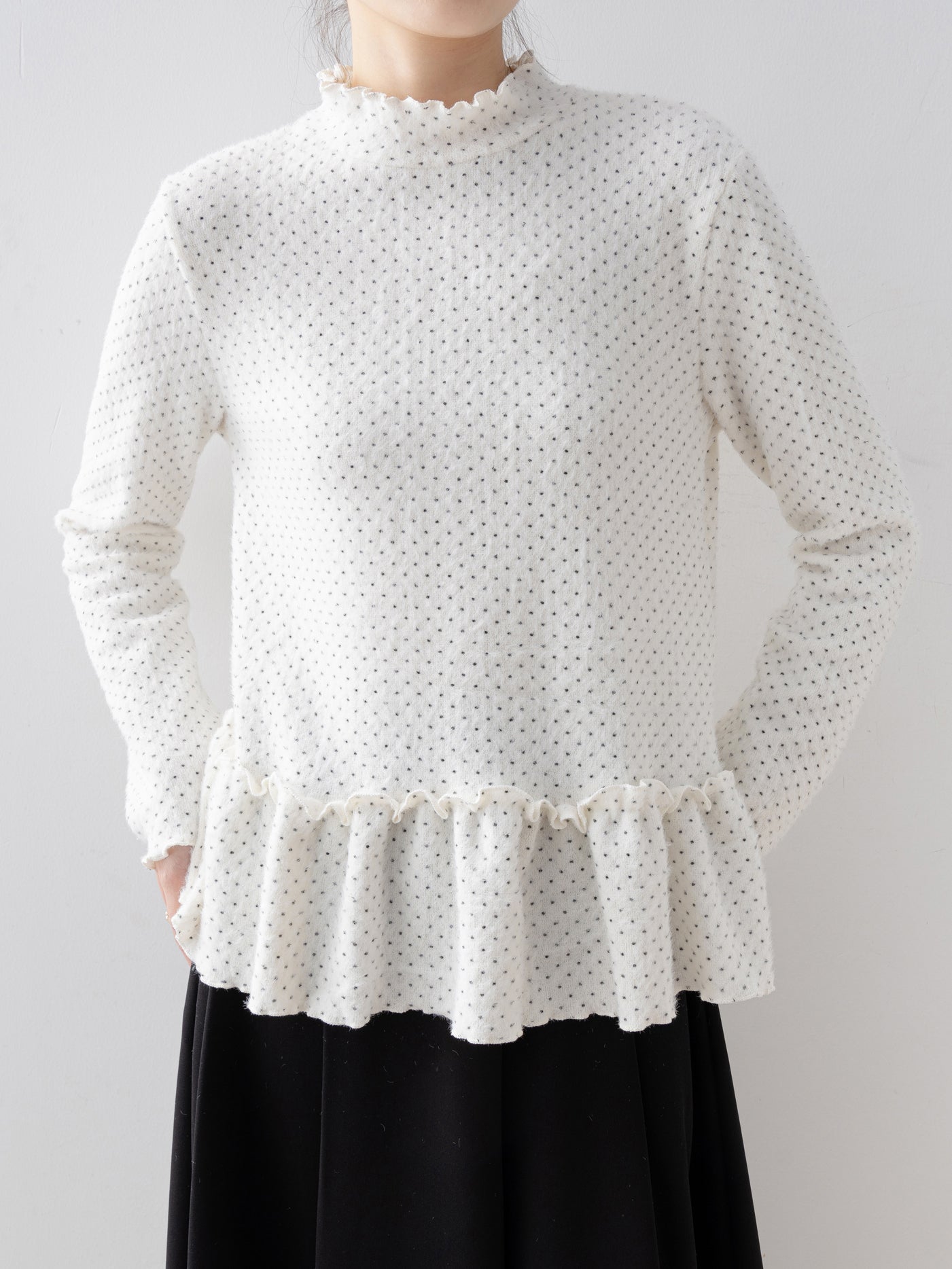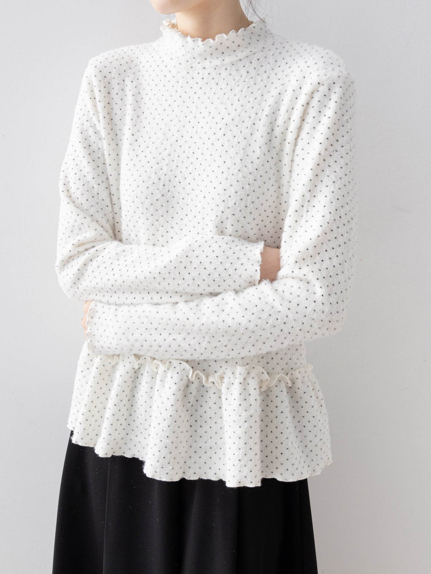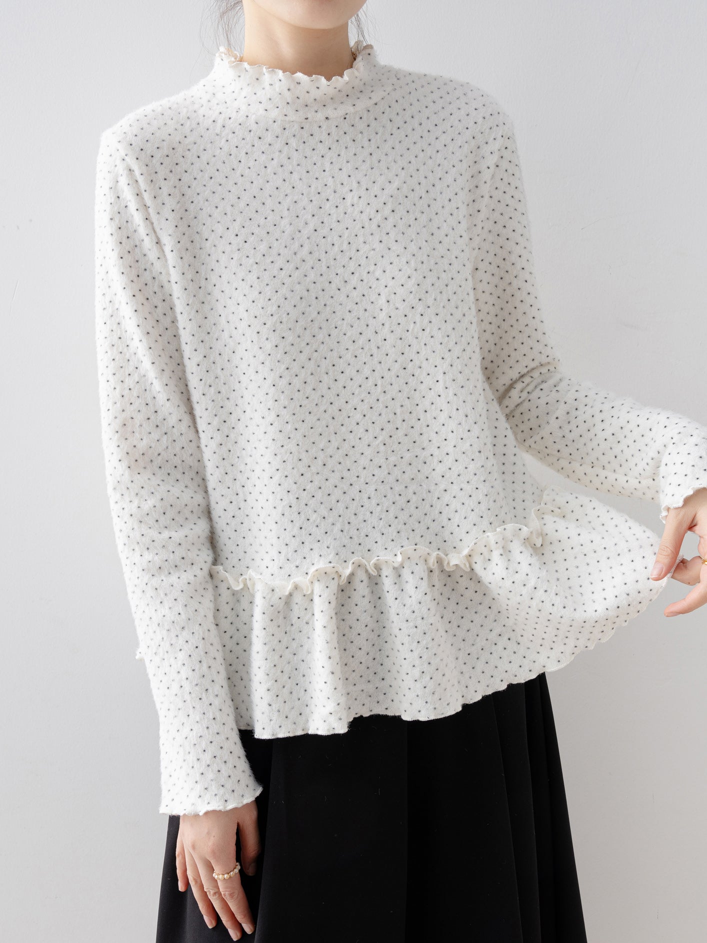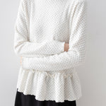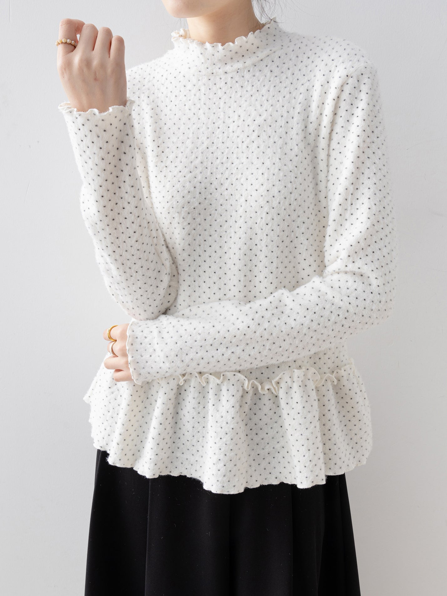 キレイめに着こなせる!上品仕上げのドットペプラムカットソー。