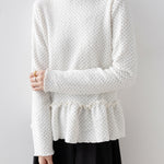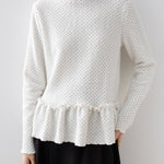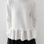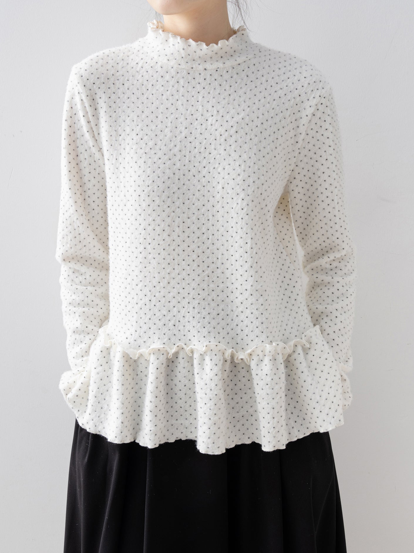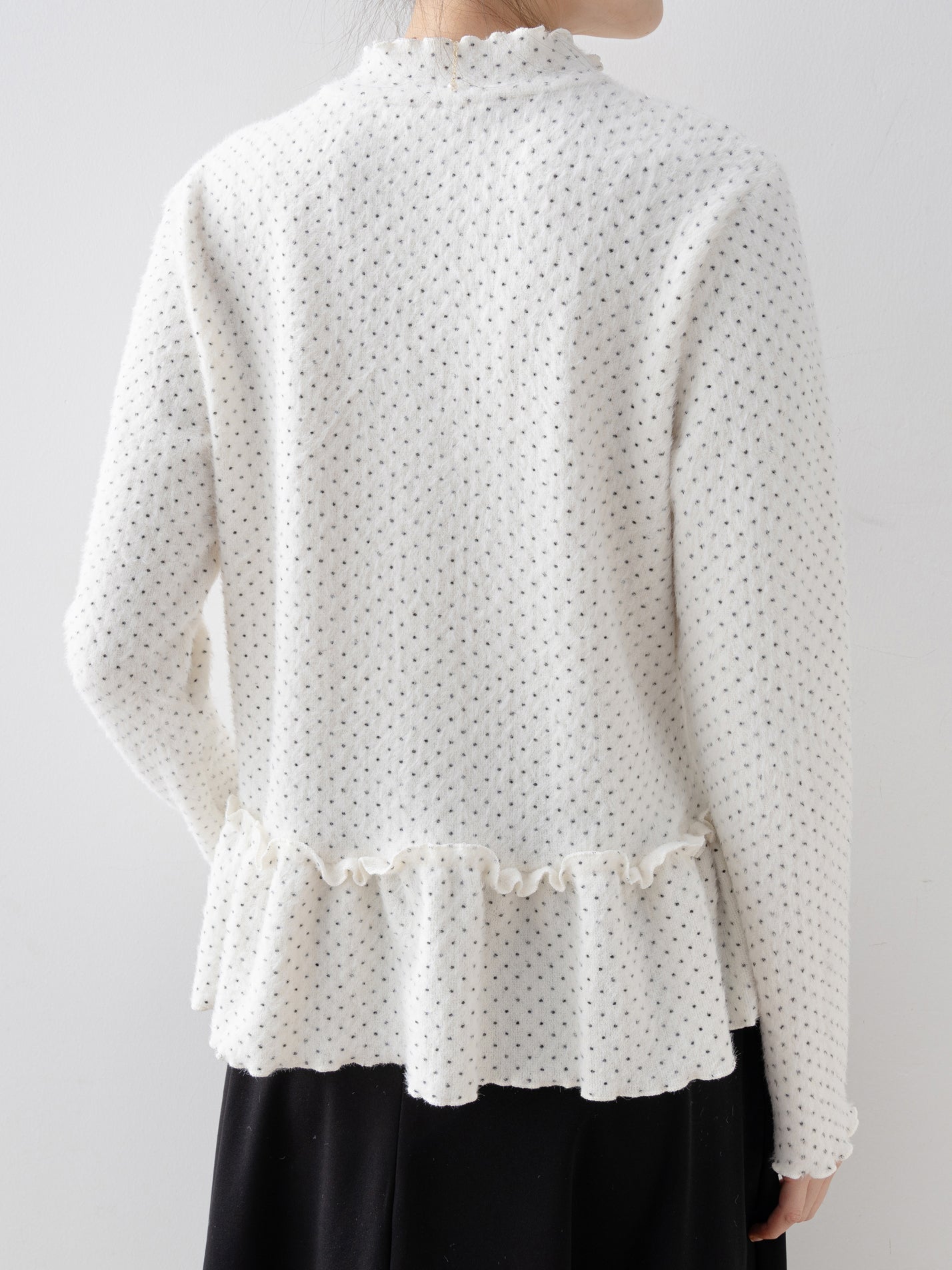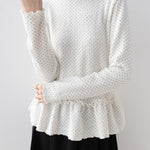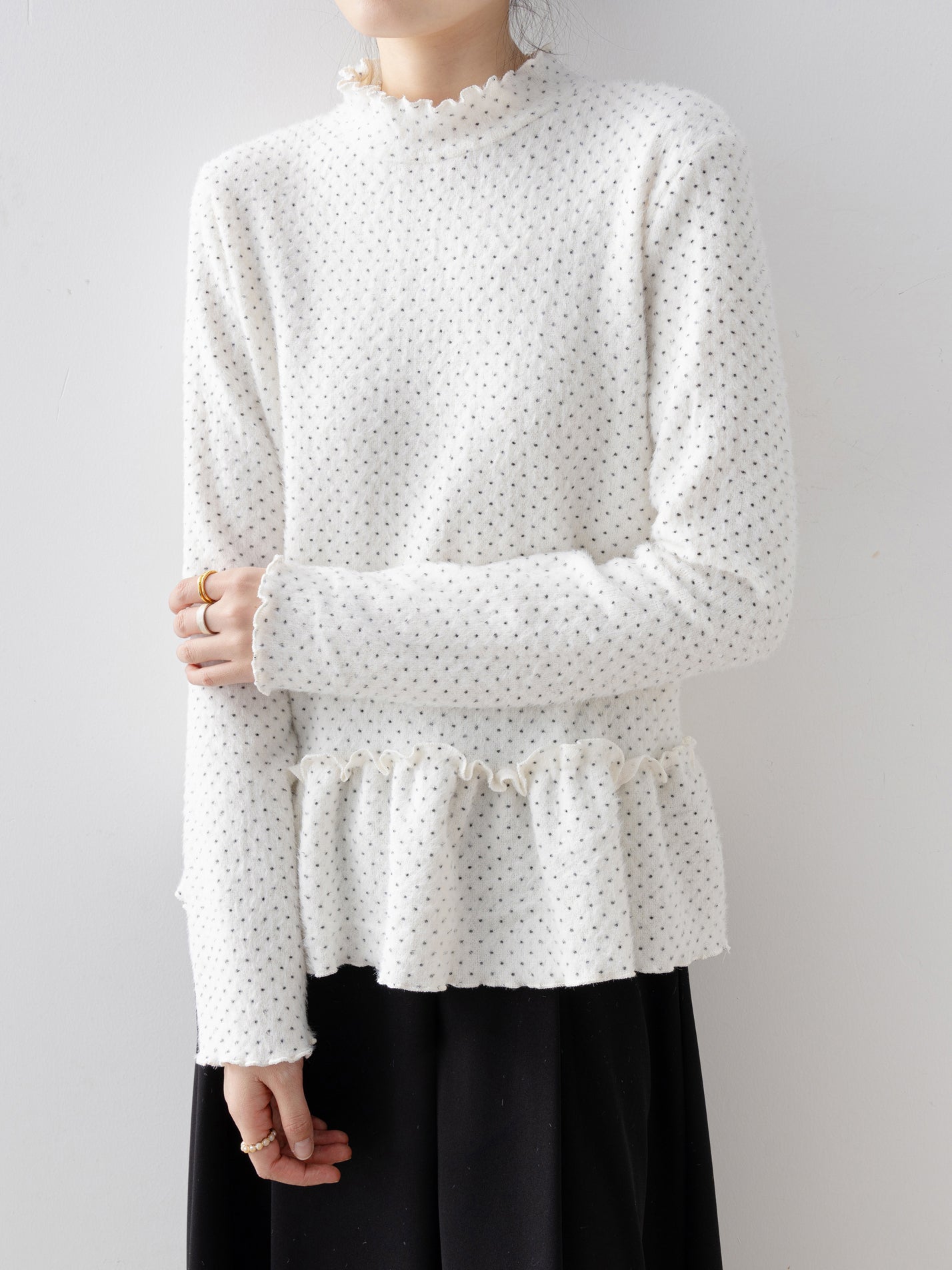 キレイめに着こなせる!上品仕上げのドットペプラムカットソー。