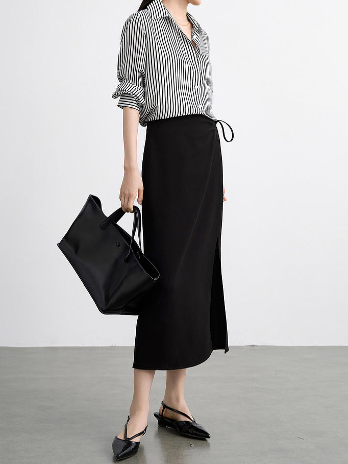 すっきりとしたシルエットがスタイル良く見えるロングスカート。
