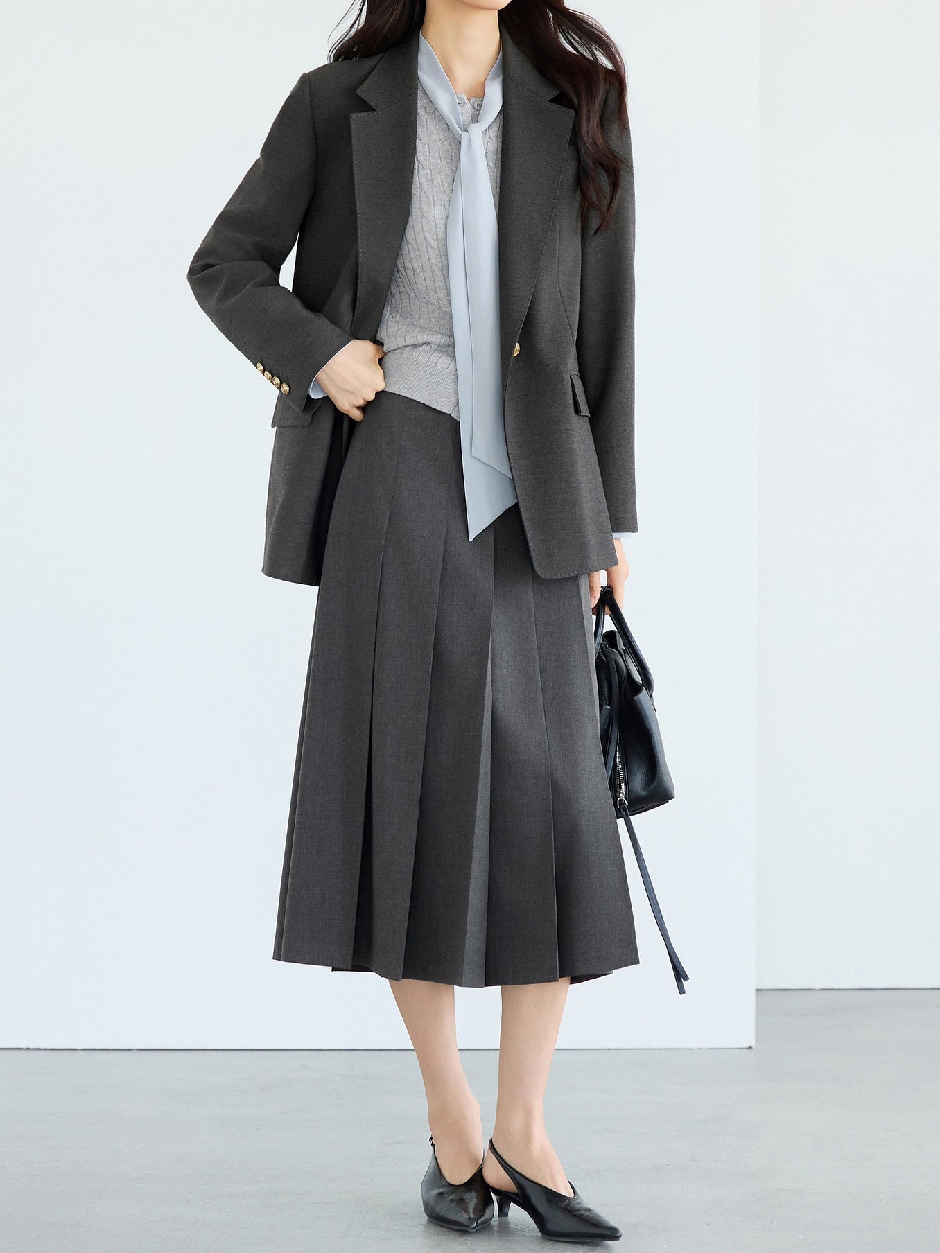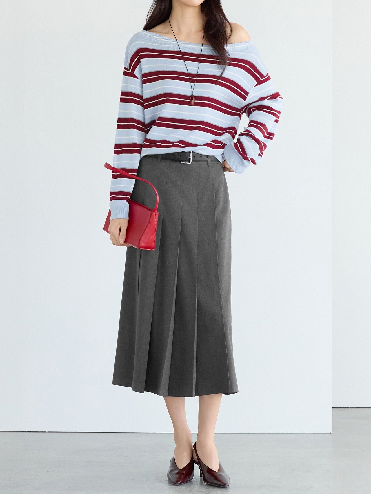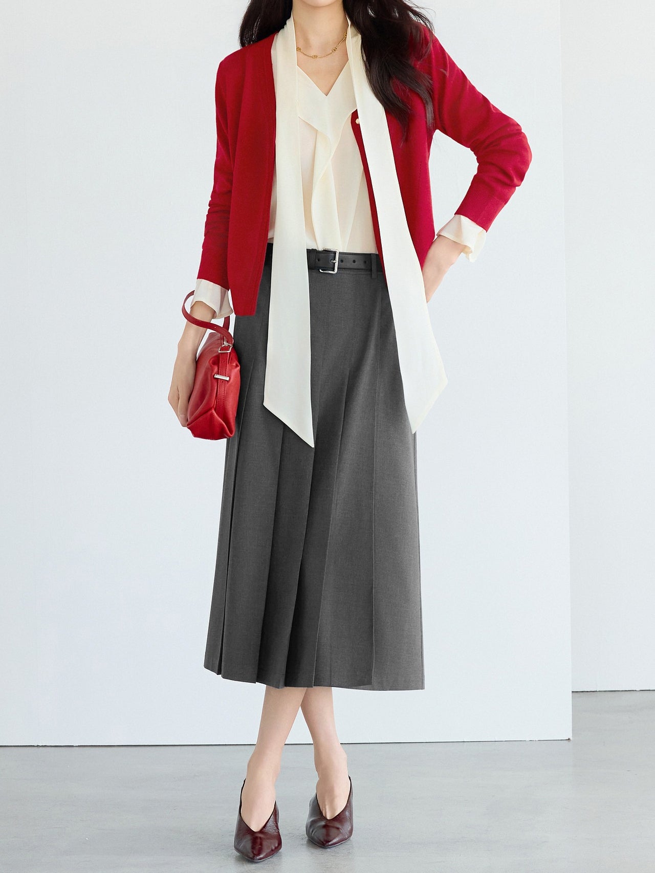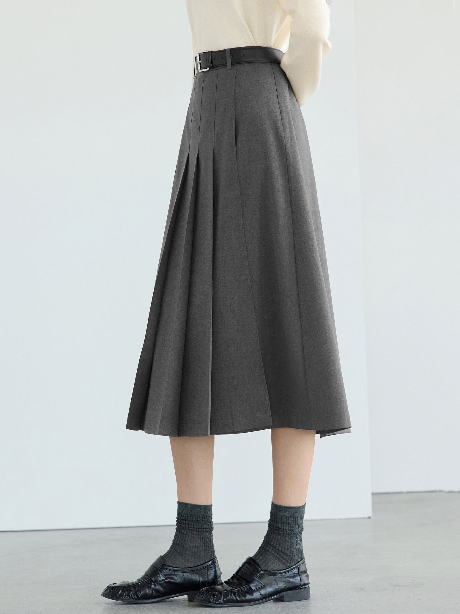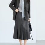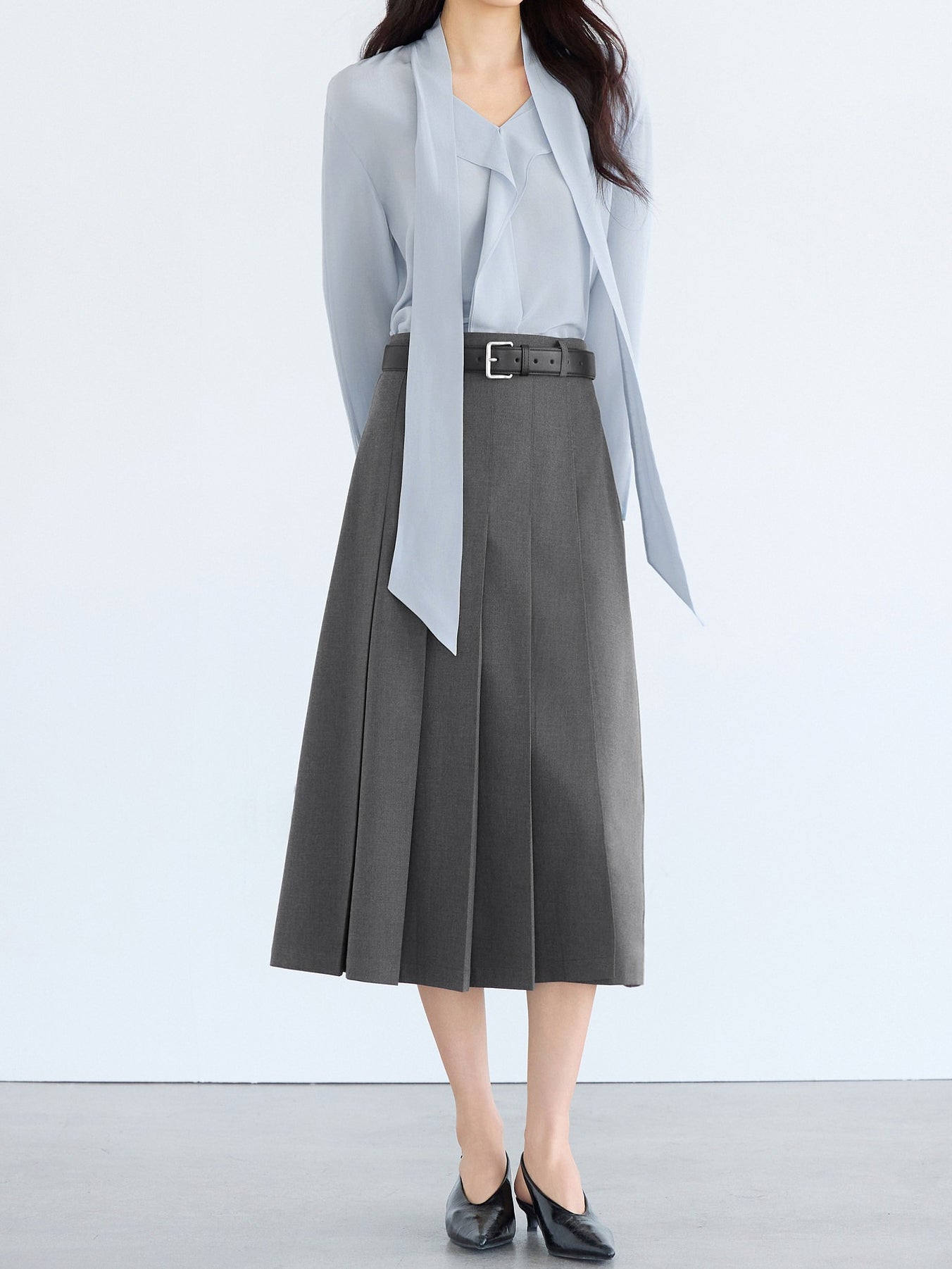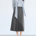 ☆甘さを抑えたワイドプリーツが可愛くなりすぎない印象に。