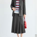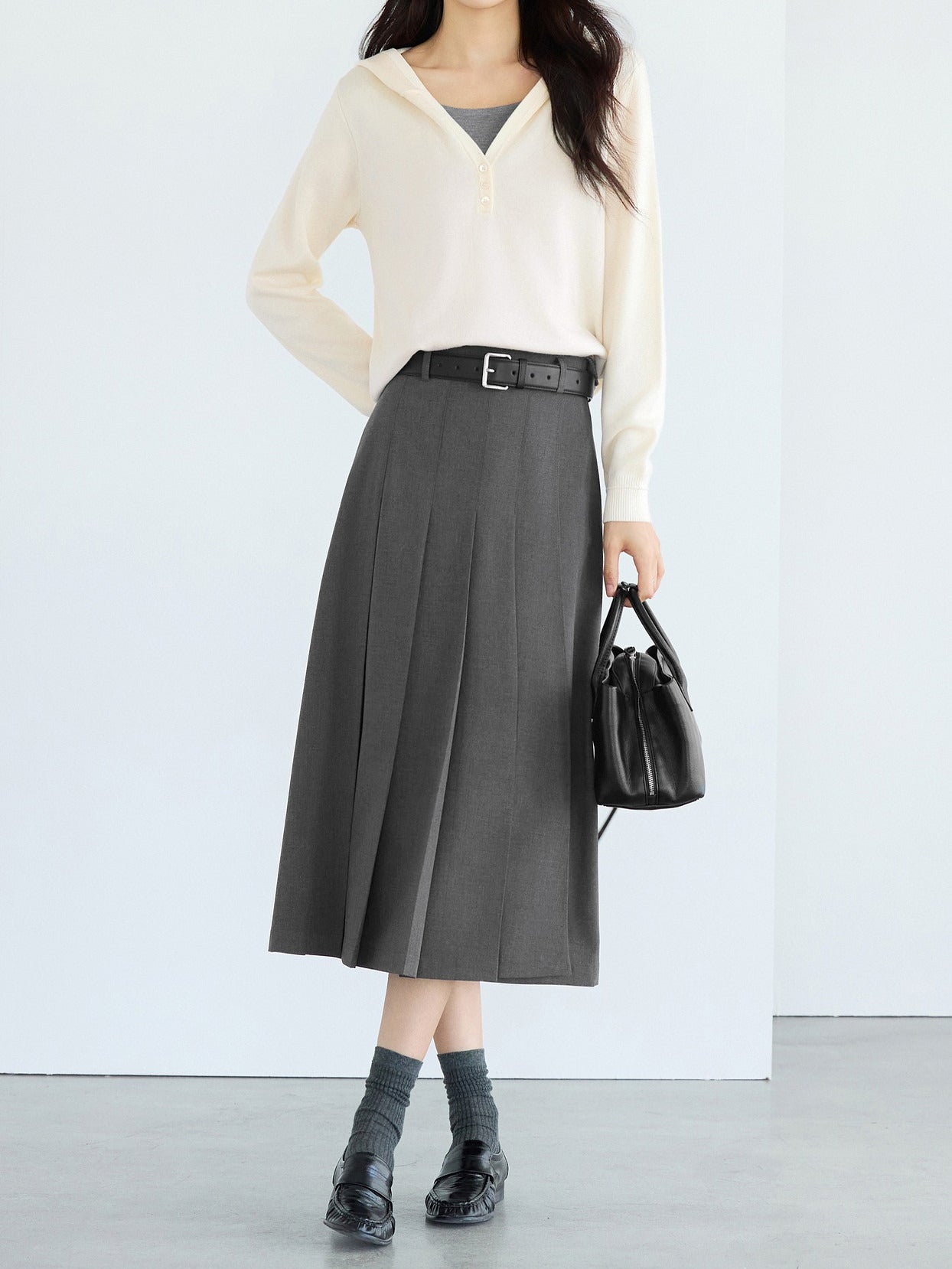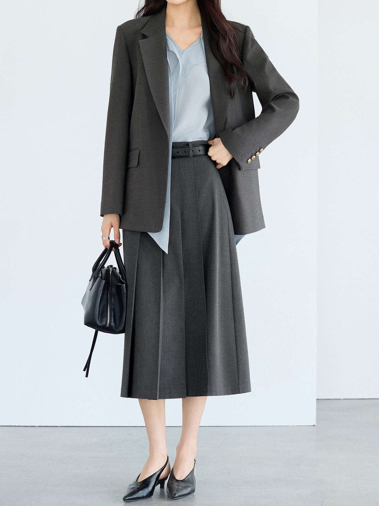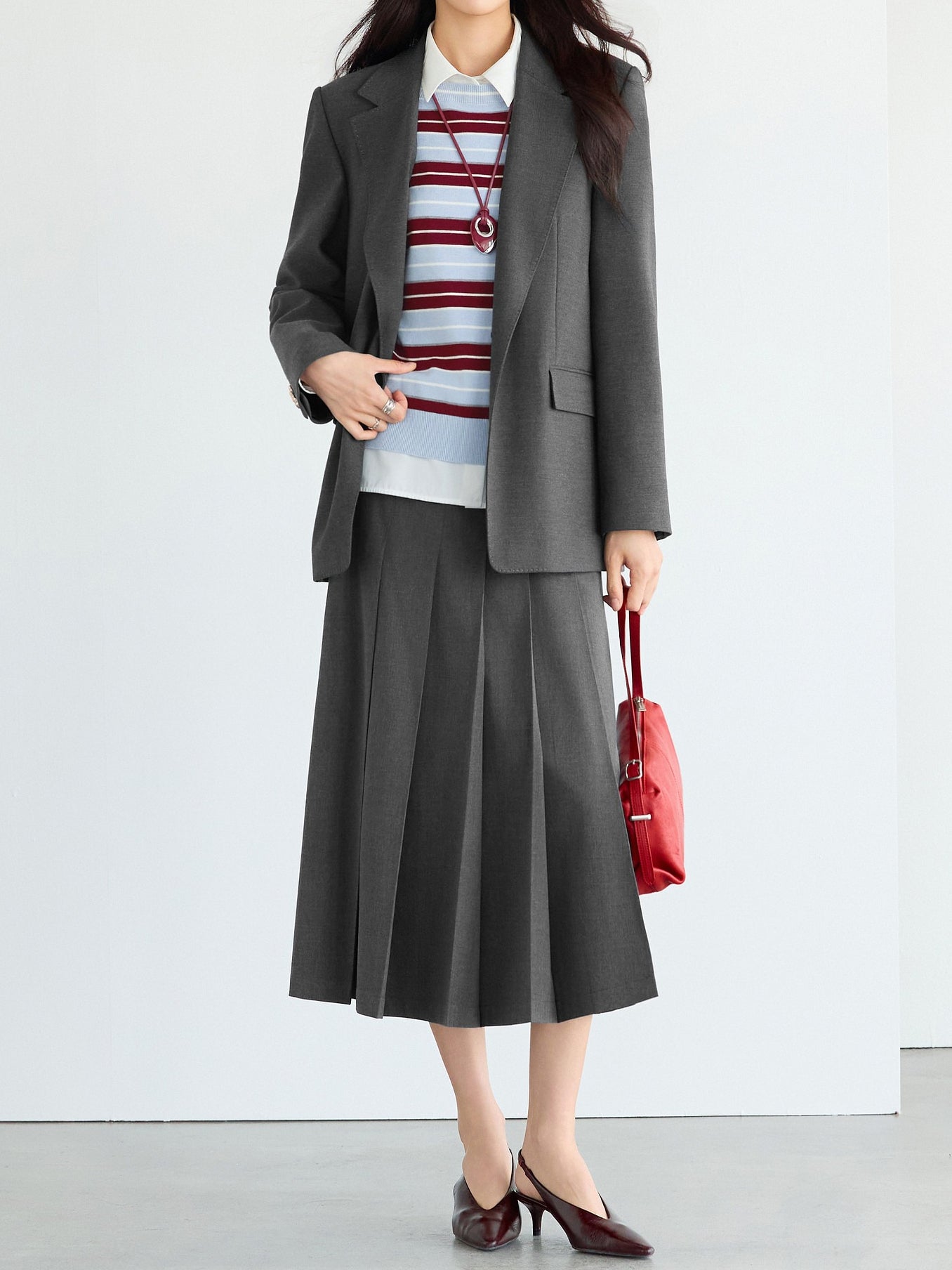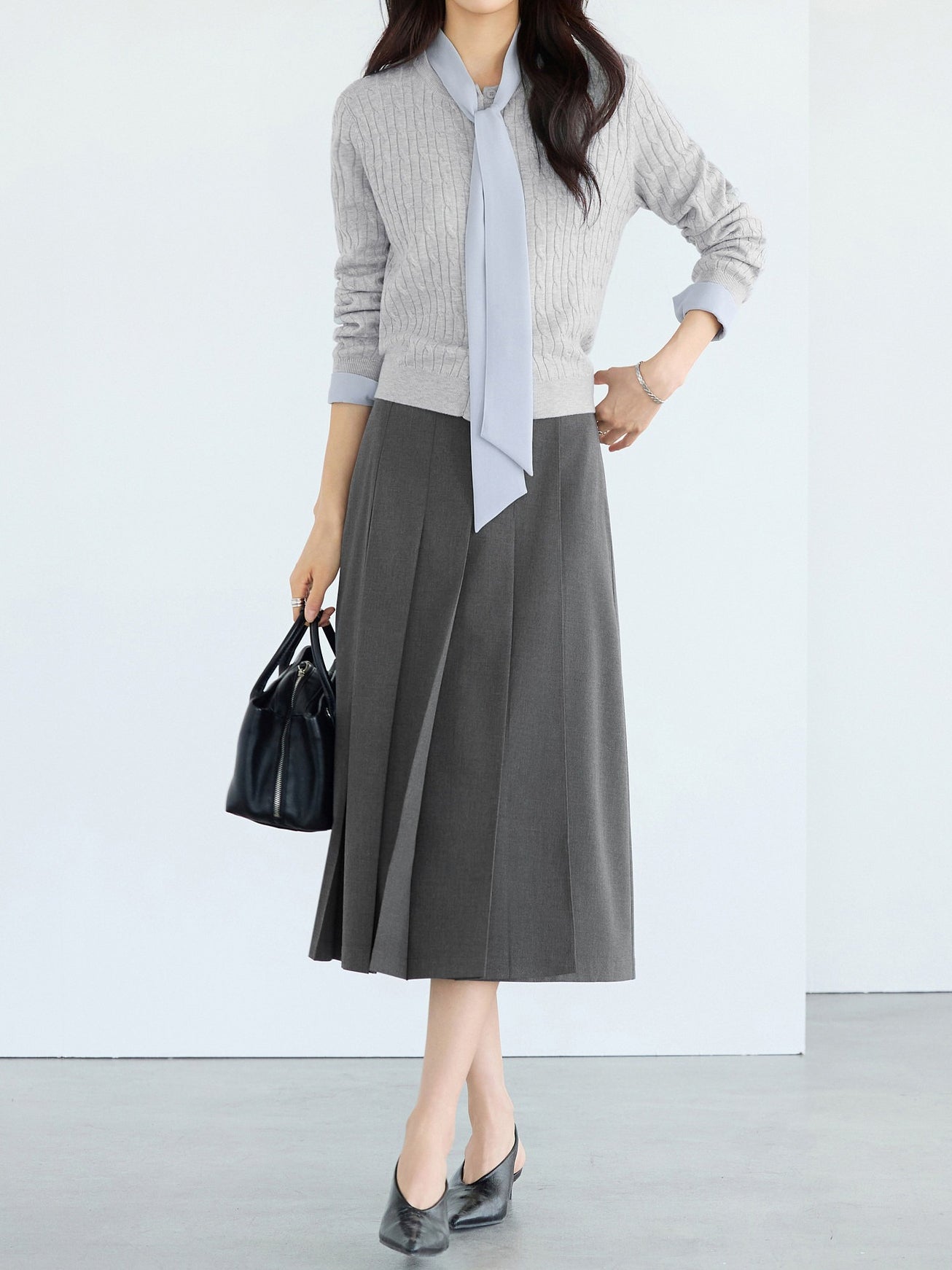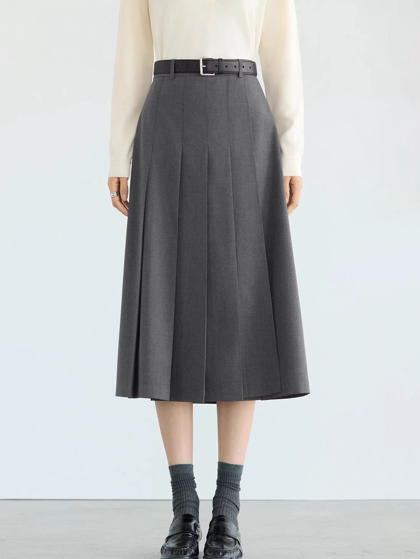 ☆甘さを抑えたワイドプリーツが可愛くなりすぎない印象に。