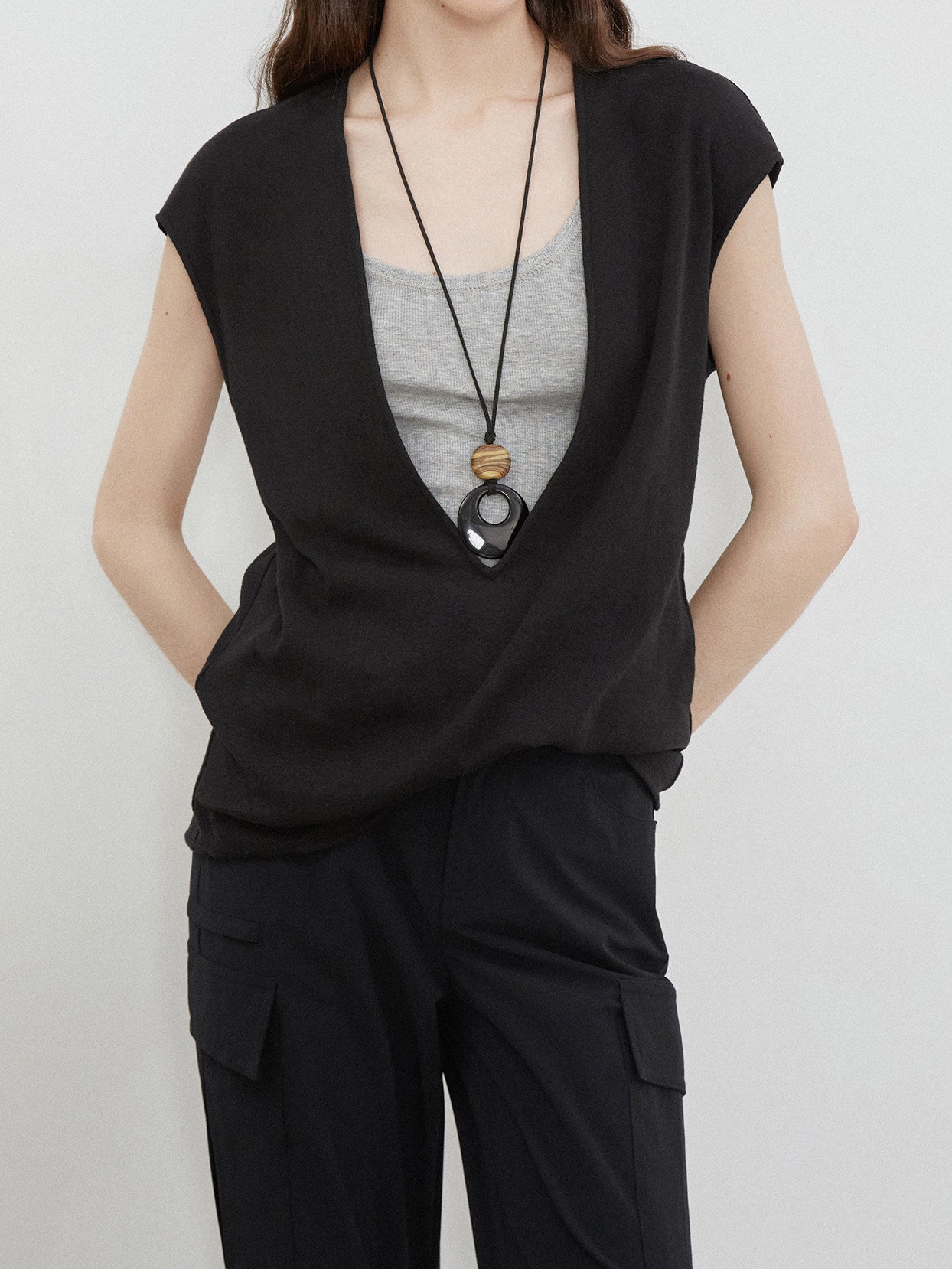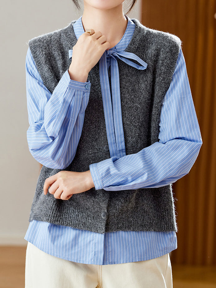 ディープVネックフレンチ袖ニットベスト 2色入