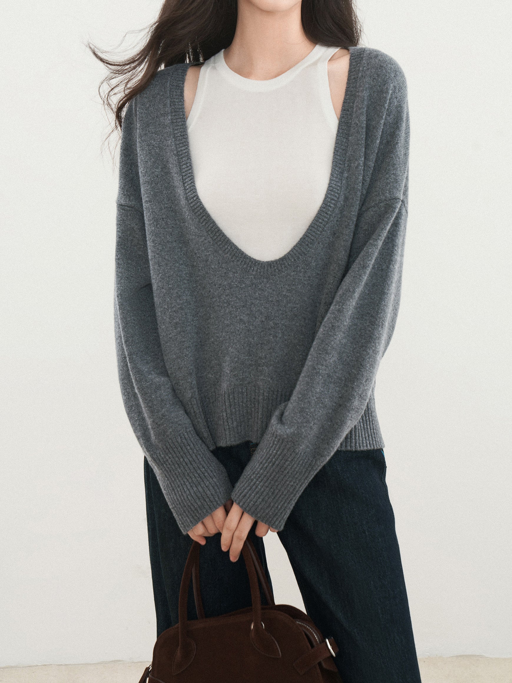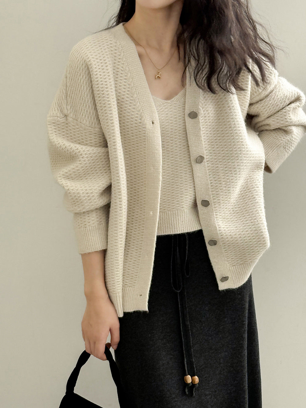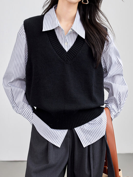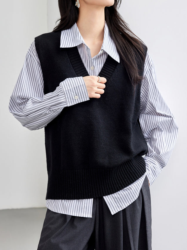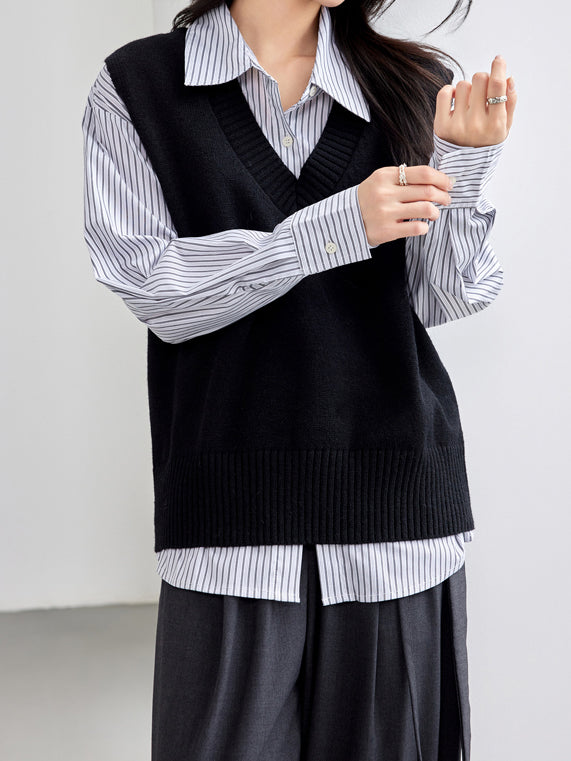 Metal Button Knit Vest + Candy Sleeve Shirt (3 Colors Available)