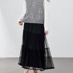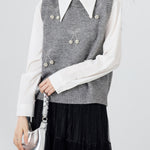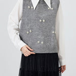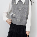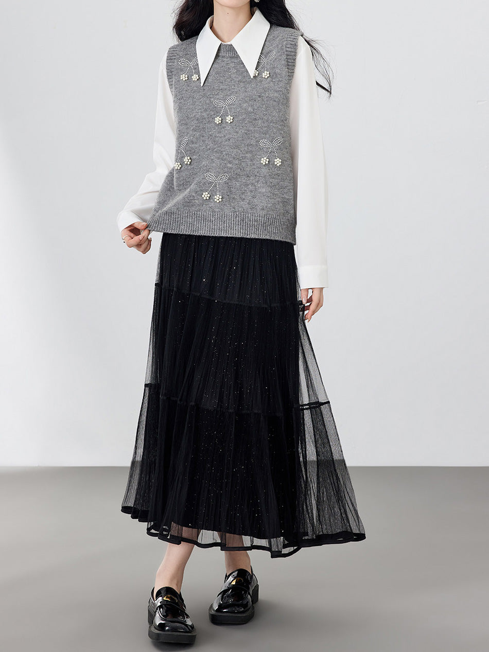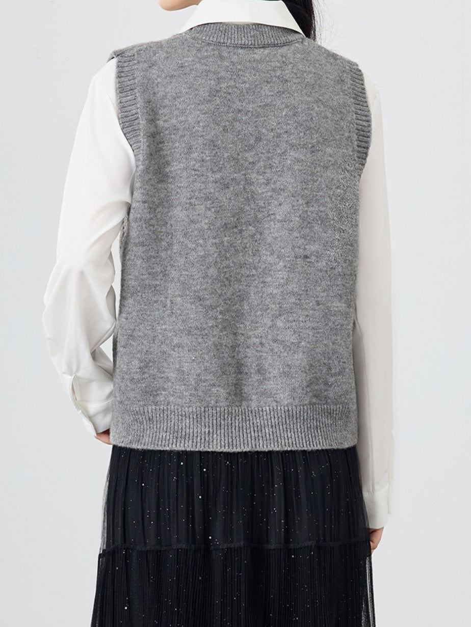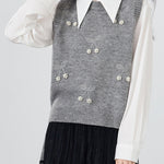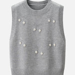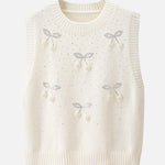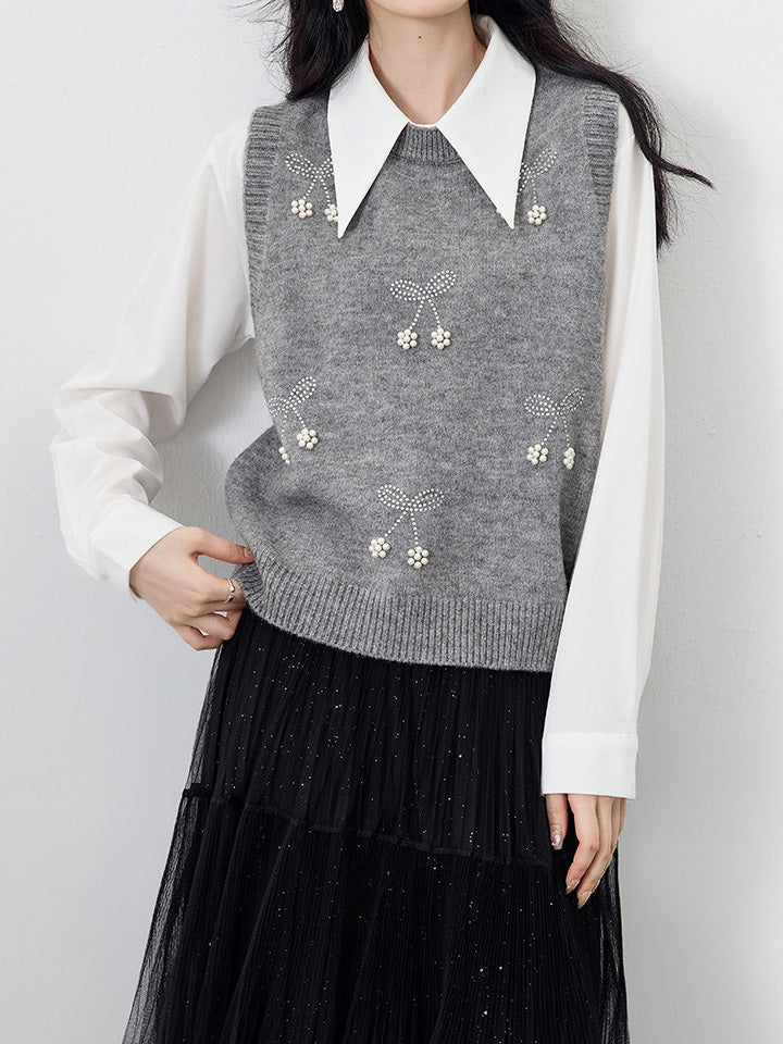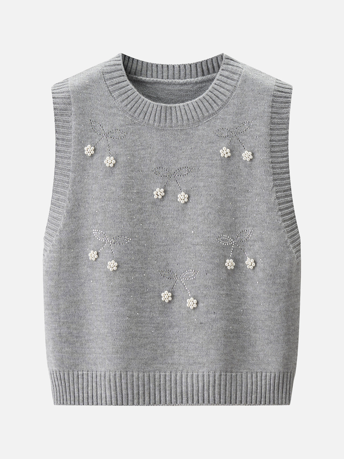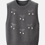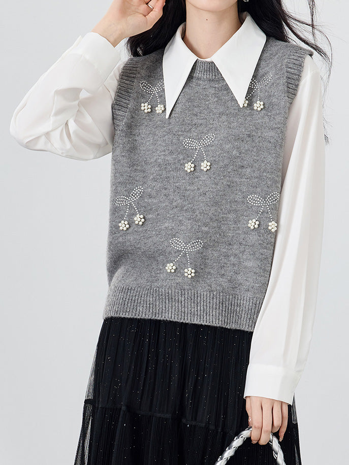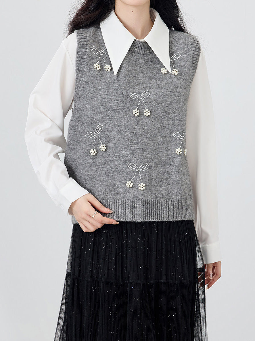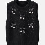 This knit vest is dotted with cute cherry bead designs that will lift your spirits every time you look at it .