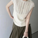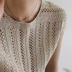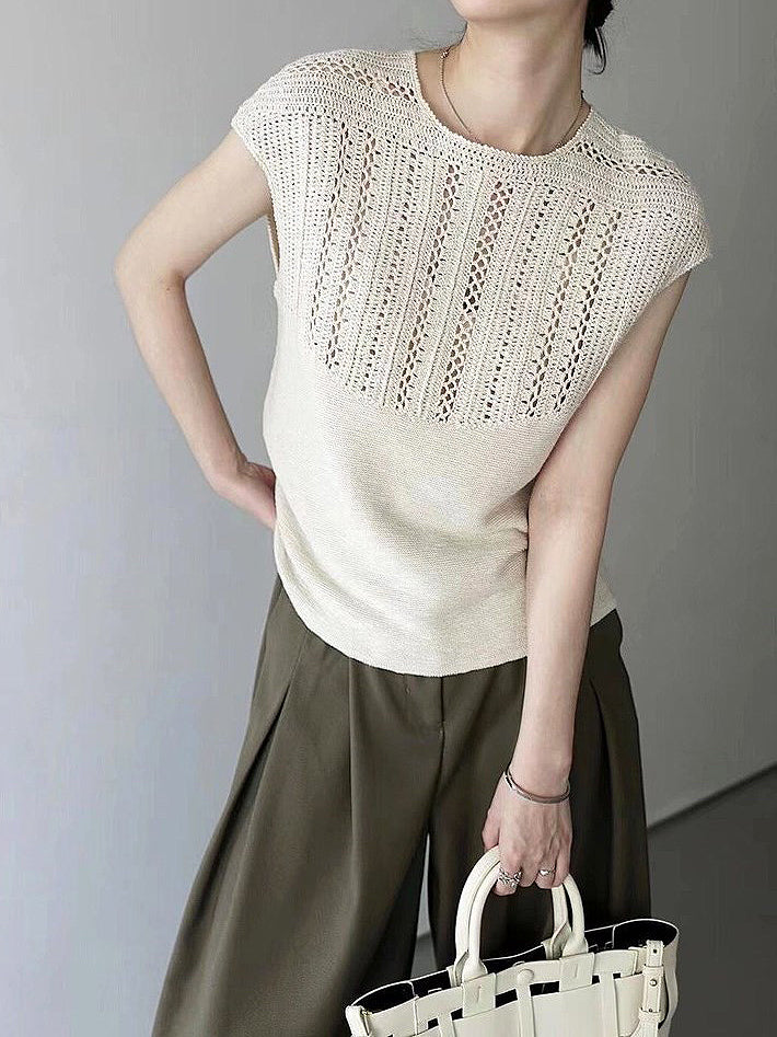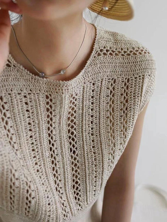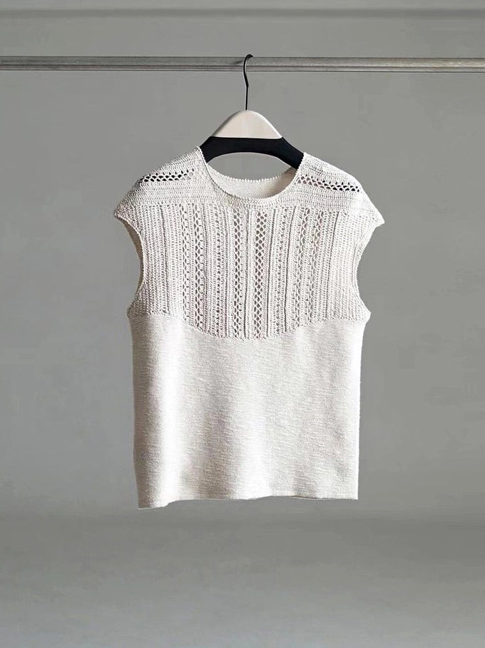This vest features a simple, sophisticated pattern and striking openwork knit.