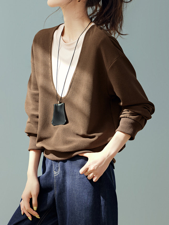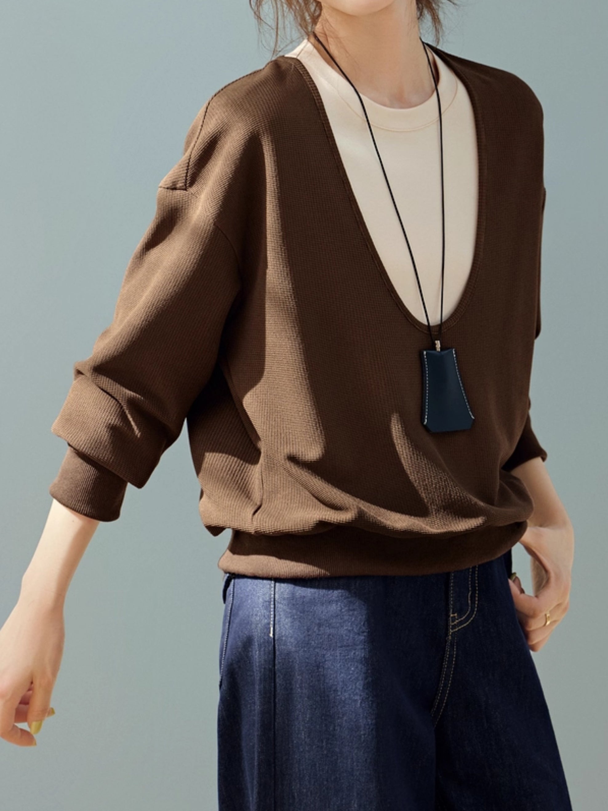 ☆ The deep U- neck accentuates the vertical lines and enhances your style.