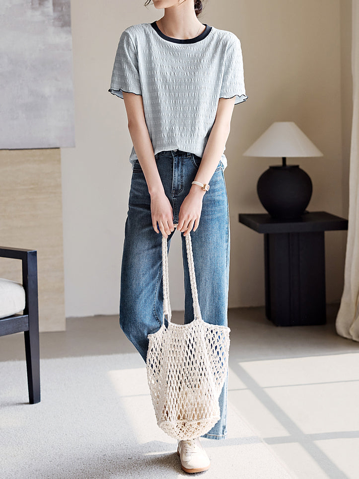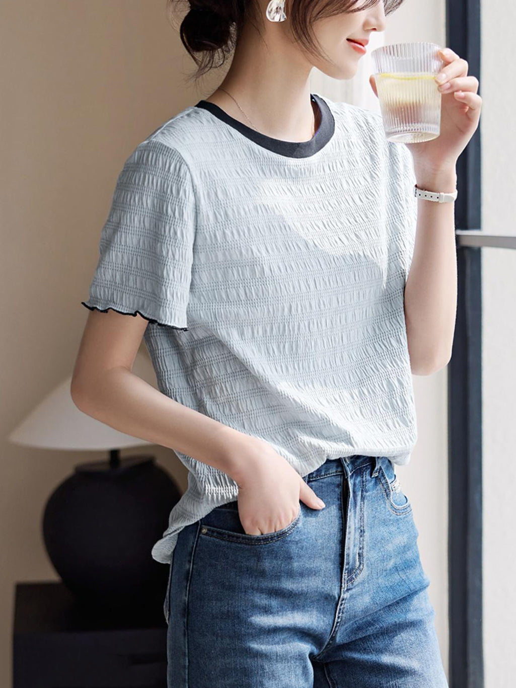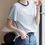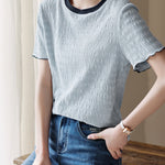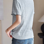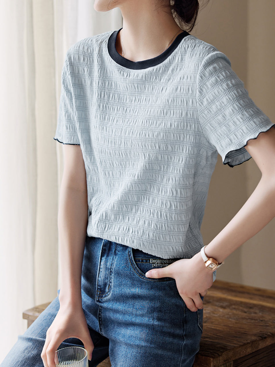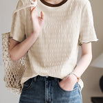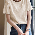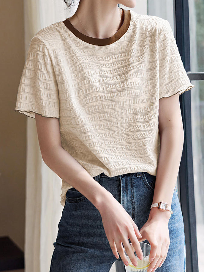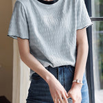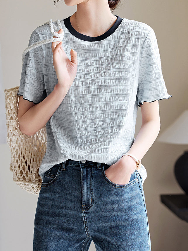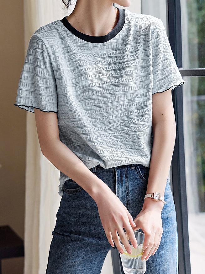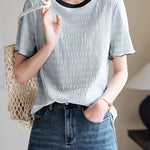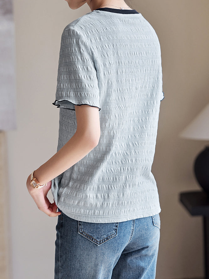 Color-coordinated shirred mellow T-shirt in 2 colors