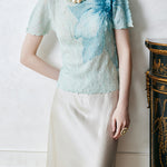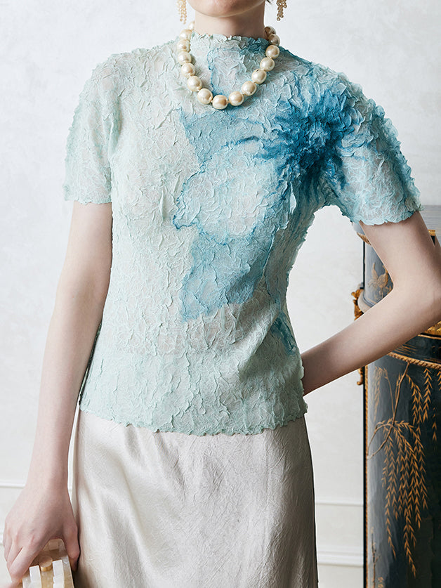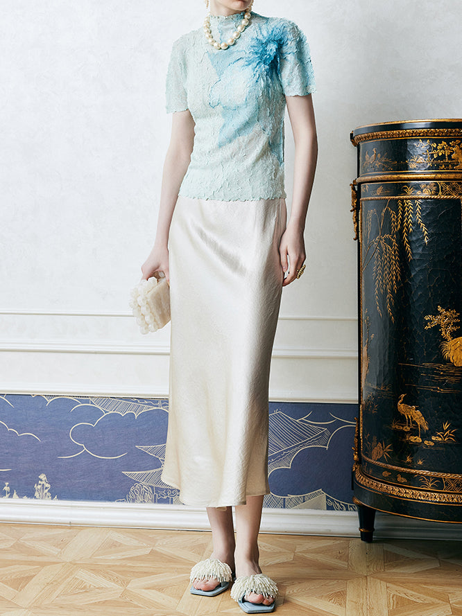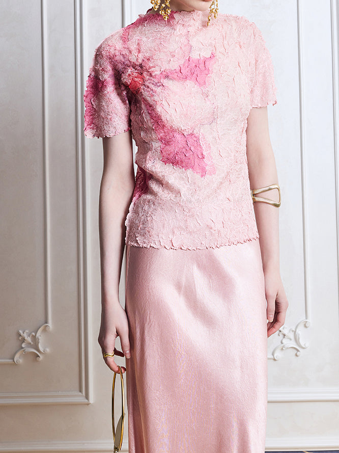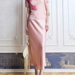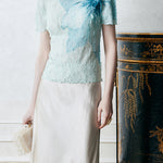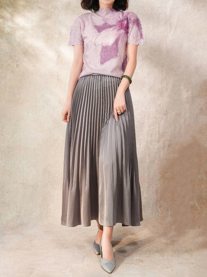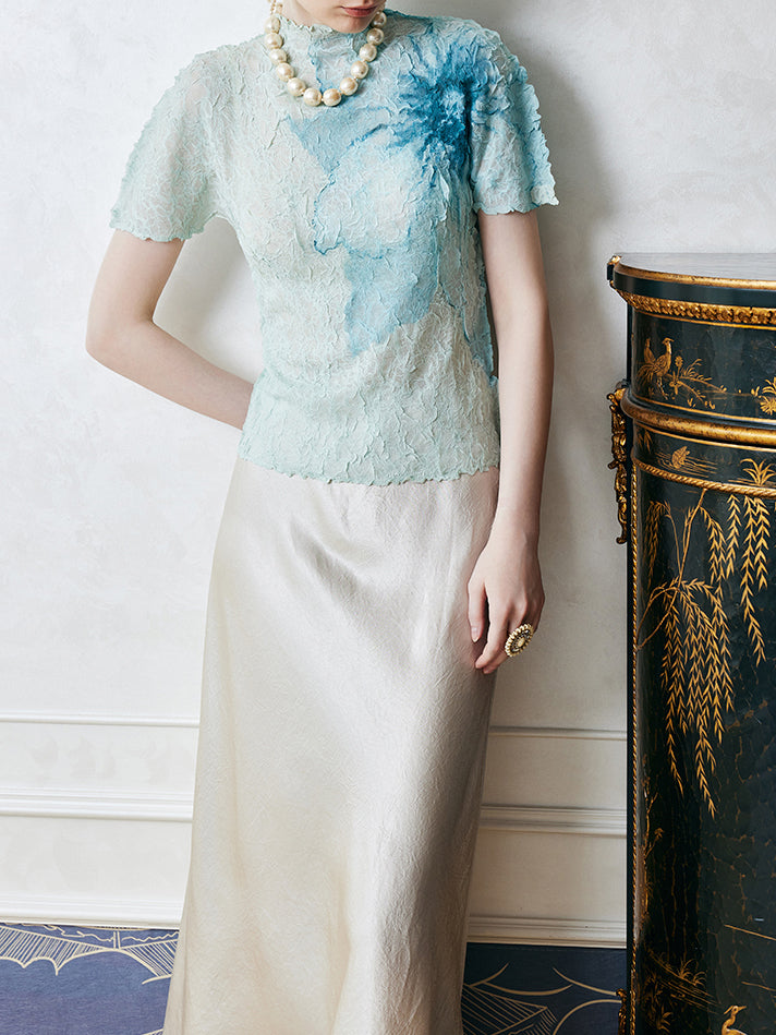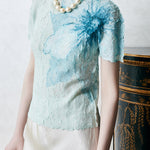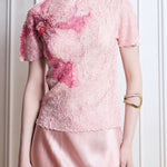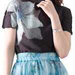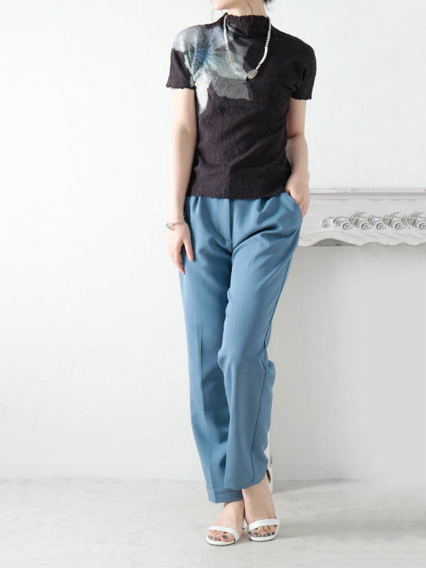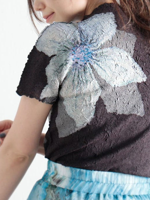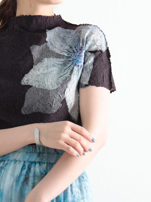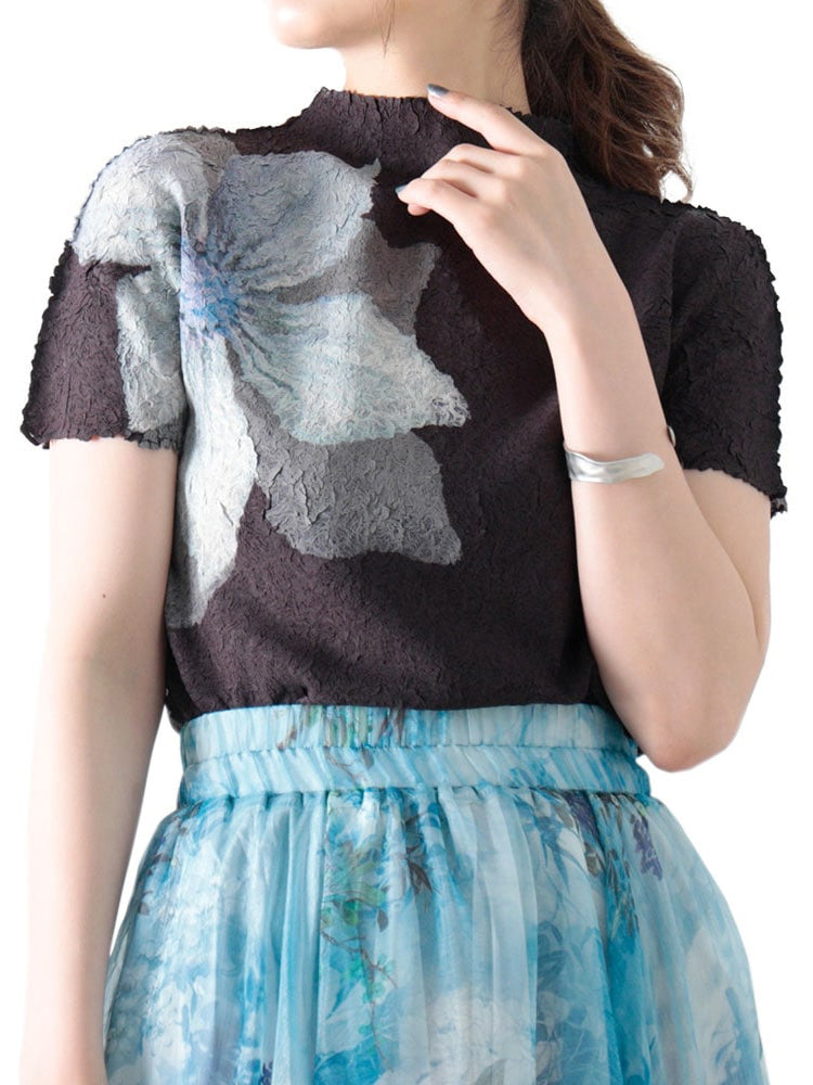 [ An elegant crepe-like top with a single flower blooming on the chest that will captivate you ]