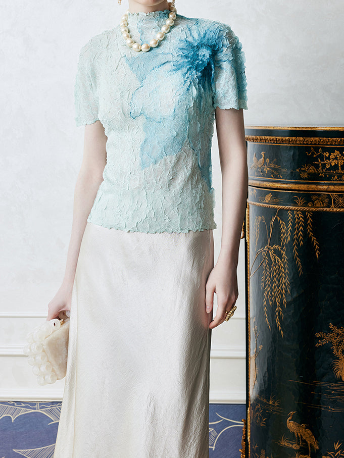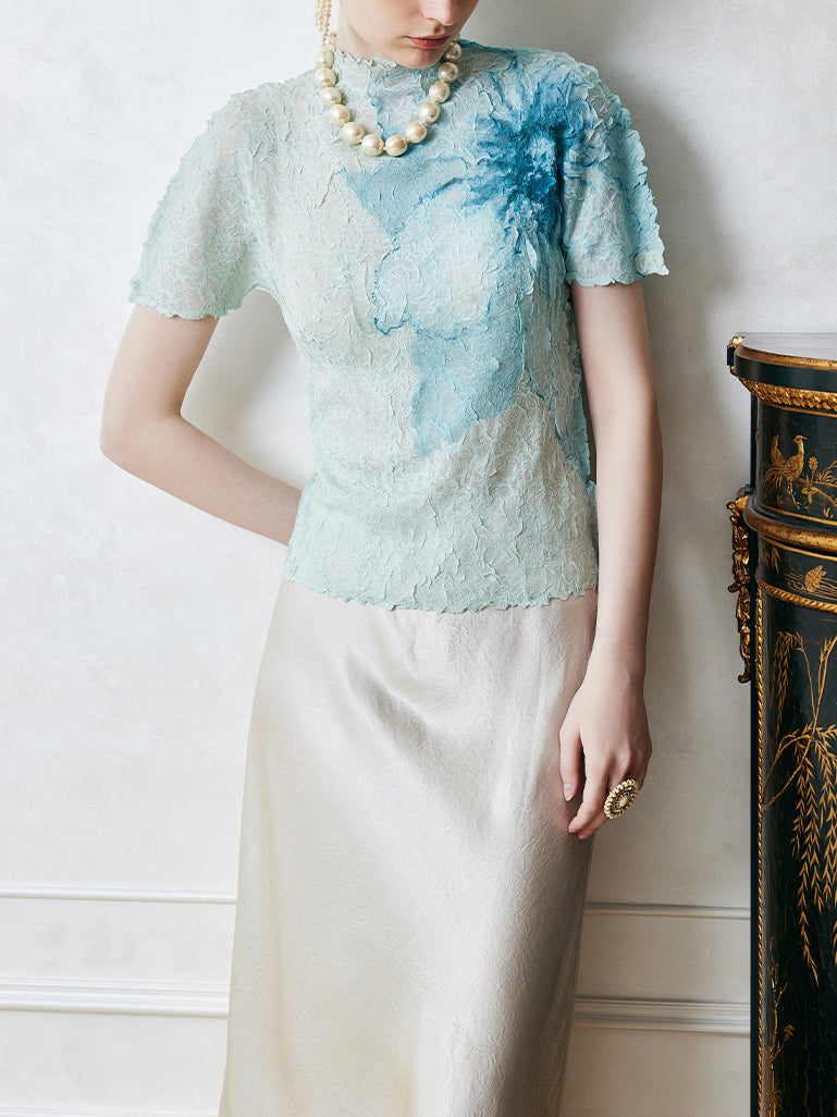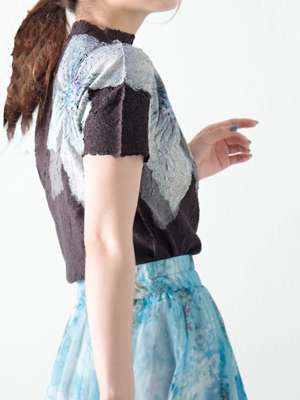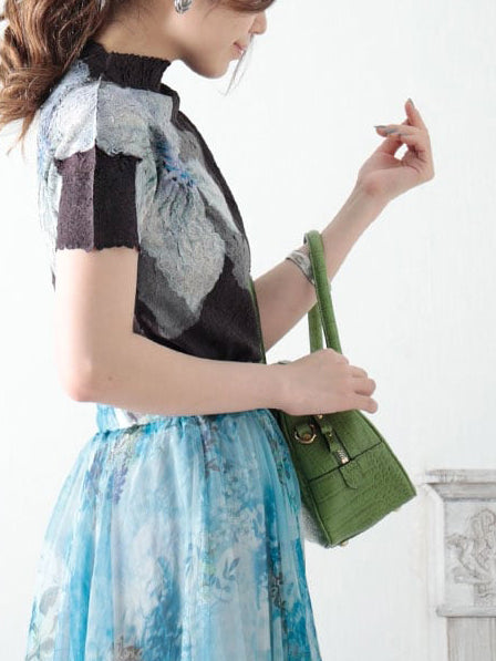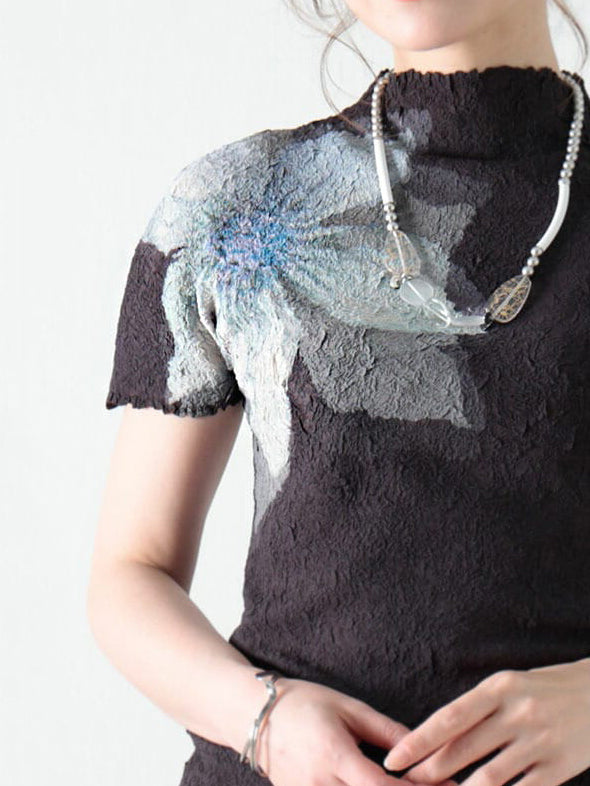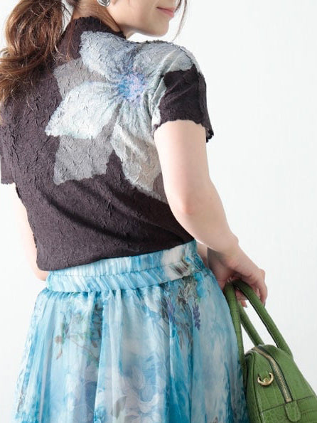 ☆An elegant crepe-like fabric that will captivate you with a single flower blooming on your chest