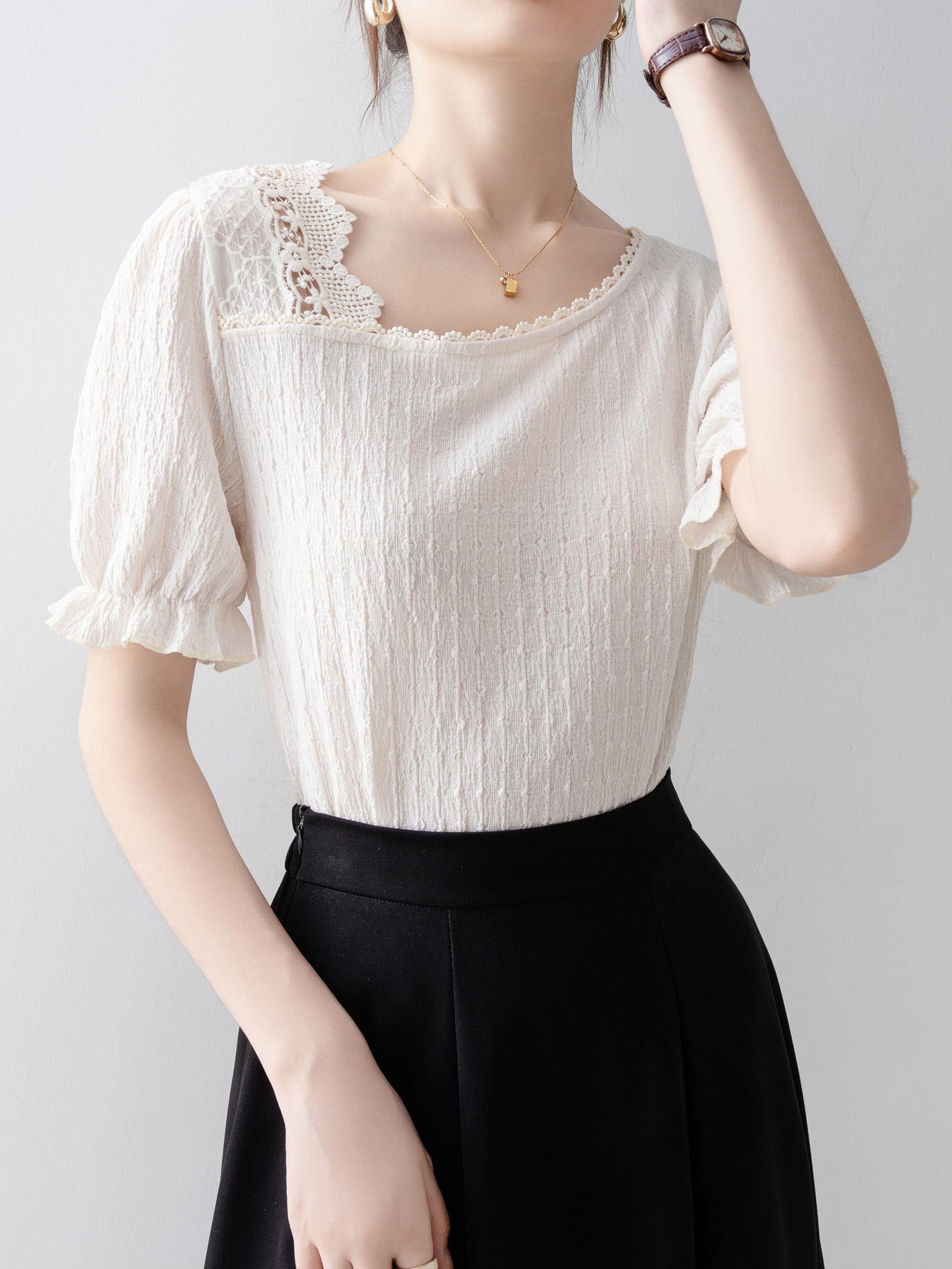 [A candy sleeve T-shirt with a subtle sweetness and a mature cuteness]