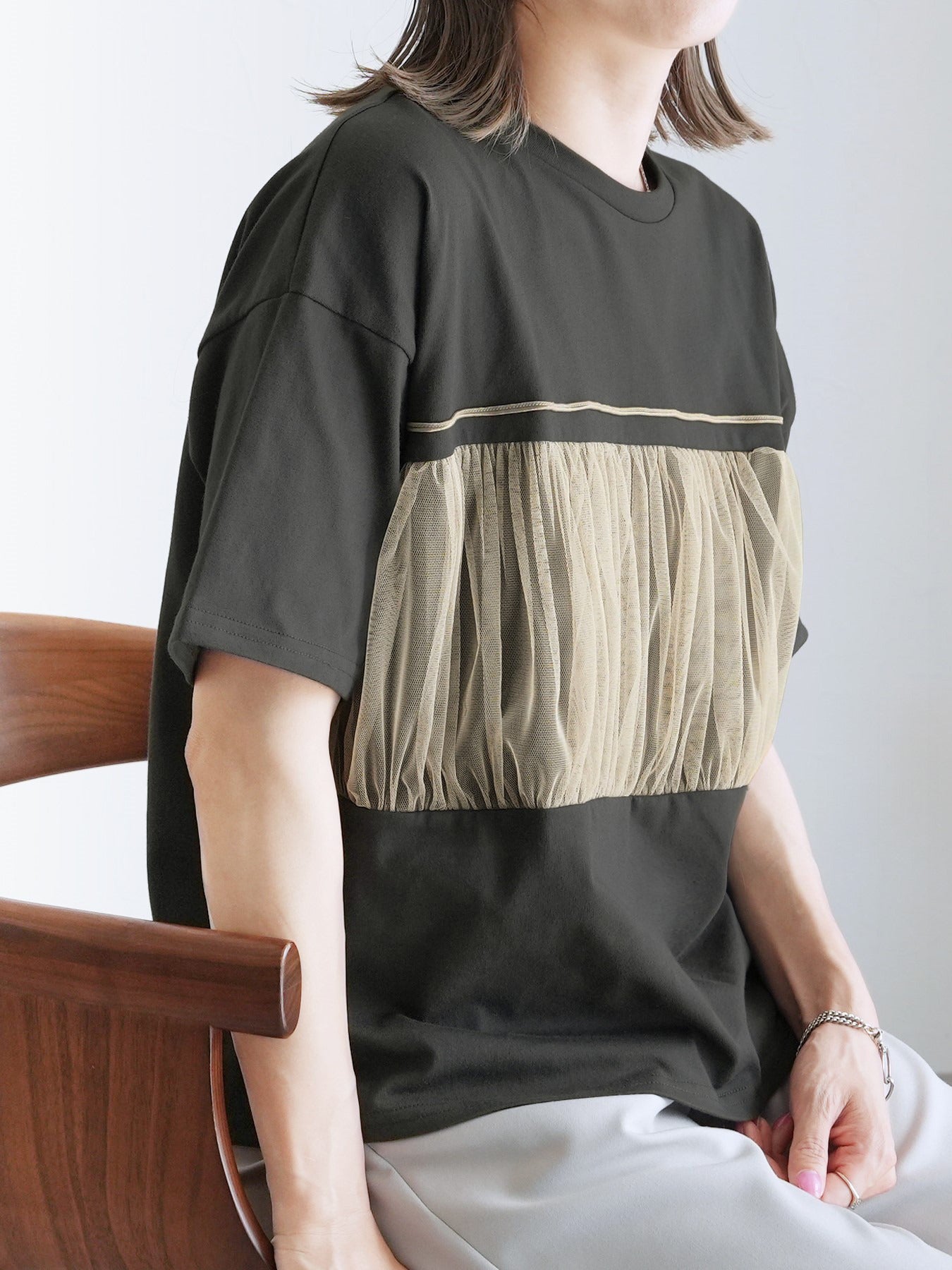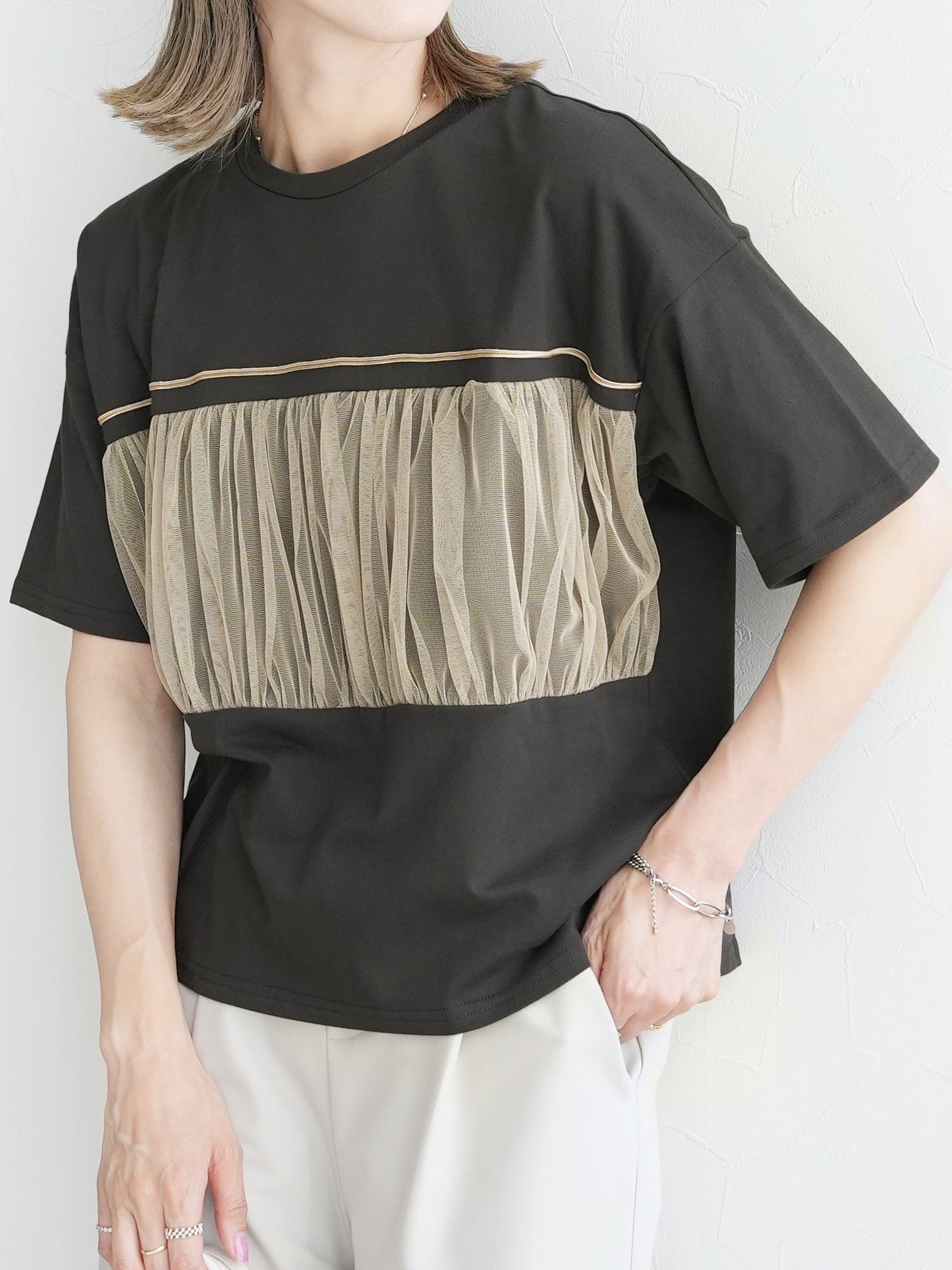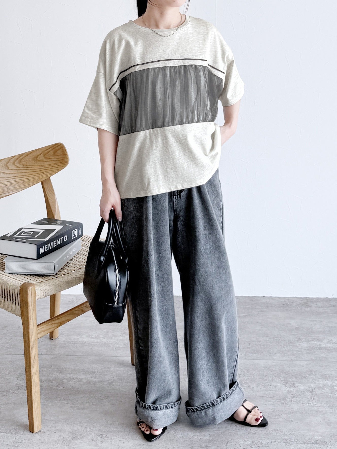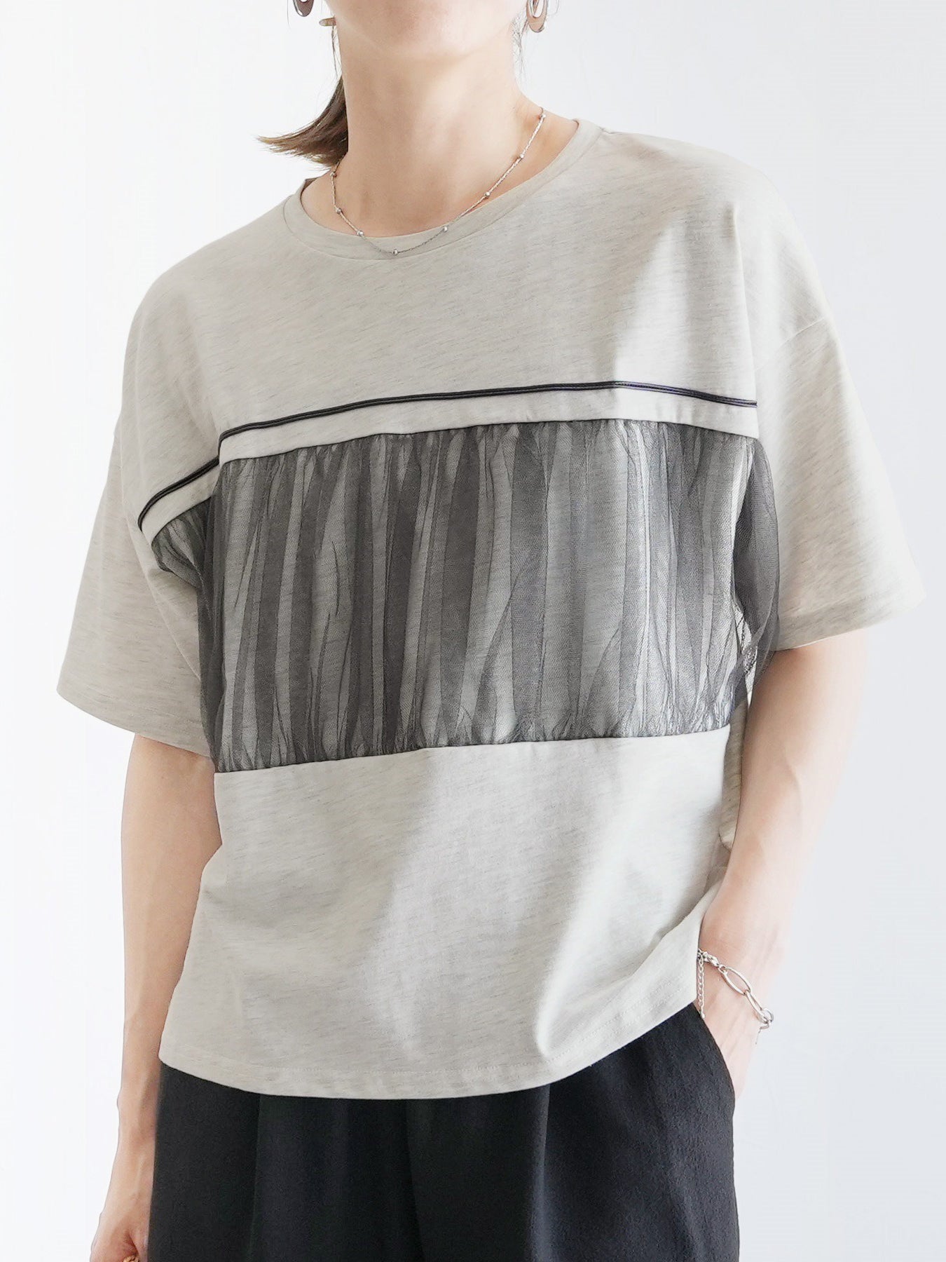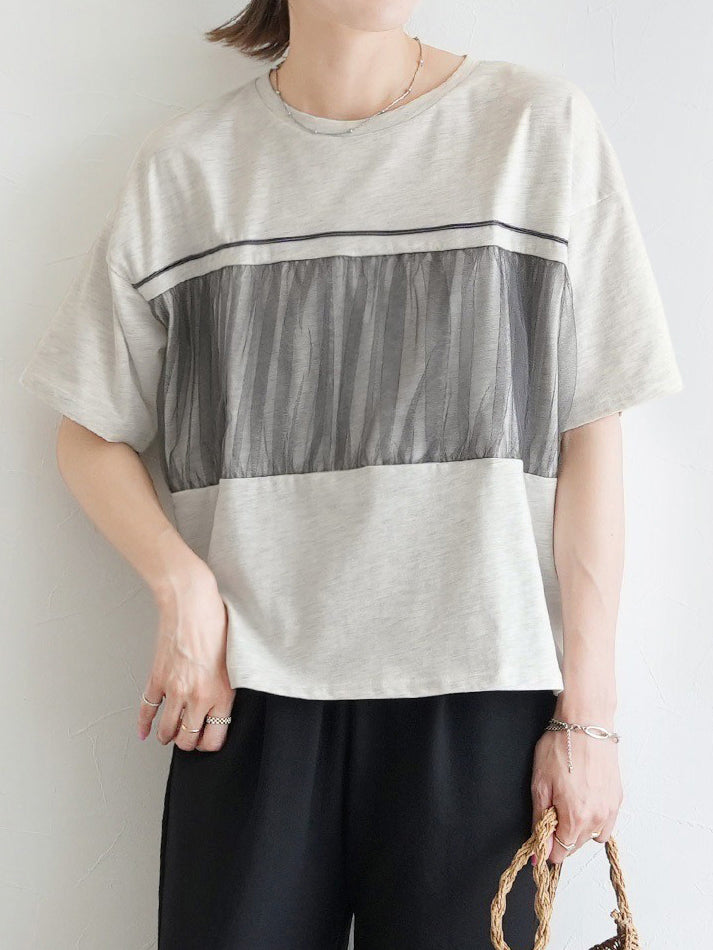 -This is a sweet T-shirt with tulle, so we recommend wearing it casually with denim or wide pants.