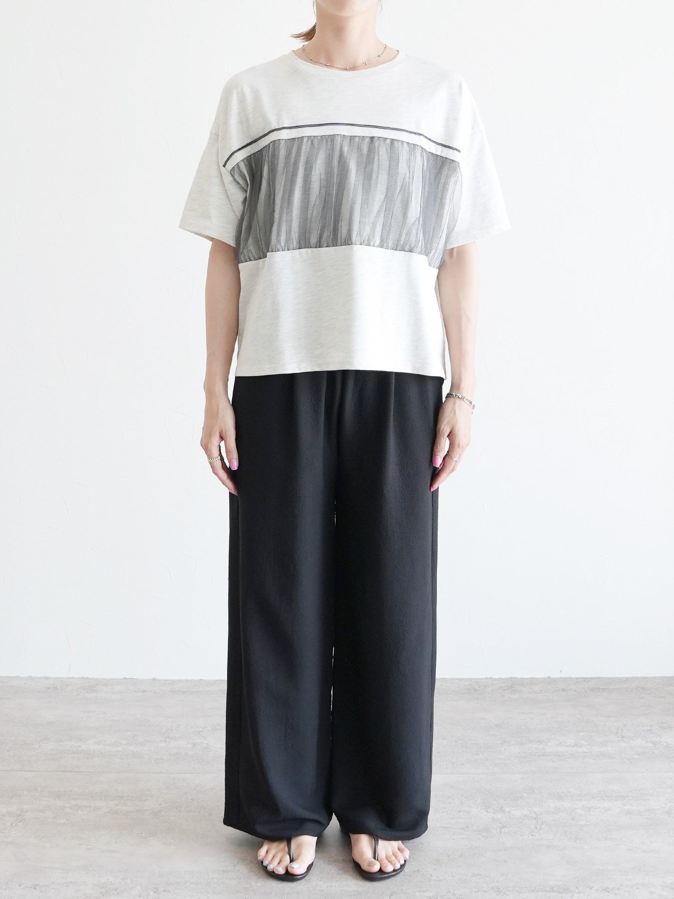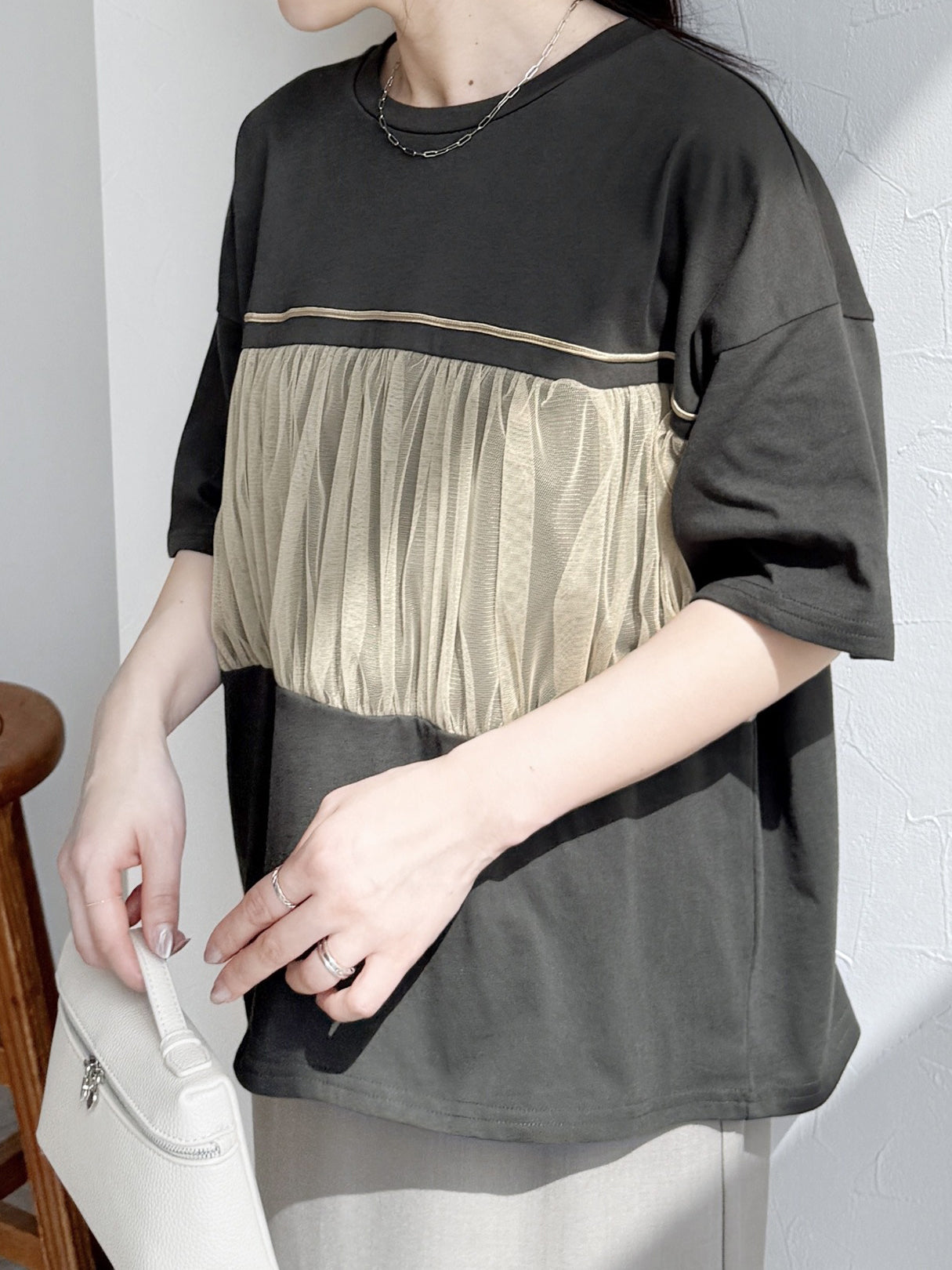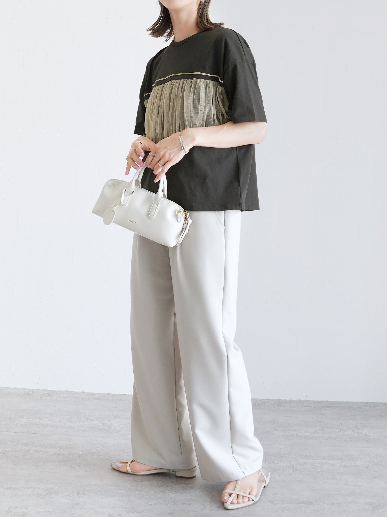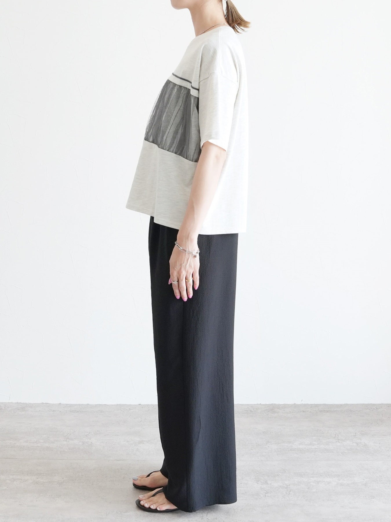 -This is a sweet T-shirt with tulle, so we recommend wearing it casually with denim or wide pants.